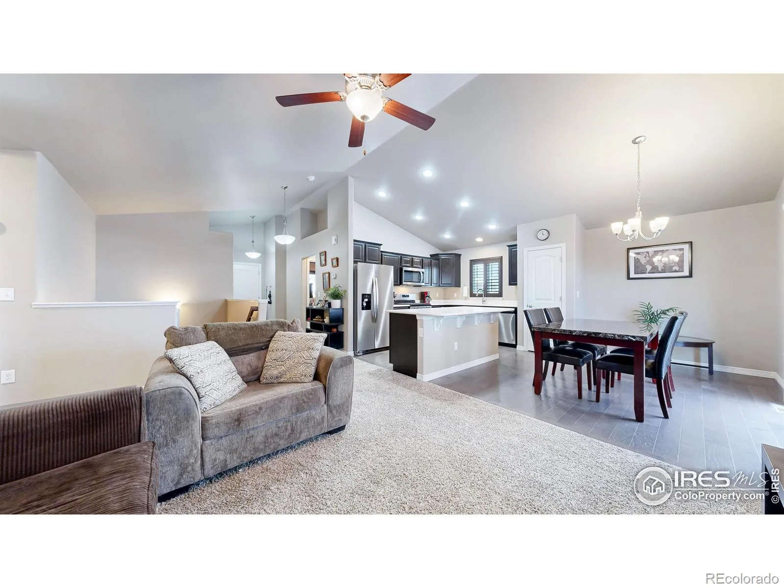 Discover the comfort and modern style of this beautifully finished home in northwest Loveland. The open floor plan creates a warm, connected space that’s ideal for both everyday living and entertaining. The kitchen stands out with its large island, quartz countertops, gas stove, stainless steel appliances, and ample cabinetry-perfect for cooking, hosting, or casual dining.The main floor offers incredible convenience with a laundry room and primary bedroom suite, featuring a luxurious five-piece bath and generous walk-in closet. Step outside to the back patio and enjoy relaxing evenings under the pergola, surrounded by a lush yard kept vibrant by a full sprinkler system.The finished basement expands your living space with two additional bedrooms and a large rec room-ideal for guests, hobbies, or movie nights. An oversized two-car garage provides plenty of room for vehicles, storage, or a workshop.This home blends thoughtful design with functional comfort in a desirable northwest Loveland location.