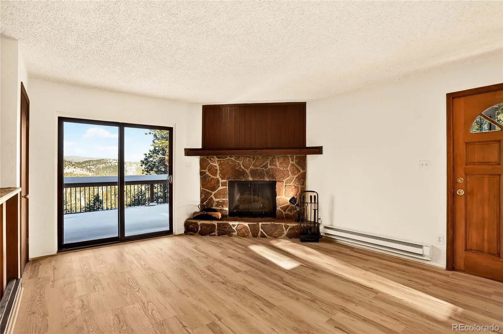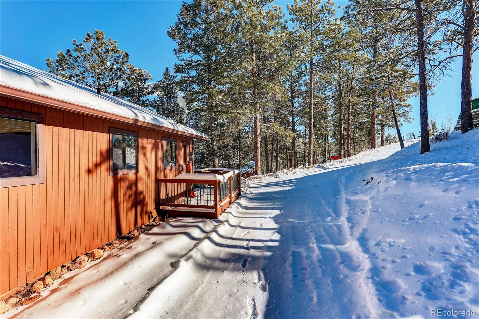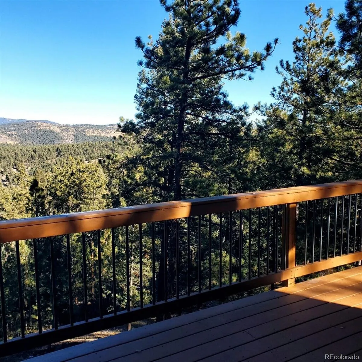 NEW PRICE! Sweeping Mountain Views & Modern Comfort Define This Bailey Retreat.Discover comfortable Colorado mountain living in this beautifully updated sanctuary.Perched on a peaceful scenic ridge, this 3-bed/2-bath home includes 1,674 sq ft of warm, inviting space, & 1 forested acre, perfect for enjoying the quiet wilderness or entertaining friends.Meticulously updated, this Bailey property features fresh interior & exterior paint, freshly stained deck, new carpet & new high quality luxury vinyl plank flooring, giving the entire home a crisp, modern feel that is move-in ready.The upper level welcomes you with a warm open-floor plan, where kitchen, breakfast bar & living room flow together seamlessly.The bright living room features a rock studded wood-burning fireplace & glass doors offering direct access to a spacious, 3-sided wrap-around deck, perfect for taking in gorgeous sweeping mountain views & enjoying outdoor dining.Expect regular visits of deer, fox & hummingbirds right on your own acre of forested privacy.The lower level boasts a second cozy gathering space, a bright & comfortable family room with a free-standing natural gas stove & walkout access to the fenced patio, creating an ideal indoor/outdoor flow.This lower level also features a large office with additional wilderness views. With abundant onsite parking, you’ll have plenty of room for guests, recreational vehicles, or all your Colorado gear.Surrounded by trees and scenery, this home offers privacy while still being close to Bailey amenities. Bailey is known for its small-town charm, friendly community & endless outdoor recreation just minutes from your door. Quick access to fishing, national forest wilderness & incredible trails. Commuters appreciate the scenic and easy commute to Denver. This home delivers Colorado mountain living in a setting that feels both secluded & connected. Move-in ready & full of character, this is the mountain lifestyle you’ve been looking for! Call for your showing!