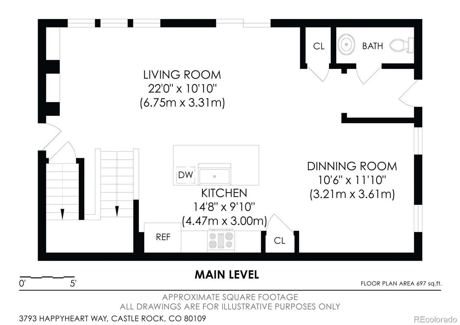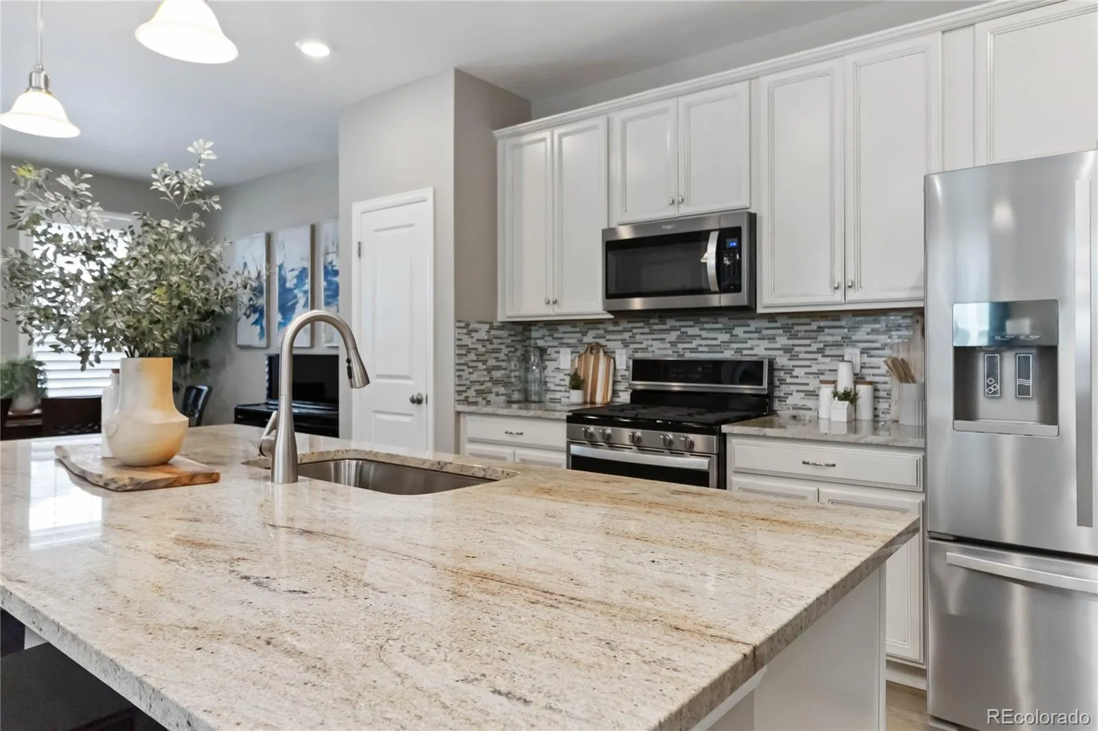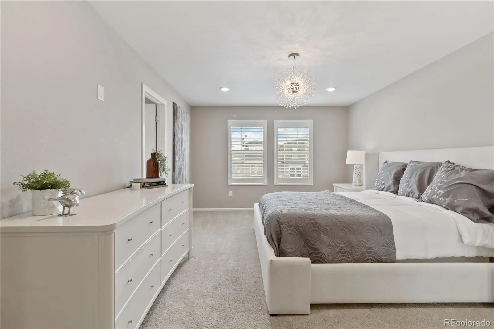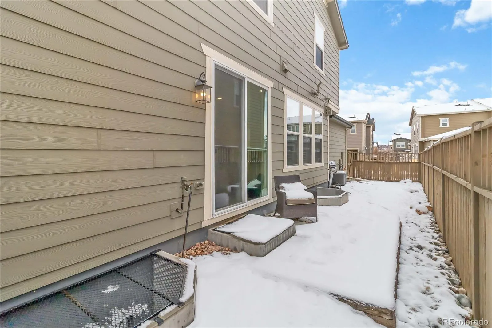 Welcome home to the sought after and desirable Meadows neighborhood. Here, community is everything and there is always something to do with events all year long like: Easter Egg hunt, triathlons, wine festive at the Grange, and concerts in the park and Miller amphitheater to name just a few. You also have amazing recreational access to trails for hiking, biking, climbing and sports fields. And you cannot forget the amazing shopping at the outlets or the charming stores of downtown Castle Rock, a myriad of delightful restaurants, top rated schools and other amenities are just minutes away. This newer 2 story home is beautifully finished and ready to move in for easy modern living. Up front you are greeted by a cozy covered front porch with seating area. Enter inside to an open great room with large formal dining room, upgraded kitchen with white cabinetry, pantry and large granite center island with seating. And there is also the family room with gas fireplace and charming wood mantle. The main floor has high ceilings for an airy feel and easy maintenance LVP flooring, a powder bathroom, and a coat/storage closet. From the great room there is a sliding door to the rear patio and yard for BBQ and outdoor space. There is also access to the attached 2 car garage with plenty of space for multiple cars and overflow items. Upstairs enjoy a convenient laundry room with additional shelving & closet for storage, 2 ample sized secondary bedrooms and a large primary suite with walk in closet and private bath with dual vanities. The entire home comes with upgraded white plantation shutters which are great for blocking out cold & privatizing the inside. The home is well maintained and freshly touched up in all living areas. The basement is open and ready for finish with rough in plumbing and an egress window and high ceilings. This is a maintenance fee home which includes snow removal from front & rear, they mow and aerate & update mulch in the summer. Don’t miss out on this one.