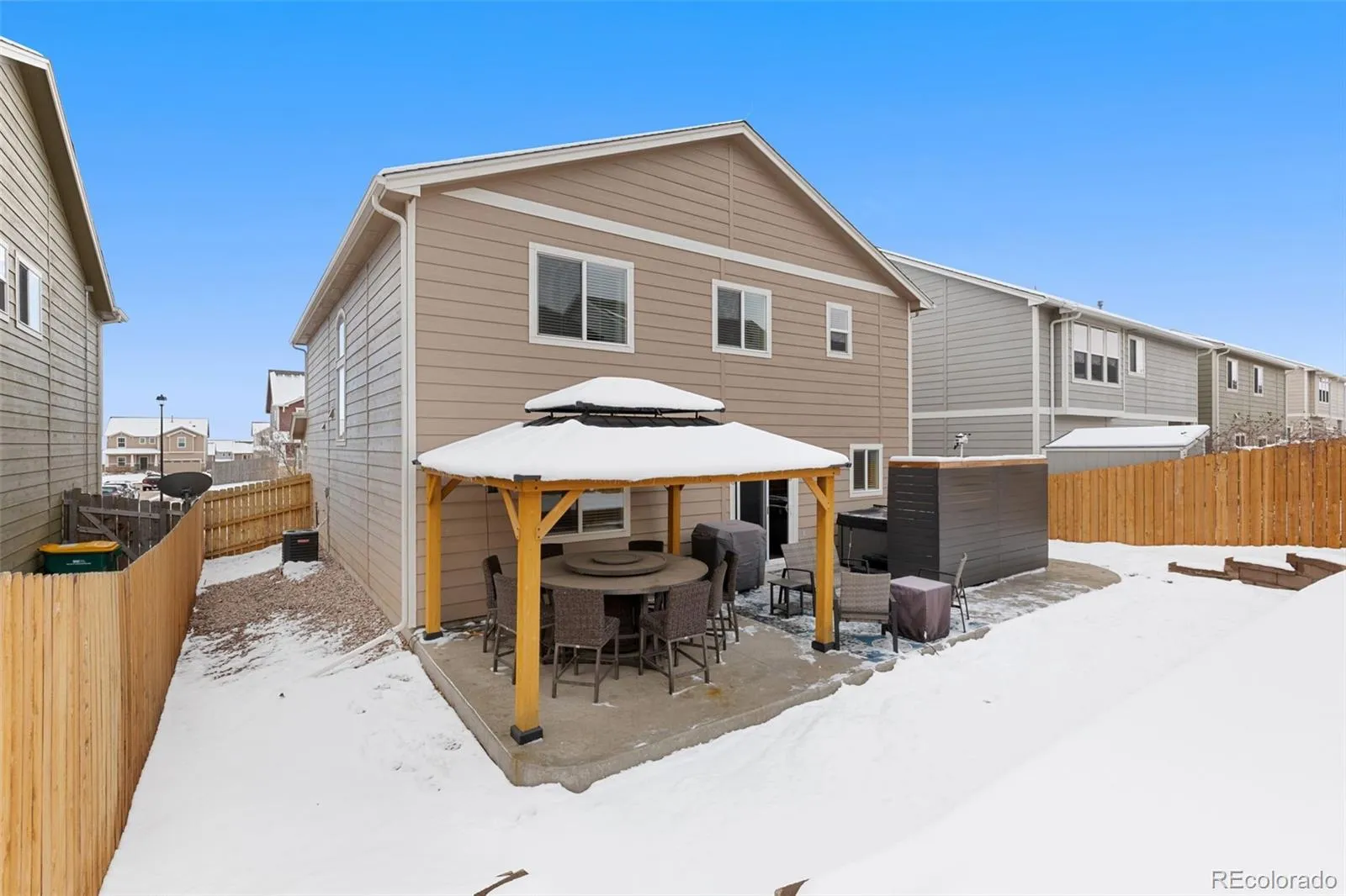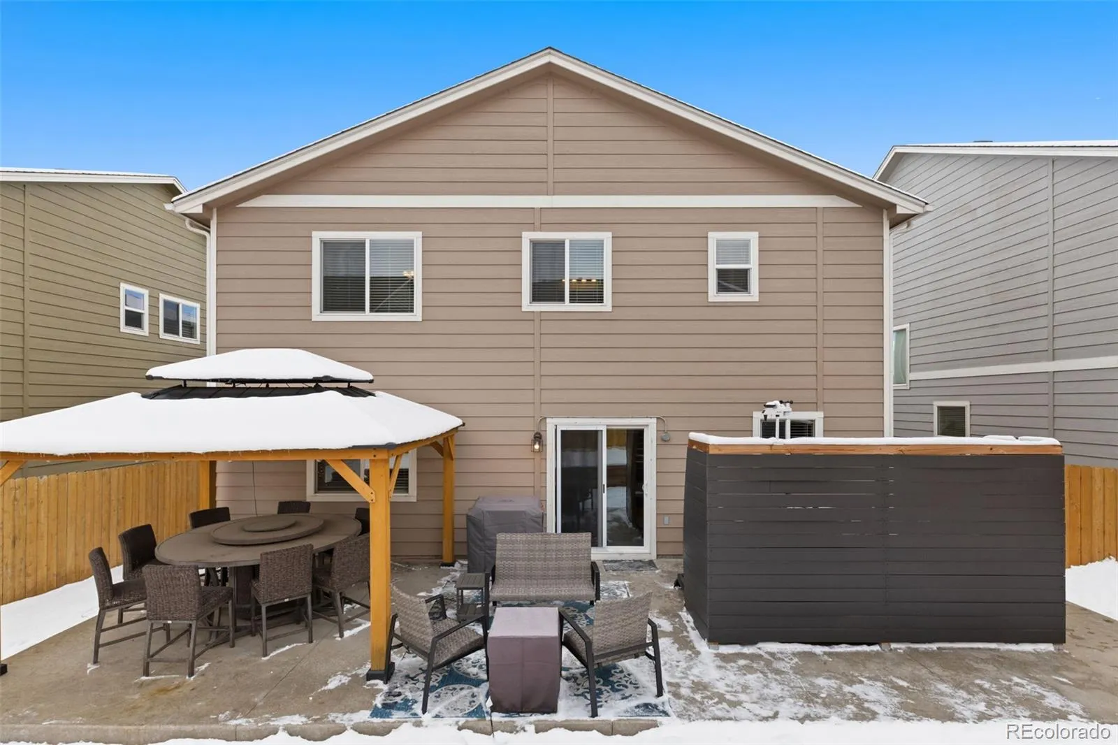 Beautiful newer construction in a highly desirable neighborhood, this inviting home blends updated style with everyday functionality. An open great-room floor plan creates effortless flow between living, dining, and kitchen spaces, complemented by a dedicated office area at the front of the home and a versatile upstairs loft—perfect for work, play, or quiet retreat. The entry and kitchen/dining areas feature durable LVP flooring, while the updated kitchen offers granite countertops, a tile backsplash, island with breakfast bar seating, and a pantry for storage. The full bathrooms have also been refreshed with granite countertops for a cohesive, elevated feel throughout. Upstairs, the spacious primary bedroom serves as a true retreat with its ensuite bathroom, large soaking tub, separate shower, and generously sized walk-in closet. Step outside to a backyard designed for relaxation and entertaining—complete with a stamped-concrete patio, gazebo, and an impeccably maintained 8-person hot tub with privacy fencing. The 2-car garage features finished walls for a clean, polished look. Move-in ready with thoughtful updates and modern comforts—this is the home you’ve been waiting for!