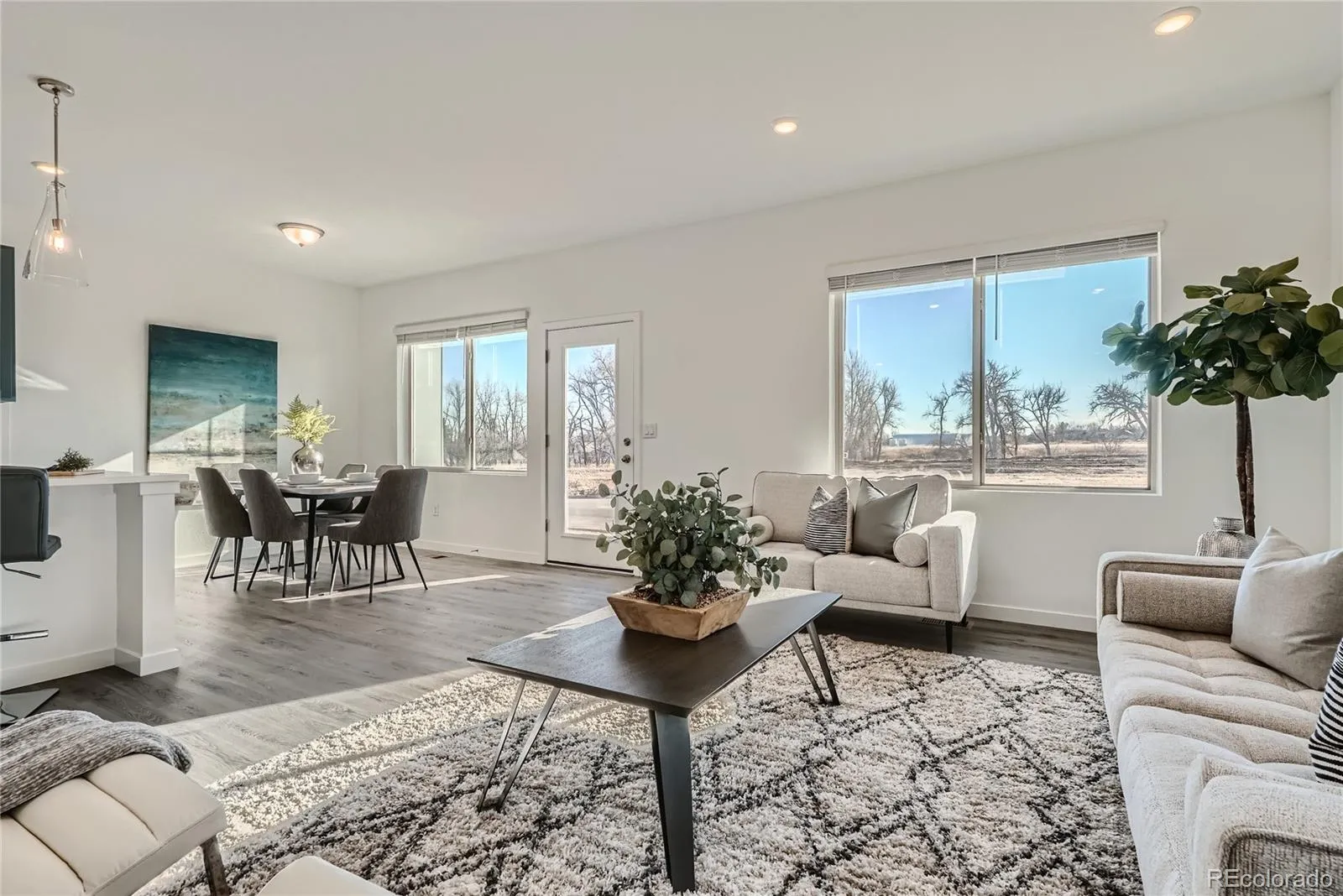 Main-floor luxury vinyl flooring and 2″ faux wood blinds throughout.
