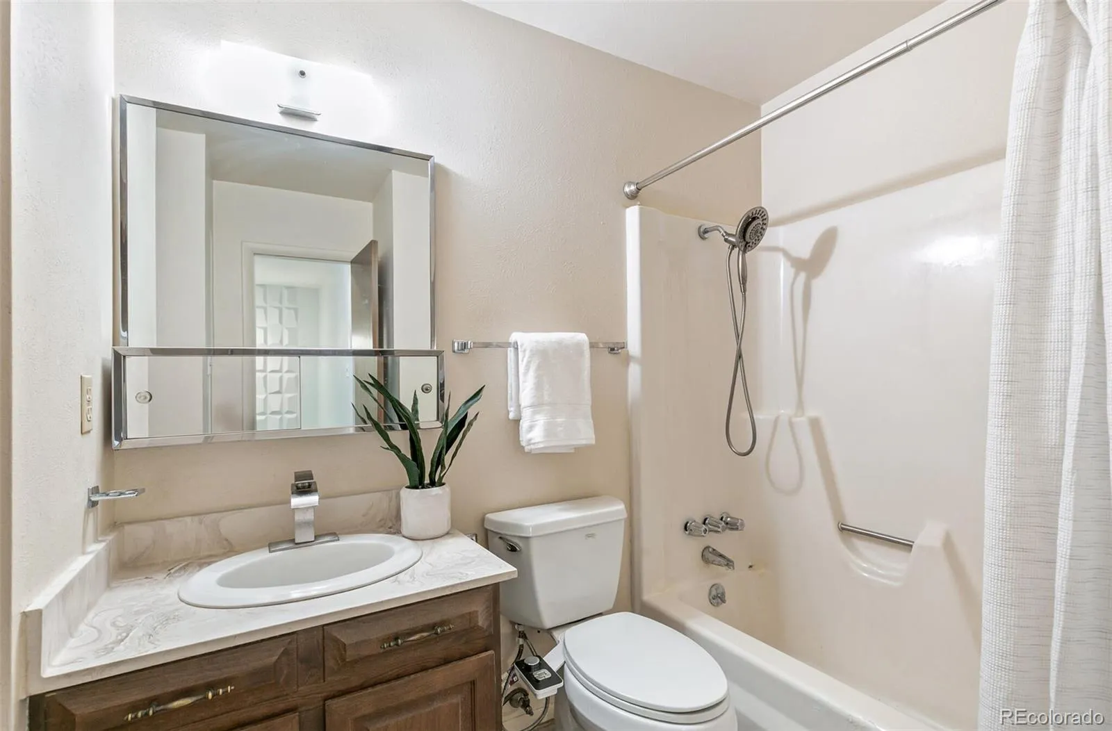 Featuring wide plank luxury vinyl flooring, the ample living room has updated windows providing wonderful natural light, and a powder bathroom with waterfall faucet and designer touches makes for easy entertaining. The kitchen with two tone cabinets, stainless steel stove and microwave, a new stainless steel dishwasher (December 2025), and elegant brushed gold faucet and cabinet hardware, this lovely home has a contemporary flair. The sizeable dining room opens up to an enclosed area with two skylights flooding the area with natural light. This bonus area could be used as a mudroom or workout space, or multipurpose room, and includes a large storage closet. The 2-car attached garage makes commuting in Colorado weather a breeze.