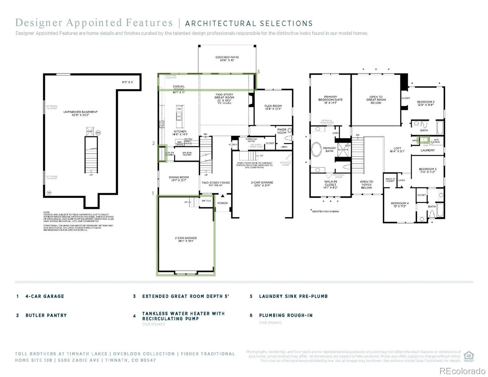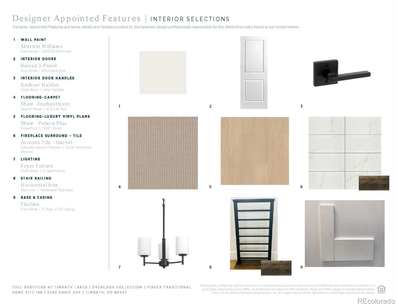 Brand New Toll Brothers Home – Fisher Traditional – Ready February 2026! The popular Fisher floorplan has a grand two-story foyer with a gorgeous staircase. The main level is open concept, but still offers space for private dining and entertaining, including a convenient butler pantry. The 19′ tall great room is the focal point of the home, offering a plethora of natural light with large windows overlooking the rear covered patio. The second level showcases a generous primary suite connecting to a resort-style bath with a luxury shower and a free-standing tub, plus a 14′ x 8′ walk-in closet. The unfinished basement with 9′ ceilings, rough-in plumbing, and two daylight windows is perfect for storage or future finishing. The home also offers plenty of storage for cars and toys with a 4-car split garage. Front landscaping is included. Located just blocks from the lake, a 7-mile trail system, future clubhouse and outdoor pool, and walkable to downtown Timnath shops, brewery, post office and Timnath Elementary School. Timnath Lakes sits within Larimer County and the Poudre School district, just north of the Harmony Rd. corridor, 15 minutes southeast of Downtown Fort Collins, and less than two miles east of I-25. Come see it today before it’s gone!
