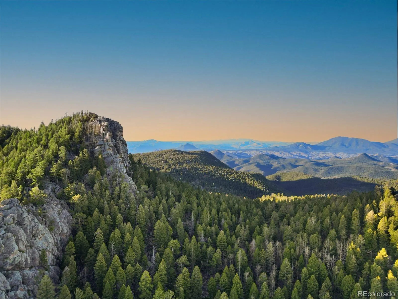 Own your own mountain. Set on 225 private acres crowned by the dramatic cliffside of Riley Peak, this extraordinary Conifer estate is among the most breathtaking land offerings within 30 miles of Denver. A paved 1.2-mile driveway begins at the gated entrance, winding through towering evergreens before reaching a second private gate at the residence—providing year-round access and a level of privacy rarely found this close to the city.