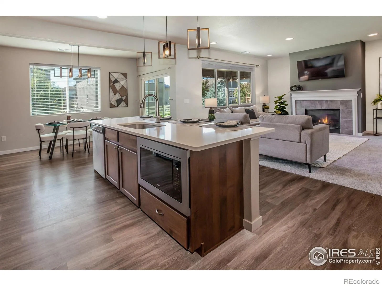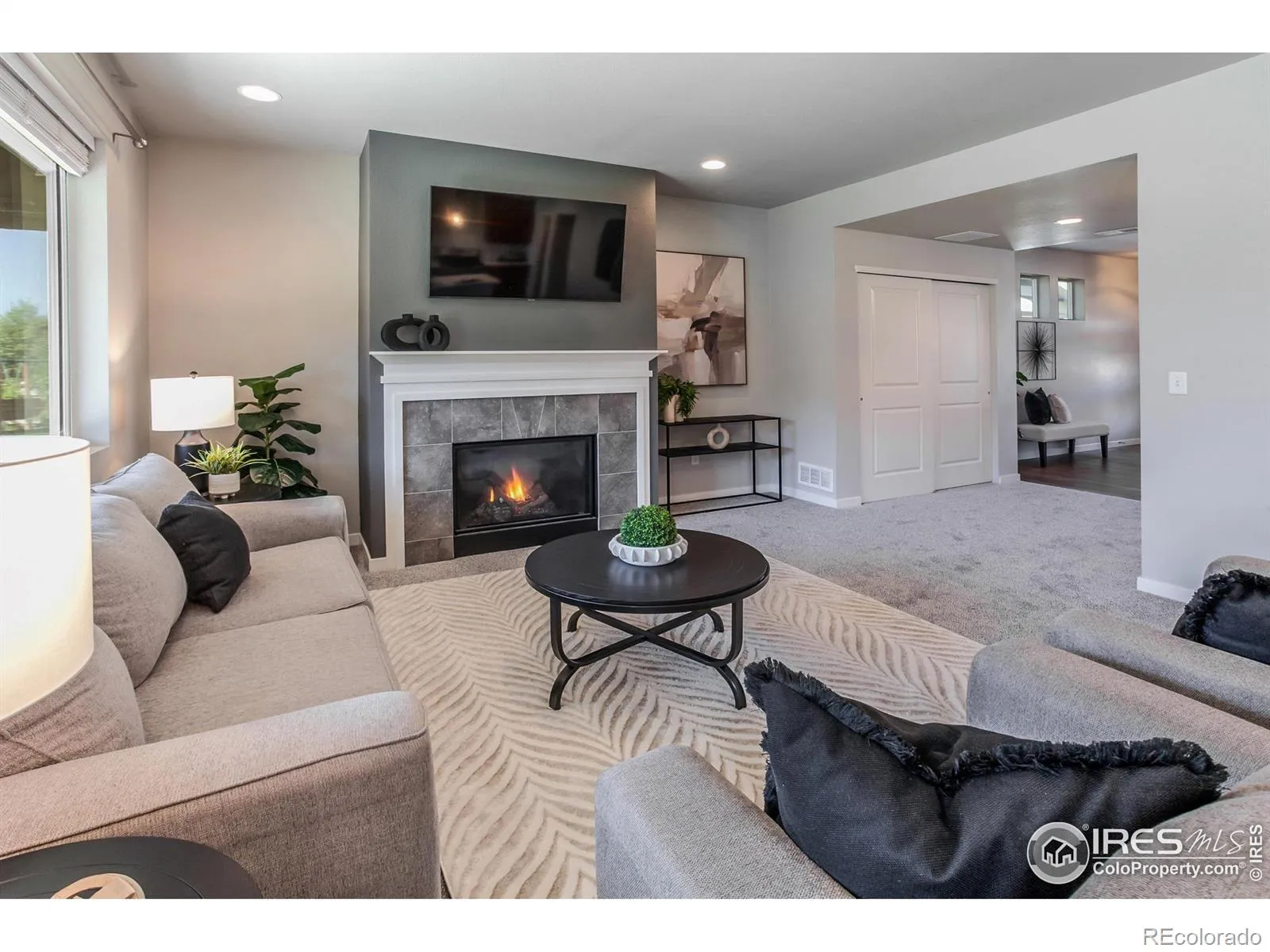 Seller NOW offering a $15,000 credit at Closing. BUYERS use this credit to cover out of pocket Closing Costs, get a LOWER INTEREST RATE, add in additional fencing, or REDUCE THE PRICE of the house to $574,899!!! Take advantage of this huge incentive before the market picks up in the Spring of 2026! This one owner contemporary home has been beautifully maintained with an open layout, modern finishes, & thoughtful details. Just 10 mins to Old Town & 5 mins to I-25. The exterior blends clean lines, stylish brickwork, large windows, & a welcoming front porch. Inside, a flex area/office sits off the entry, followed by a half bath & a spacious living area anchored by a cozy gas fireplace. The living room flows seamlessly into the chef’s kitchen, featuring a 5-burner gas range with hood, in-island microwave, breakfast bar, walk-in pantry, & alder cabinets with upgraded pull-outs & hardware. All new tile runs counter-to-ceiling behind the stove and the addition of the butler’s pantry is a stunning and super practical upgrade that extends into the dining room, complete with contrasting quartz counters, custom wine rack, & extra storage. The dining area comfortably seats 8+, opening out to a spacious covered back porch, back yard, & HOA maintained greenbelt – an ideal spot for morning coffee or evening gatherings. A mudroom / drop zone connects the oversized garage (576 sq ft vs. a typical 440 sq ft garage) to the main floor. An upgraded open rail staircase leads you upstairs to a spacious loft – separating the private primary suite from the guest rooms. The primary features a huge walk-in closet, custom sliding barn door, walk-in shower, & dual sinks with ample counter space. Two generously sized guest rooms share a full bath, & a fabulously updated laundry room adds extra storage. Brand new carpet, upgraded lighting throughout, & spaces designed for both entertaining & everyday comfort. Low HOA & no Metro Tax. Click on video/virtual tour for great guided tour.