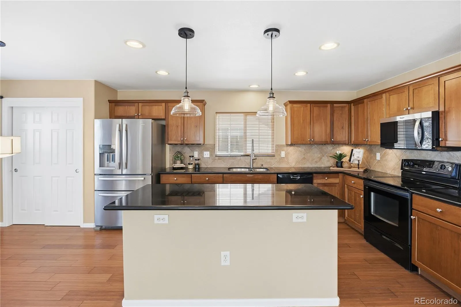 INCREDIBLE LOCATION just minutes from I 25, DTC, Parker, and Lone Tree! This rare three bedroom, three bath condo lives like a single family home as it is free standing with no attached walls! One will enjoy very low maintenance living with no shoveling or landscaping required and will appreciate peace of mind with a NEW FURNACE, NEW AC, NEW CARPET, and FRESH PAINT throughout. The main level provides convenient access from the garage and includes hand scraped wood floor walkways, two generous bedrooms, a full bath with tile flooring and granite counters, plus a laundry room with the washer and dryer included. Venture onto the covered back patio for relaxation and privacy! Upstairs showcases the main living area featuring an open floor plan, hand scraped hardwoods, wrought iron railings, and a spacious kitchen complete with granite counters, bar seating at the large island, cabinet pullout drawers, a stainless refrigerator, and oversized pantry. Adjacent to the kitchen and dining room lies an expansive living area creating a fabulous entertaining space. Step out from the dining area onto the private deck with heating and bistro lights for extended outdoor living. There is also a half bath on this level for convenience as well as the generously sized primary suite boasting a 5-piece bath with dual vanities, a soaking tub, shower, tile floors and an enormous walk-in closet. This LOCATION CAN’T BE BEAT! Nearby amenities: