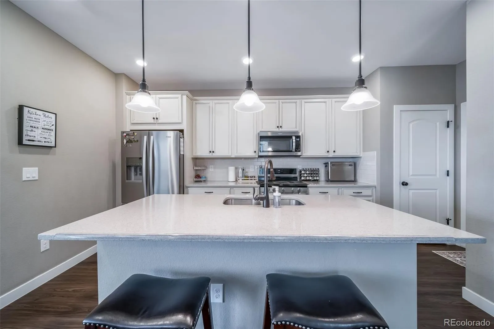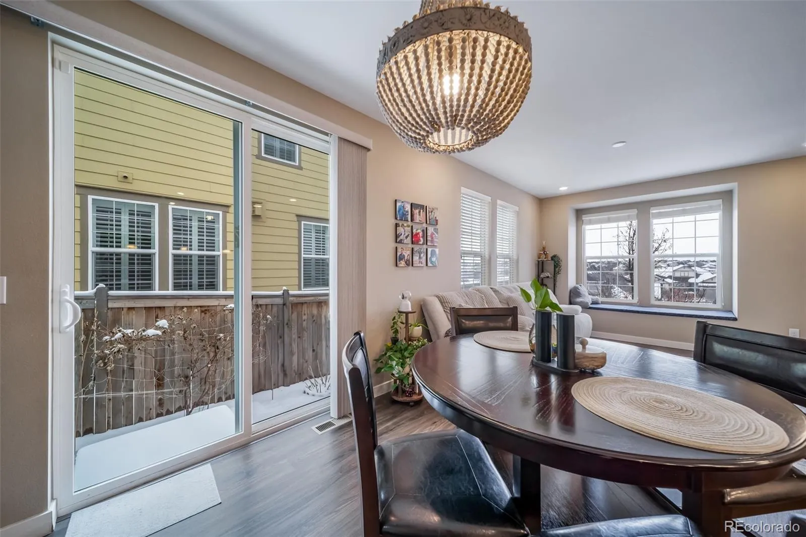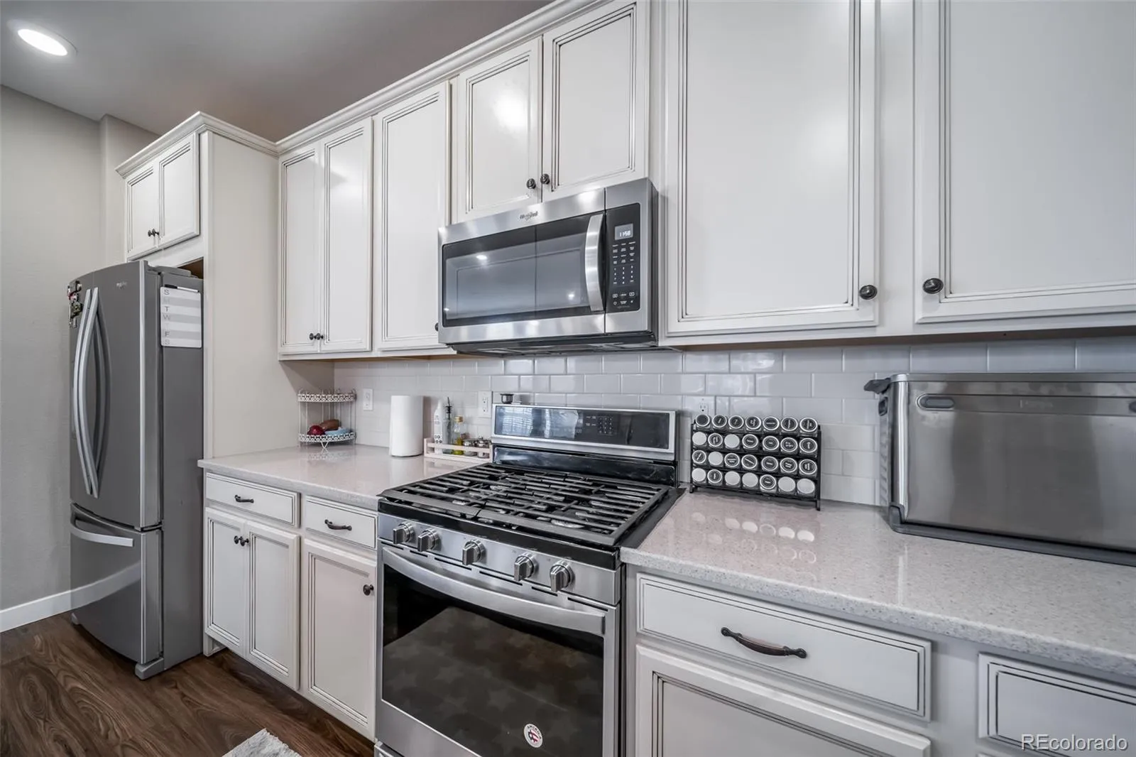 This beautifully maintained home offers the warmth, style, and functionality buyers love. The main level welcomes you with rich wood-style flooring, tall ceilings, and an inviting living area anchored by a sleek fireplace. The open kitchen features upgraded white cabinetry, stainless steel appliances with a gas range, a spacious island with pendant lighting, and generous counter space-perfect for casual dining or entertaining. Upstairs, a bright loft provides flexible space ideal for an office, home gym, movie lounge, or creative area. The primary bedroom feels serene and spacious, offering a large walk-in closet and a bathroom with crisp white cabinetry, Corian-style counters, and a walk-in shower. Additional bedrooms share a well-appointed full bath, and the laundry room is conveniently located on the upper floor. The full unfinished basement offers exceptional storage and the potential to expand with an additional bedroom, media room, or office. The home also boasts value-adding features like built-in window seats and a full radon mitigation system in the basement. Enjoy city views from the property, enhancing the overall appeal of this highly sought-after location . Outside, the private side yard is a low-maintenance retreat-ideal for a small garden or pets. The home faces a quiet, parkable street, making guest parking incredibly convenient. Located in the highly regarded Cherry Creek School District and close to shopping, dining, golf, and major highways, this home truly blends comfort, convenience, and modern style.