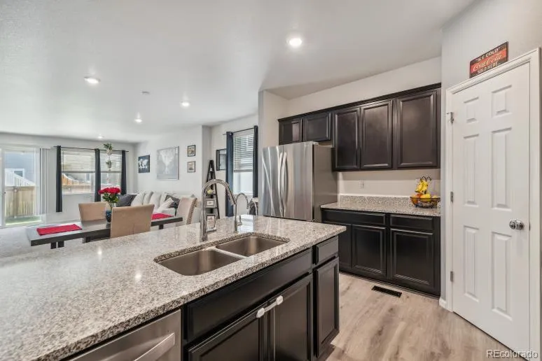 Welcome to easy main-floor living in the highly desirable Buffalo Highlands community! This open ranch floor plan offers the perfect blend of comfort, function, and style ideal for both everyday living and effortless entertaining. Beautifully upgraded kitchen featuring Granite counter tops, a spacious island, plentiful cabinetry, and a seamless flow into the dining area and large family room. A main-level office/flex space adds versatility: perfect for working from home, a playroom, hobby space, or whatever your lifestyle needs. Enjoy the added benefit of a whole-house water softener and filtration system, plus an alkaline water faucet right in the kitchen for crisp, clean drinking water. With 3 generous bedrooms all on one level, convenience is front and center. The primary suite is your private retreat, complete with double sinks, a walk-in shower, and a huge walk-in closet. Even the laundry is thoughtfully located on the main floor for true one-level living. The unfinished basement provides endless potential! Add a rec room, gym, additional bedrooms, or anything your lifestyle calls for, with egress windows and rough-in plumbing already in place. Enjoy Colorado days and evenings on both the covered front and back patios. All appliances are included, making this home truly move-in ready. Located just minutes from DIA, shopping, dining, and quick access to downtown Denver, this home checks all the boxes. Welcome home!