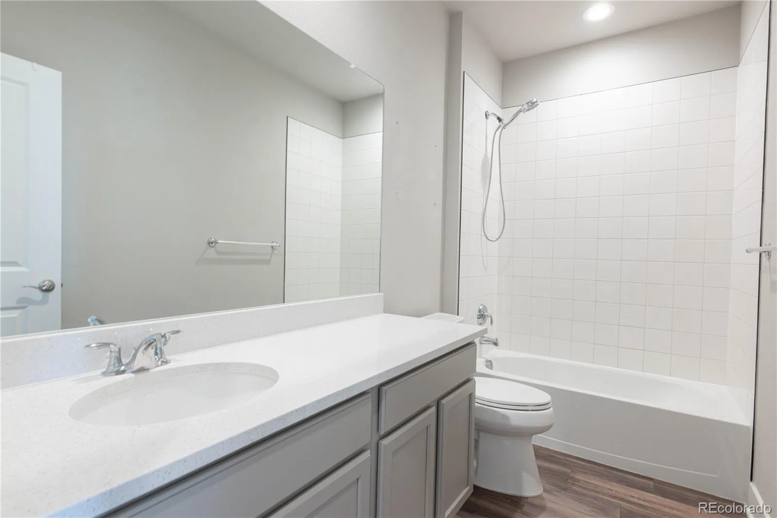 Welcome to this beautifully upgraded home in the Montaine community in Castle Rock, a property that offers luxury, versatility, and easy access to the amenities buyers value most. The main floor features an open concept layout with a bright living area, a chefs kitchen with stainless steel appliances, quartz counters, and a large island, along with a dining area that leads directly to the fenced backyard and covered patio through large sliding doors. A half bathroom completes this comfortable and functional level. Upstairs, the giant primary suite feels like a retreat with its ensuite bathroom and impressive walk in closet. Two additional bedrooms sit on this level and share one full bathroom. The finished basement adds another spacious living area along with a bedroom and full bathroom, making it perfect for an ADU setup, an in law suite, guest quarters, or a flexible bonus space.