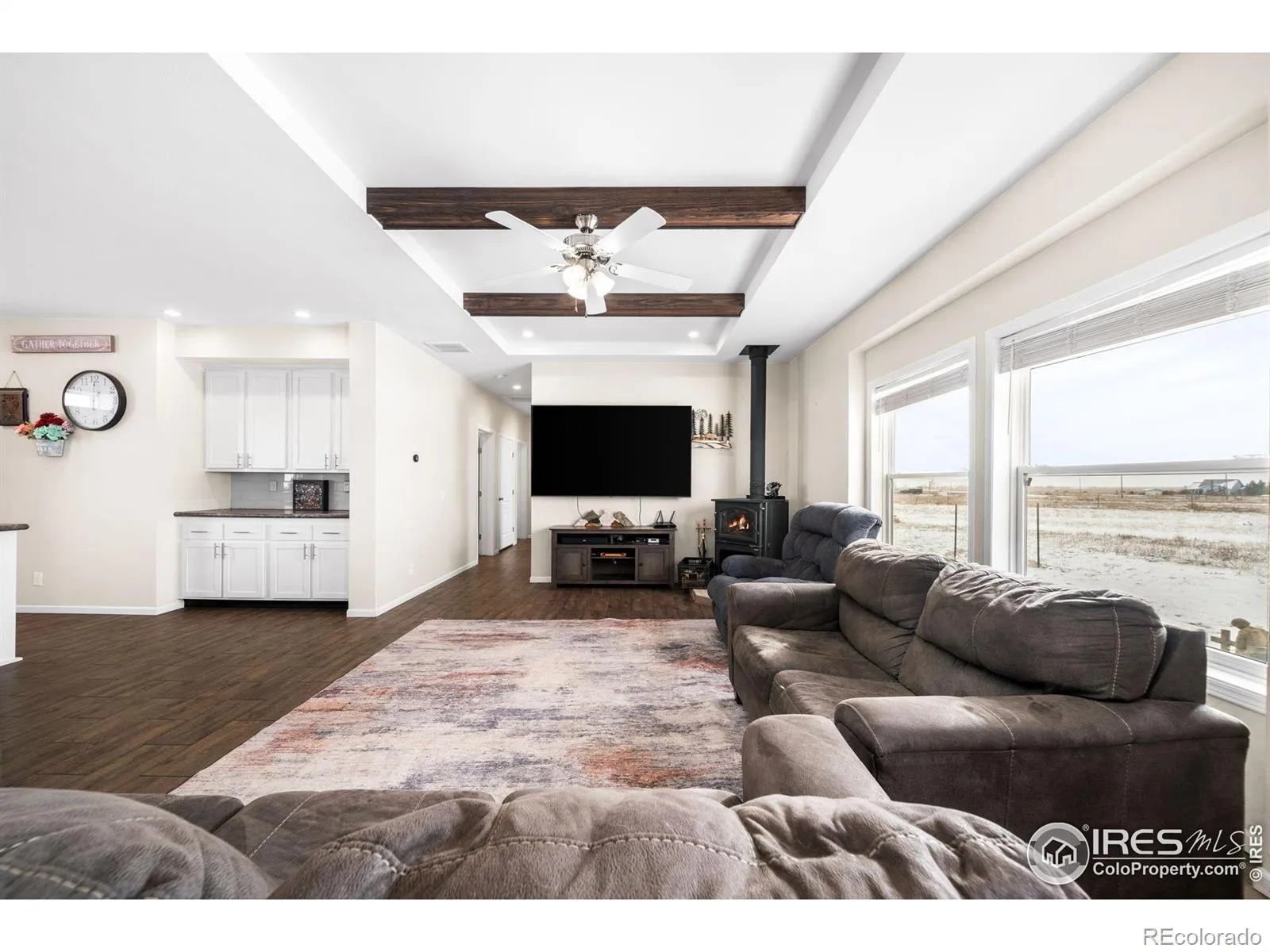 Beams Ranch offers the ideal balance between wide-open rural living and convenient access to Northern Colorado communities. Set on more than 45 fully fenced acres, this property is designed for those seeking freedom, functionality, and a true agricultural lifestyle. A welcoming circle drive sets the tone as you arrive to a residence offering over 4,500 finished square feet, including a fully finished basement, 5 bedrooms, and the option for a 6th bedroom or private office behind French doors. Wood-beam accents and a wood-burning fireplace create a warm, rustic atmosphere, while durable LVP flooring and a spacious mud room with its own entrance make daily farm chores easy to manage. The open kitchen features double ovens, stainless appliances, extensive prep space, and a modern subway-tile backsplash, making it ideal for large meals or simple mornings at home. Beams Ranch is fully equipped for hobby farming or expanded agricultural use, featuring fenced pastures w/electric fence, 3 automatic waterers for livestock, and a 3-stall barn with exterior runs, power, and water. Additional improvements include a working silo, two auxiliary silos, a 40×30 barn with oversized doors, a 60×40 heated quonset hut with a loading area, and a 220×110 riding arena. RV parking and hookups add convenience, while a filtered well, septic system, and more than $60,000 in solar panels offer the option of true off-grid living. The finished basement provides an exceptional entertainment area complete with a projection system and screen, and outdoor living spaces include a private covered patio with a wood-burning chimenea, an east-facing rear patio, and a manicured fenced backyard with a salt water hot tub that conveys with the sale. Combining comfort, functionality, and sweeping rural beauty, Beams Ranch is a rare opportunity to embrace the Front Range lifestyle with room to live, grow, and breathe.