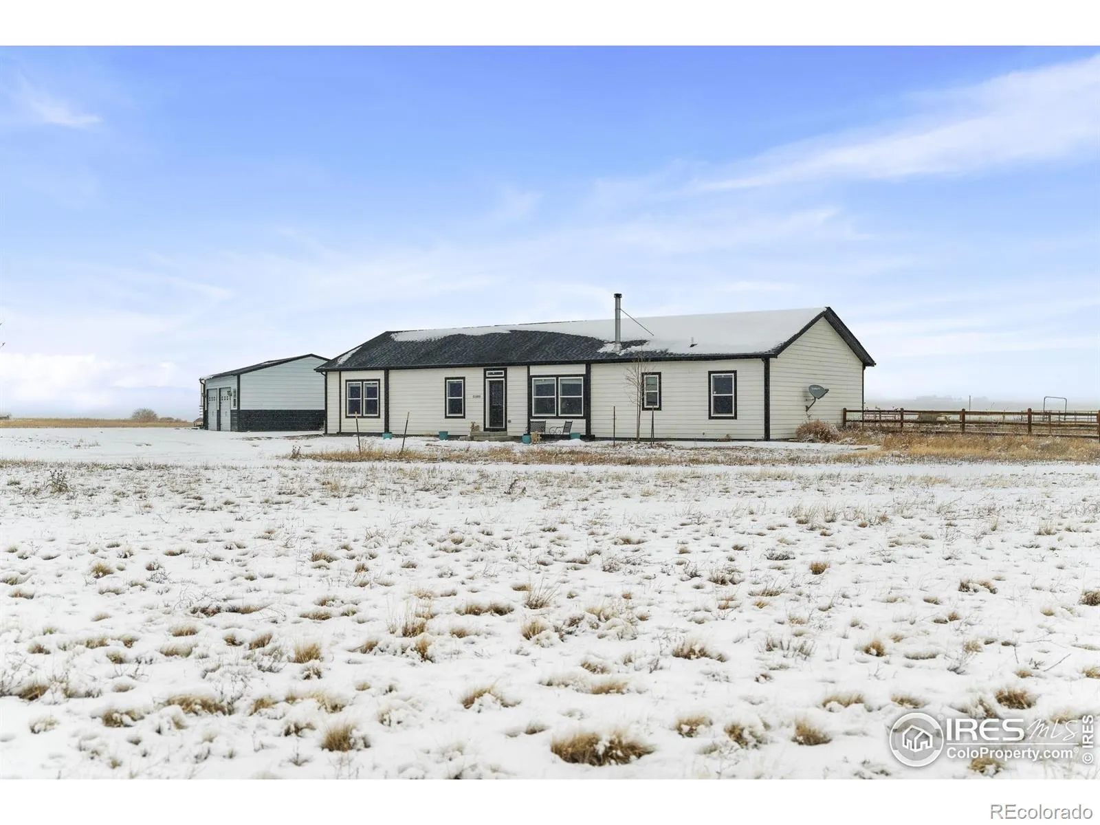 Beams Ranch offers the ideal balance between wide-open rural living and convenient access to Northern Colorado communities. Set on more than 45 fully fenced acres, this property is designed for those seeking freedom, functionality, and a true agricultural lifestyle. A welcoming circle drive sets the tone as you arrive to a residence offering over 4,500 finished square feet, including a fully finished basement, 5 bedrooms, and the option for a 6th bedroom or private office behind French doors. Wood-beam accents and a wood-burning fireplace create a warm, rustic atmosphere, while durable LVP flooring and a spacious mud room with its own entrance make daily farm chores easy to manage. The open kitchen features double ovens, stainless appliances, extensive prep space, and a modern subway-tile backsplash, making it ideal for large meals or simple mornings at home. Beams Ranch is fully equipped for hobby farming or expanded agricultural use, featuring fenced pastures w/electric fence, 3 automatic waterers for livestock, and a 3-stall barn with exterior runs, power, and water. Additional improvements include a working silo, two auxiliary silos, a 40×30 barn with oversized doors, a 60×40 heated quonset hut with a loading area, and a 220×110 riding arena. RV parking and hookups add convenience, while a filtered well, septic system, and more than $60,000 in solar panels offer the option of true off-grid living. The finished basement provides an exceptional entertainment area complete with a projection system and screen, and outdoor living spaces include a private covered patio with a wood-burning chimenea, an east-facing rear patio, and a manicured fenced backyard with a salt water hot tub that conveys with the sale. Combining comfort, functionality, and sweeping rural beauty, Beams Ranch is a rare opportunity to embrace the Front Range lifestyle with room to live, grow, and breathe.