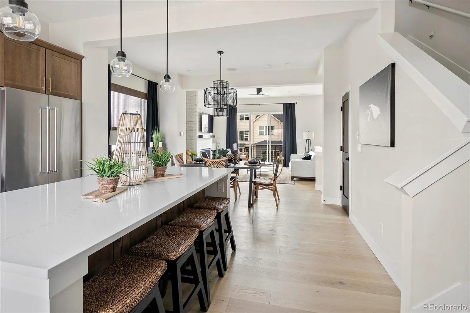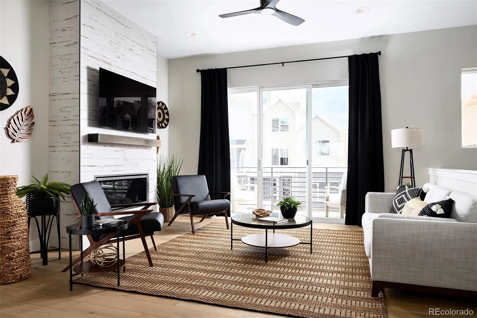 Welcome to this modern, urban-style end-unit townhome overlooking a beautifully landscaped courtyard in a secure, gated Denver community. Currently under construction, with the possible opportunity to personalize your finishes, this west-facing home offers access to a private lake, scenic trails, and neighborhood parks.