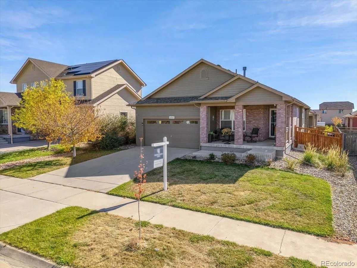 The beautifully appointed kitchen showcases rich dark-wood cabinetry, elegant 42-inch staggered upper cabinets, gleaming granite countertops, a generous center island, breakfast bar, food pantry, and a bright, welcoming dining nook. The gracious primary suite feels airy and spacious with its vaulted ceilings and features a beautiful ensuite bath designed for relaxation. Step outside to experience outdoor living at its finest. Enjoy breathtaking mountain sunsets from the expansive custom patio, complete with a charming pergola—an exceptional setting for summer evenings, grilling, and entertaining. The large covered front porch offers yet another inviting space to unwind and enjoy the outdoors. The sizable unfinished basement provides limitless potential—whether you envision additional living space, a home gym, workshop, or simply abundant storage. Newer roof, exterior paint and carpet; nothing to do but move in and enjoy! This exceptional home, offered at a great price, is truly a rare find. Don’t miss your chance to make it yours!