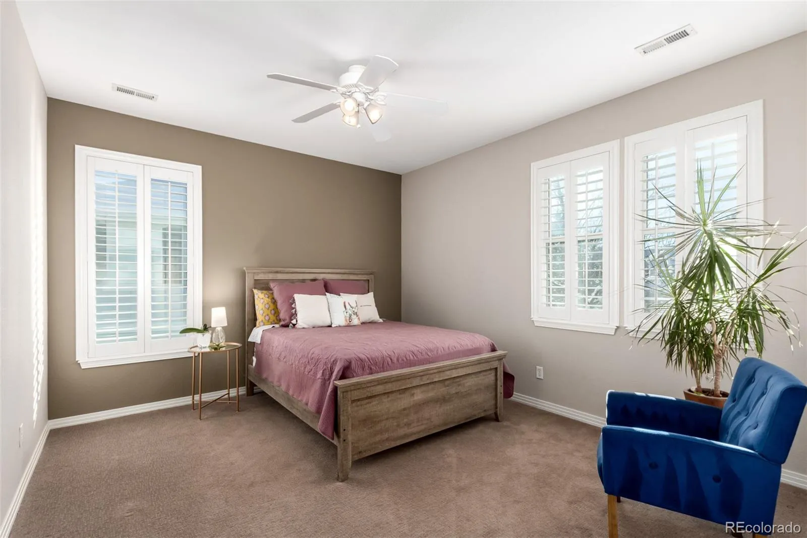 The search is over! This gorgeous home backs to open space and welcomes you with eye-catching curb appeal and amazing views from your own front door! Inside you will discover high ceilings, plenty of windows that flood the home with natural light, classic wide louver shutters and wood flooring. The formal spacious dining room is perfect for hosting memorable dinner gatherings. The well-appointed family room, complete with a fireplace leads out to the deck and backyard. The kitchen has granite countertops with a matching backsplash, ample wood cabinetry with crown molding, stainless steel appliances, and an island with a breakfast bar. The main floor bedroom has a walk-in closet and is located perfectly to enjoy as a home office. The sizeable primary bedroom includes engineered wood flooring, a private bathroom with double vanities and a generous walk-in closet. The second upstairs bedroom is a private ensuite with its own bathroom and includes an ELFA closet. The third and fourth upper bedrooms enjoy a joining bathroom. You’ll be delighted by the garden level finished basement which offers high ceilings, a versatile bonus room with a secondary fireplace and flex/game area. Spend peaceful afternoons in the lovely backyard, featuring a deck with installed gas line and plenty of space for outdoor activities. Meticulously maintained including new and newer windows, carpet and paint. This street allows access to the pool and is walkable to the neighborhood Park. Don’t miss out on this incredible gem located just minutes from Long Lake Regional Park, the Blunn Reservoir and less than 10 minutes to Downtown Golden. Be sure to check out the drone videos!