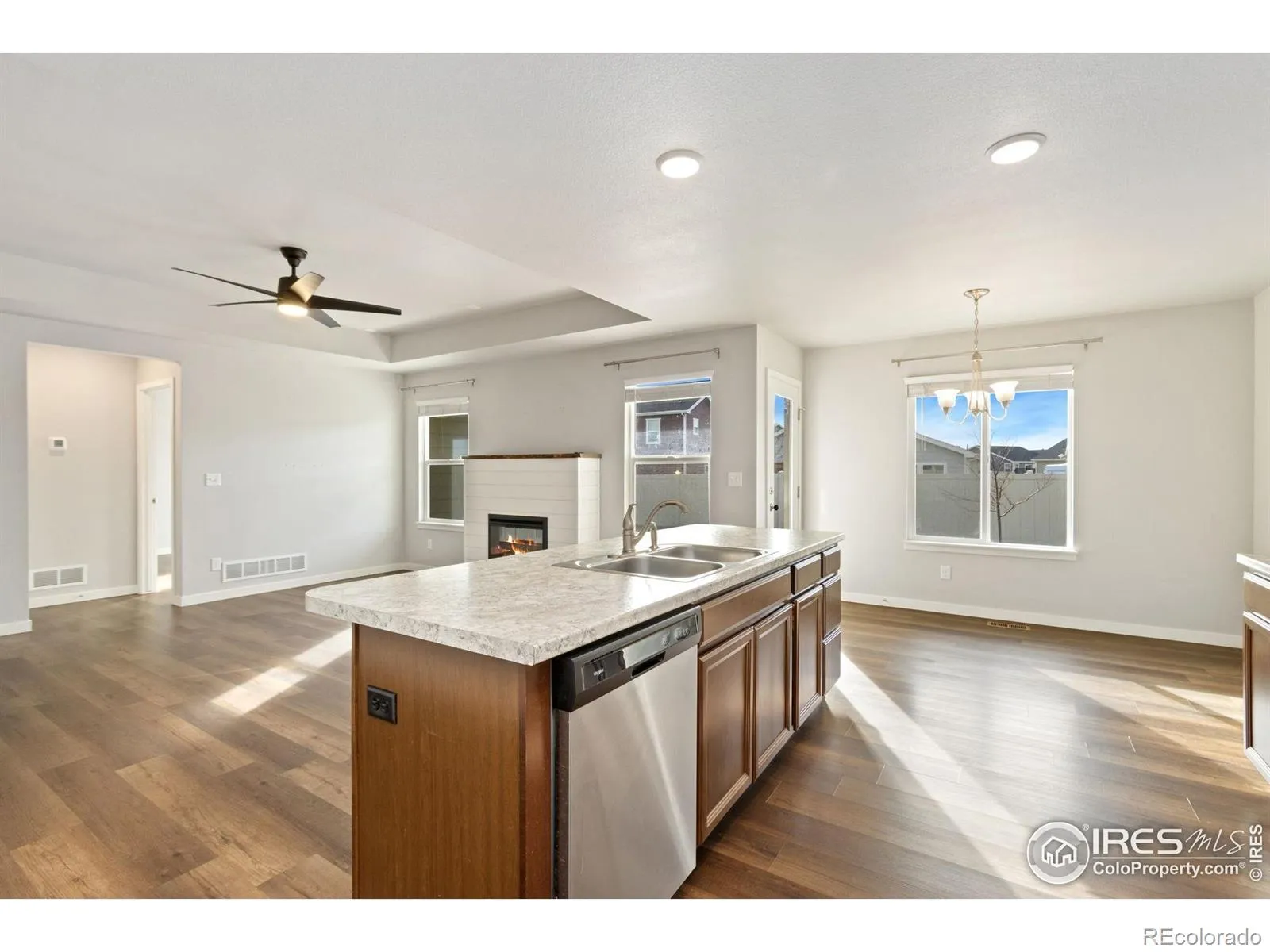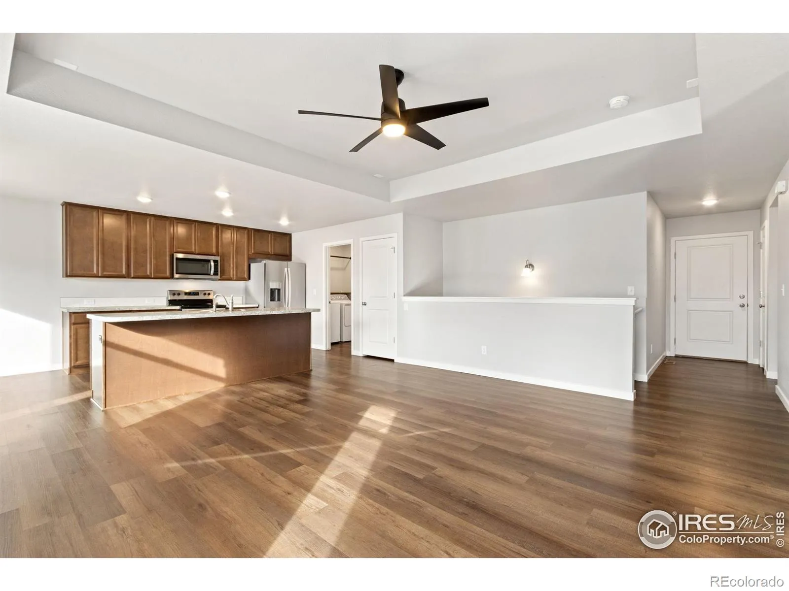 Enjoy small town living in comfort and style! Welcome to this fantastic ranch style home with farmhouse appeal and inviting front porch. This nearly new 2 bed, 2 bath offers main floor open concept that features a large living room with cozy fireplace, layered ceilings and plenty of natural light. The kitchen area shows off a large kitchen island and galley kitchen with separate dining area and all appliances. Spacious pantry for all your storage and main level laundry. The primary bedroom includes a large primary bath, walk in shower, linen closet and huge closet. Main floor also includes second bed and full bath. Unfinished basement that will allow you to create your own personal space and provides additional storage. Oversized lot with tasteful front landscaping and fully fenced large back yard with expanded patio. This is a great home and still looks new! Come take a look as it wont last long !