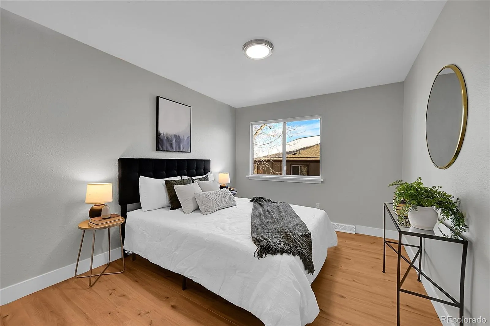 Stylishly updated end-unit 2-bedroom townhome in the heart of Columbine Townhomes. Freshly remodeled with LVP flooring, quartz countertops, stainless appliances, recessed lighting, and contemporary fixtures throughout, this home is completely move-in ready and also features a brand-new furnace and water heater. The open main level showcases a sleek kitchen that flows seamlessly into the living space, while upstairs offers two well-designed bedrooms including a spacious primary with a walk-in closet and a beautifully refreshed full bath with subway tile and a new vanity. This home includes an attached garage plus an additional reserved parking space, and the HOA covers water, exterior maintenance, snow removal, and grounds—making for true low-maintenance living. Just minutes from Clement Park, Chatfield State Park, Downtown Littleton, Red Rocks Amphitheatre, and with easy access to C-470, this turnkey townhome delivers the perfect blend of comfort, convenience, and Colorado lifestyle.