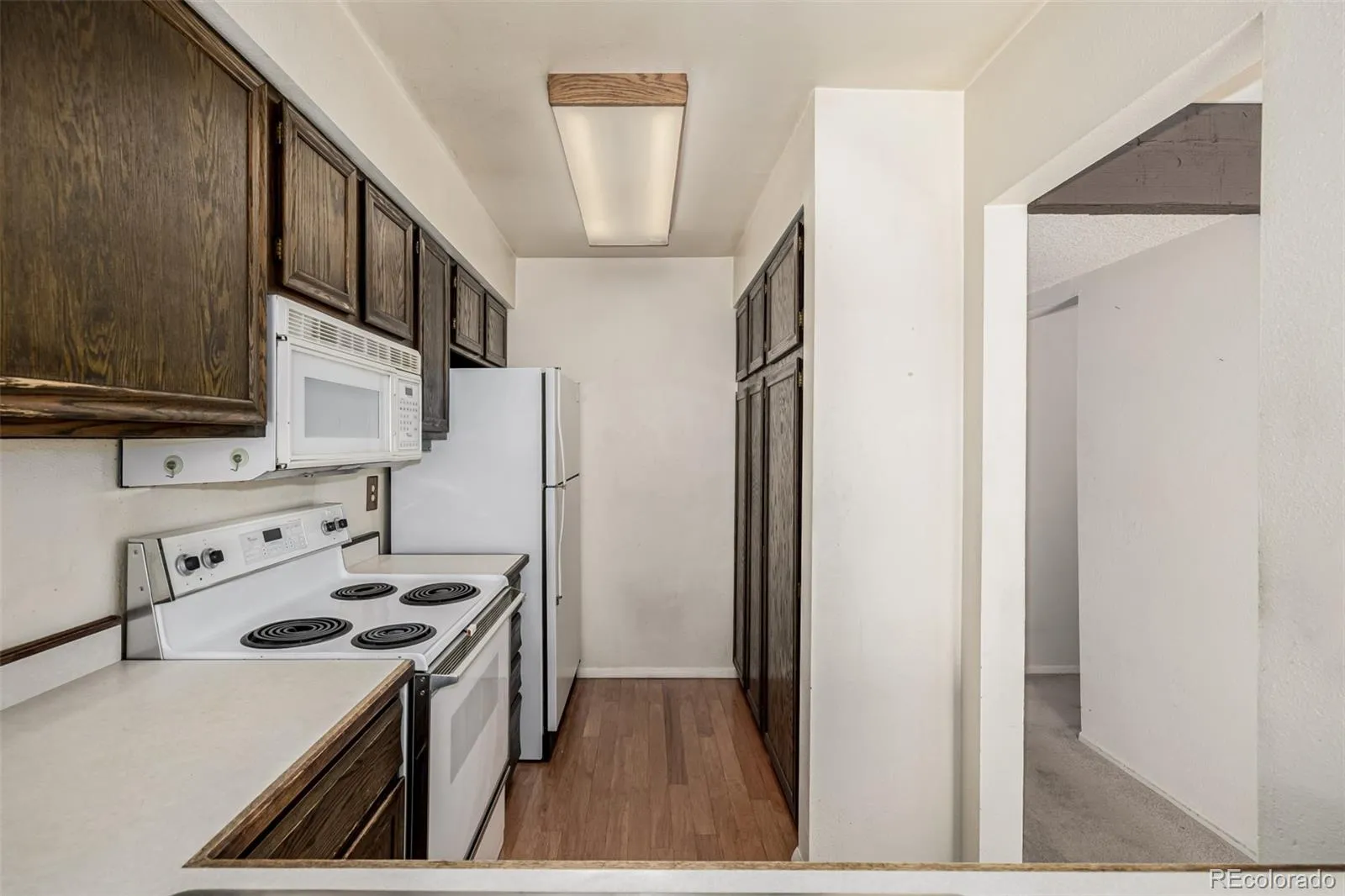 Welcome to this charming condo for SALE! This is the best value in Aurora South. Discover a private 2-car garage located directly below the unit for convenience. Explore the open common areas enhanced by vaulted ceilings, soft carpet, neutral paint, and abundant natural light. The kitchen features a practical pass-through window, essential cooking appliances, wood cabinets, and ample counter space. Have a good night’s sleep in the main bedroom boasting a walk-in closet and a private bathroom for added comfort. Spend relaxing evenings on the balcony while enjoying your favorite beverage. Enjoy access to community amenities, including a refreshing pool and spacious greenbelt. This delightful condo is the ideal blend of comfort, function, and low-maintenance living. Make it yours!