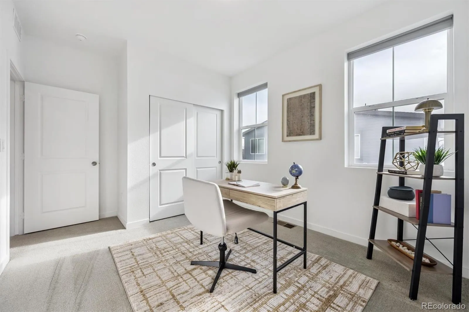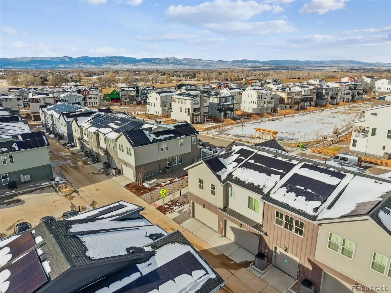 Unbeatable value in the heart of Lafayette! Enjoy the best of urban living in this like-new, impeccably maintained, turn-key corner unit located in the highly sought-after Silo community. Experience zero-maintenance living in this contemporary end-unit townhome, defined by intentional design, seamless flow, & functional everyday living. This ADA-accessible residence features a convenient ramp entry and a large wraparound porch—perfect for enjoying your morning cup of coffee, followed by endless breathtaking sunsets year-round. You’ll love the open feel, sitting right across from the neighborhood park, & catching snow-capped mountain views to the west. Step inside this beautiful home & you will be greeted by upgrades galore! Tall ceilings, luxury vinyl plank flooring, a bright open layout with abundant natural light, and an inviting open floor plan welcome you upon entry. The heart of the home is the stunning gourmet style kitchen, designed for both everyday living and effortless entertaining. This eat-in space features an oversized center island, upgraded 42″ cabinetry, sleek quartz countertops, and stainless steel appliances. The expansive island provides the perfect gathering spot, while the high-end finishes and abundant storage make the kitchen as functional as it is beautiful. Open and airy! The living room flows seamlessly from the kitchen and dining area, featuring abundant natural light & a spacious, open-floor-plan feel. Upstairs, the private living area offers two generously sized secondary bedrooms that share an upgraded Jack-and-Jill bath. The primary suite is a true retreat, featuring a sizable walk-in closet and a luxurious 4-piece ensuite bath complete with a oversized glass walk-in shower and built-in bench. Rounding out this turn-key home are thoughtful extras such as an attached 2-car garage (EV Ready), installed solar panels, all included appliances (washer & dryer, too), & a generous crawl space that provides valuable additional storage.
