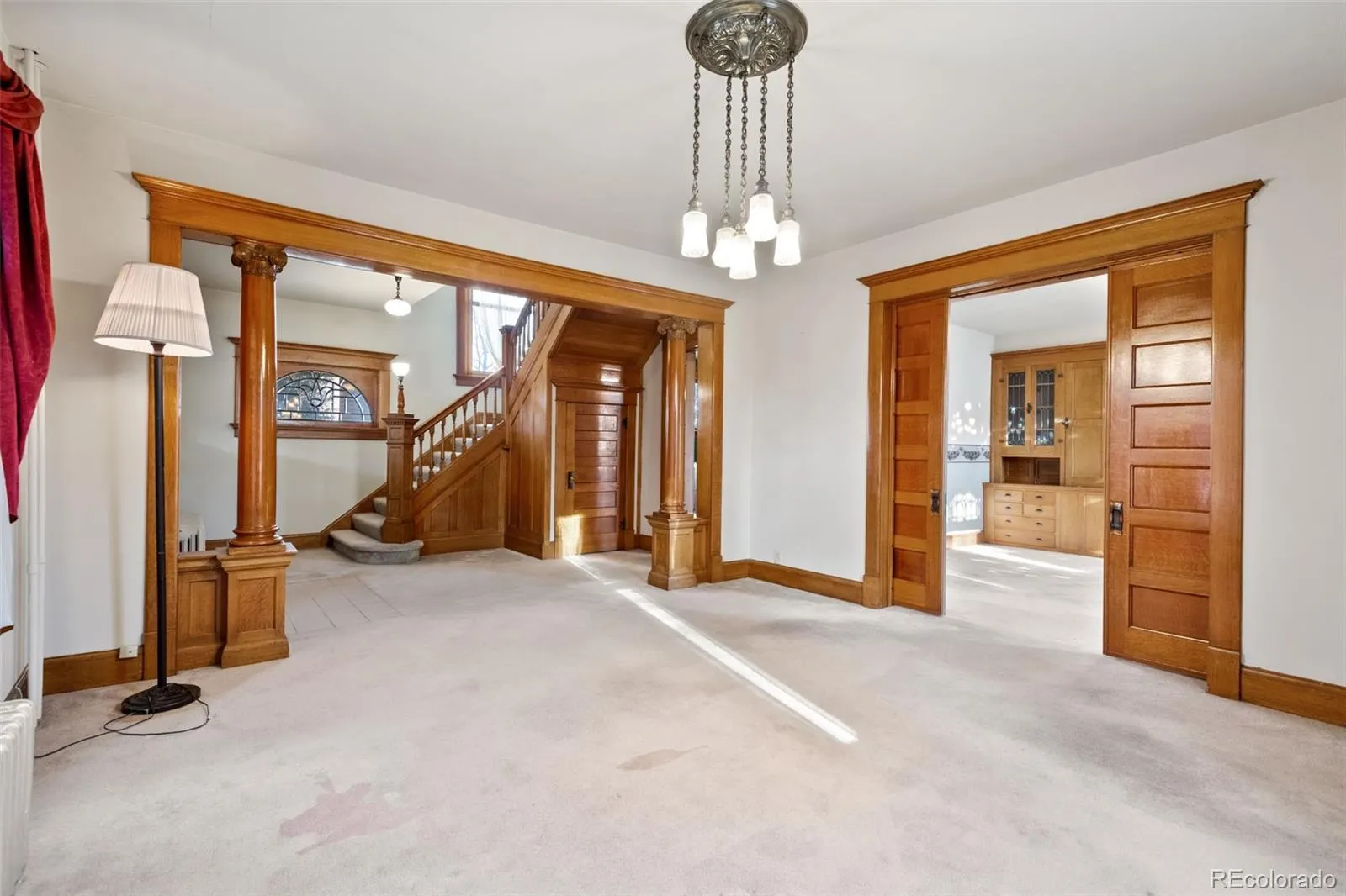 Must see this 1915 Victorian style home in the Sterling Historical District! This home has many features, to include sliding pocket doors, intricate wood trim and pillars, bevelled glass work, and a Chapel that was used by the Franciscans Order. (Please see Historical attractions in Sterling, uploaded in documents) When entering the house you will notice the wide staircase and a bevelled glass window. The staircase also has a lamp built into the railing. The living room has beautiful carved wooden pillars and additional bevelled transom windows. Don’t miss the wooden pocket doors leading to the formal dining room that has built-in china cabinets. The kitchen has a large walk-in pantry with built-in cabinets, a gas range, and a dumbwaiter that goes to the downstairs kitchenette. There is also a stairway in the kitchen leading to the second floor and another stairway leading to the basement. Right outside the kitchen there are additional built-in cabinets for more storage. The east side of the house features 8 individual bedrooms with plumbing in each room. Lots of great ideas! On the north side of the main level you will find a Den/Study with a wood burning fireplace. There are pocket doors leading to the primary bedroom and bathroom for main floor living. Upstairs you will find the historical chapel used by lay Franciscans. There are 3 more bedrooms and two bathrooms. One of the bathrooms has a door leading to the rooftop patio. From the second level there is another staircase that leads to the finished attic. There you will find a bonus room with a fire escape and another bedroom with a bathroom. The finished basement has a kitchenette, another bathroom, family room, laundry room, utility room and two more bonus rooms. You can also access this home from the north entrance. Relax on the large covered front porch, there you can enjoy good conversation and make great memories. The house has been priced accordingly and will be sold AS IS.