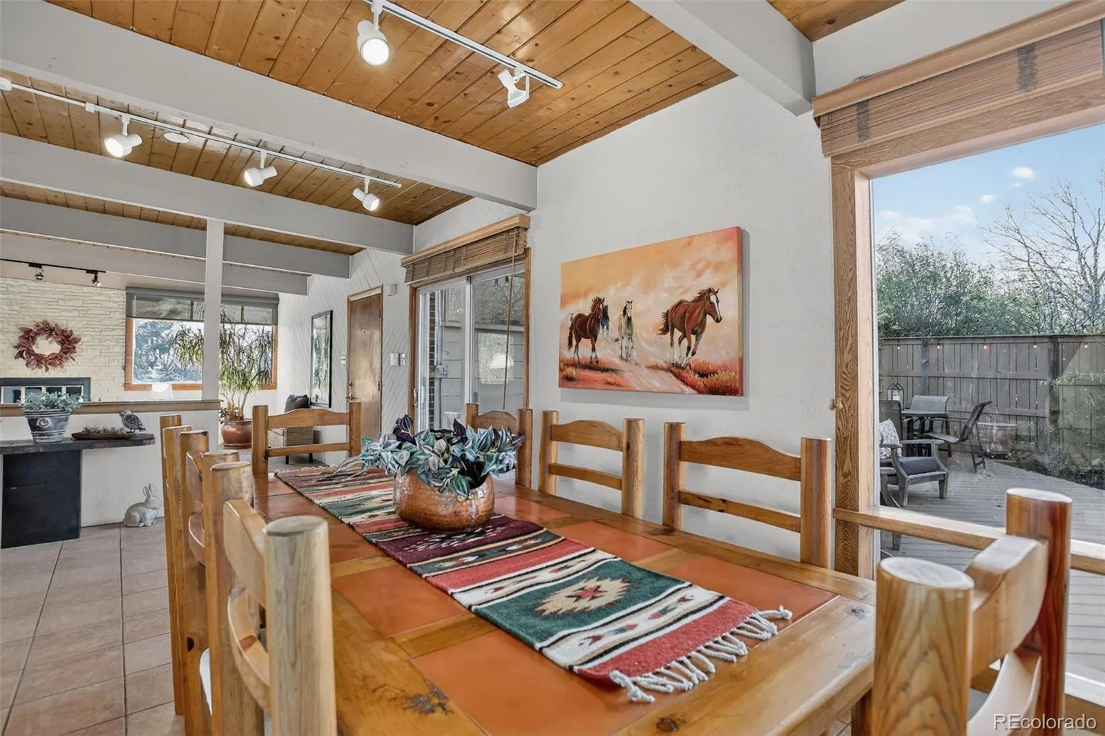 Inside, stunning vaulted wood-beam ceilings span much of the main floor, & lots of windows flood the space with natural light. The fully remodeled kitchen features wood tone cabinetry, Corian counters, & newer appliances. The family room is generously sized & includes a gas fireplace & sliding door that opens to the deck, overlooking the yard. The dining room can comfortably seat up to 8 people & offers more lovely views of the yard.