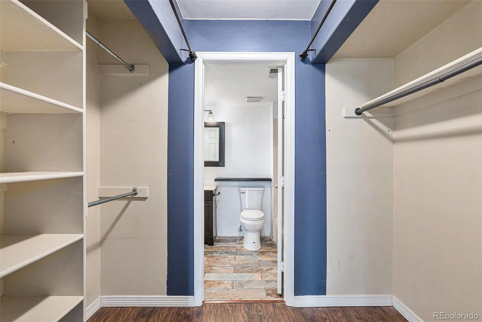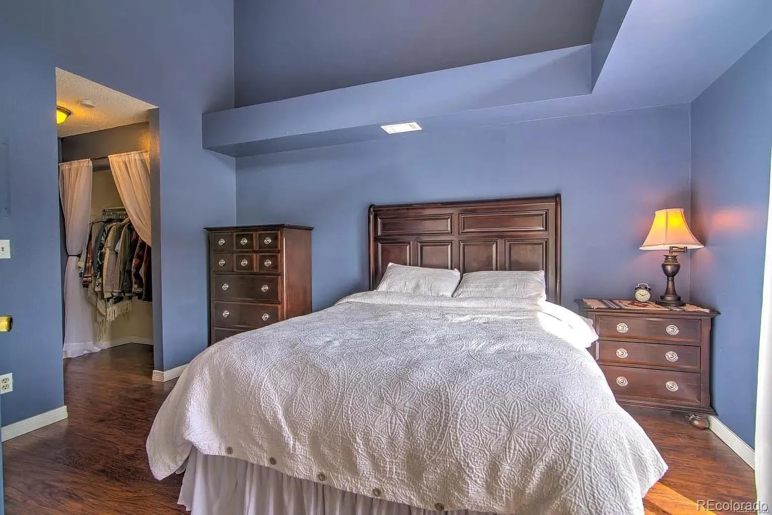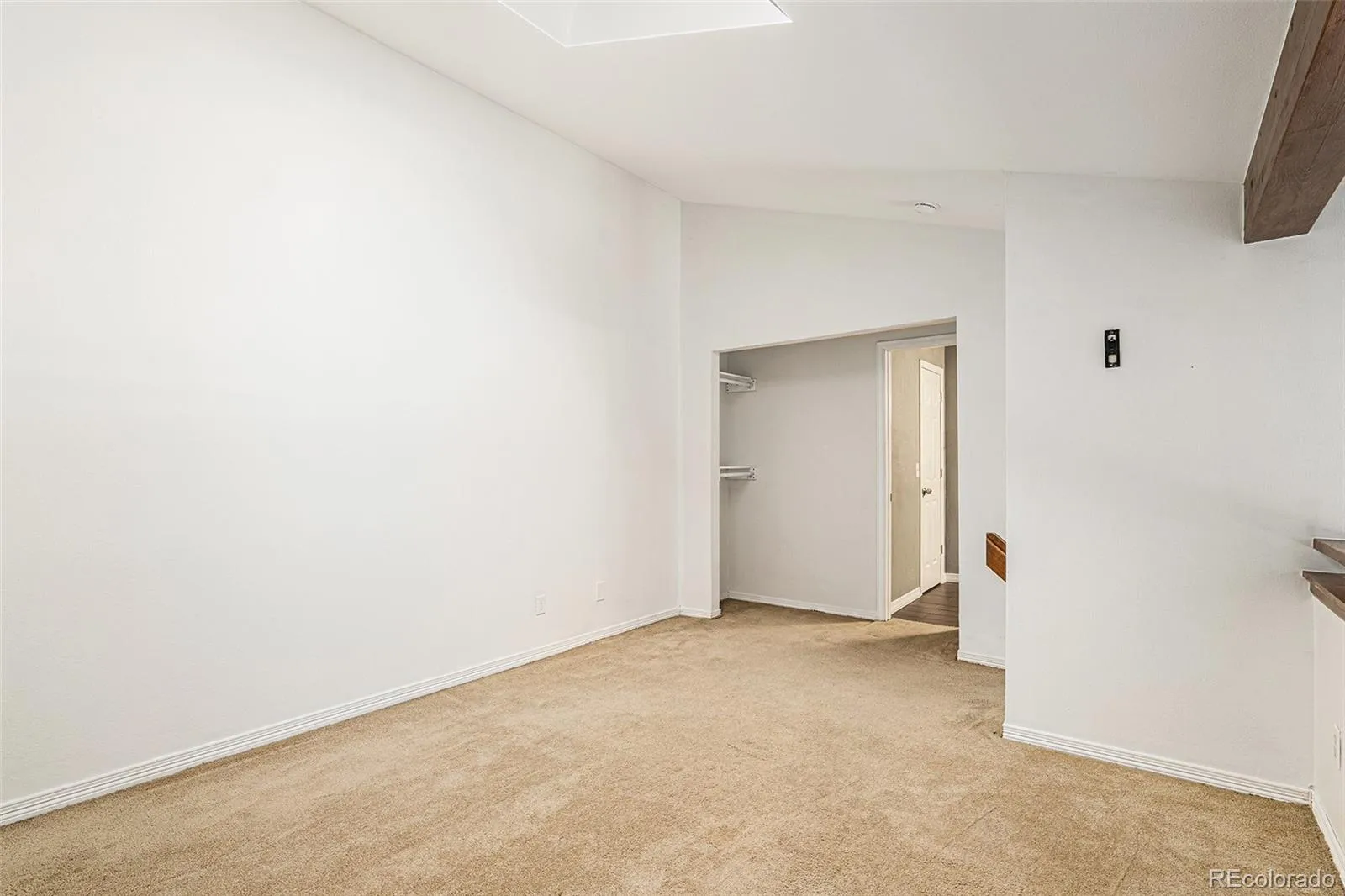 The main-level primary bedroom boasts two closets, direct access to the patio, and an en-suite full bathroom. Upstairs, you’ll find a rare second bedroom option complete with skylights, a generous walk-in closet, and a hard-to-find second bathroom with a tiled shower—ideal for guests, roommates, or a home office setup.