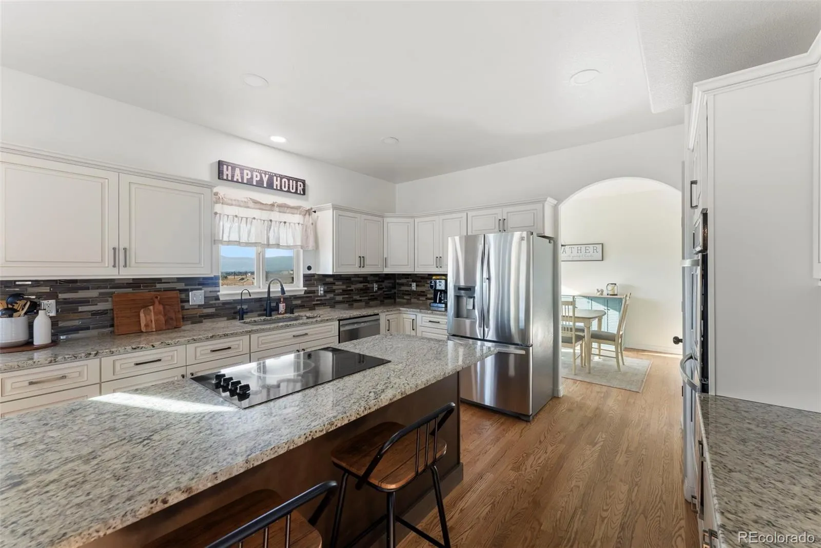 mornings on the front porch and evenings on the impressive 15′ x 42′ composite deck, where Colorado sunrises and sunsets