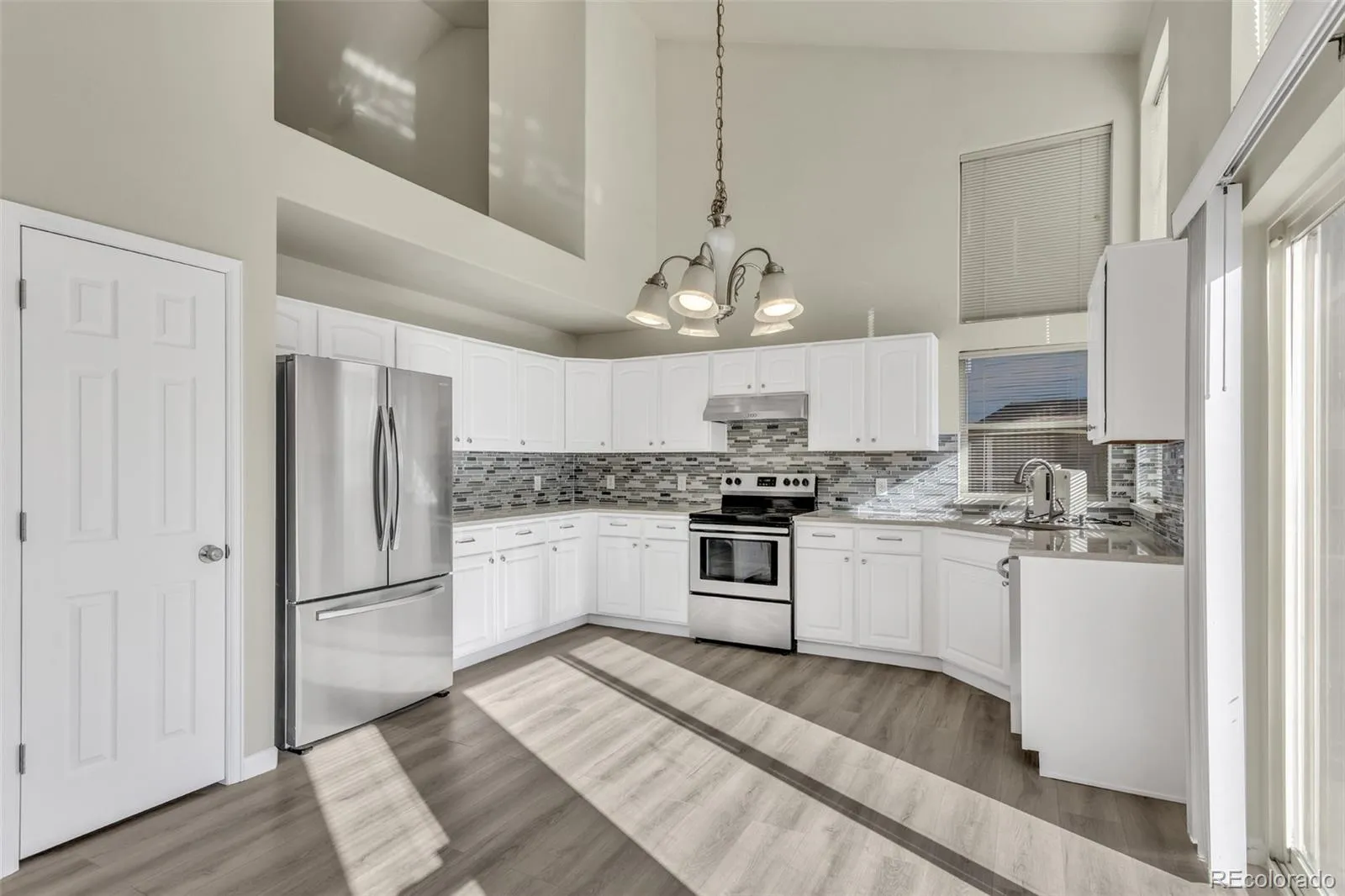 Gorgeous remodeled home that has a great floor plan with a finished walkout basement in the highly sought-after Fox Haven neighborhood! Enter the foyer and you will be wowed by the features. Home shows like new! The vaulted ceilings, new vinyl plank flooring, new light paint, & ample windows (for maximum natural light exposure) throughout the main floor creates an atmosphere that feels open, airy, fresh & spacious. The sunken dining room (w/ bay window) is the perfect place to host guests for dinner & game nights. The eat-in-kitchen is a chef’s delight; it has been updated to the modern style of this decade with quartz countertops, a backsplash, stainless steel appliances, a large pantry, & ample white cabinets. Dine al fresco on the new deck after you’ve grilled the perfect meal. The family room is open to the kitchen & features cathedral ceilings & a gas fireplace. Working from home with privacy is easy with a main floor office (optional 5th bedroom) tucked into the SE corner of the home. An updated full bathroom & a laundry room completes the main floor tour. Ascend the stairs to the primary suite featuring an en-suite 5 PC Master Bath, a walk-in closet, & plenty of space for a king-sized bed suite. The two auxiliary bedrooms are generously proportioned. A full hall bath completes the upstairs tour. The basement features another bedroom, a full bathroom, vinyl-plank flooring, & storage space. There is a spacious flex space in the basement that could serve as a second family room, a game rooms or an exercise room. New interior paint. Newer exterior paint (2-years). Brand new carpet. Newer Water Heater (2-Years). Newer Furnace (5-Years), Newer Central AC System (5-years), Newer Roof (3-Years). Great Location!: Easy Access to the Mountains, Hiking & Biking Trails; Just minutes from Bear Creek K-8 and Bear Creek High School, & a short drive to Red Rocks, Belmar shopping, Southwest mall, St. Anthony Hospital, & close to multiple golf courses.