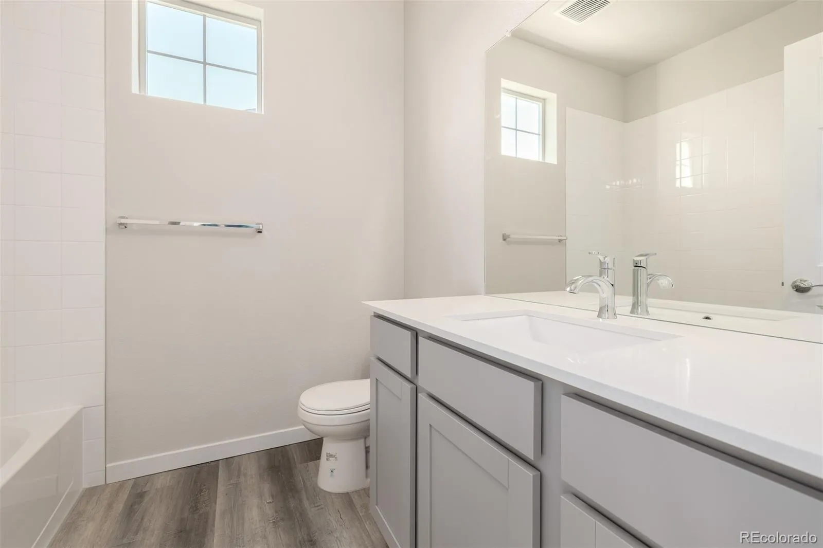 This brand-new end-unit townhouse is for you! A welcoming courtyard entry and a spacious two-story design will impress upon arrival. Inside, the open layout features with designer finishes, creating a clean and modern feel. A convenient powder room serves the main level! The kitchen is beautifully appointed with a breakfast bar island, stainless steel appliances, quartz counters, and attractive cabinetry that provides storage. Upstairs, you’ll find a bright loft perfect as a reading nook or extra lounge space. The main bedroom includes a well-sized walk-in closet and a bathroom with dual sinks for added convenience. Enjoy relaxing outdoors on the covered patio and benefit from the practicality of a 2-car rear-entry garage. Community amenities include raised garden beds, a playground, great park space, and peaceful greenbelt areas. Move-in ready and thoughtfully designed! Hurry!