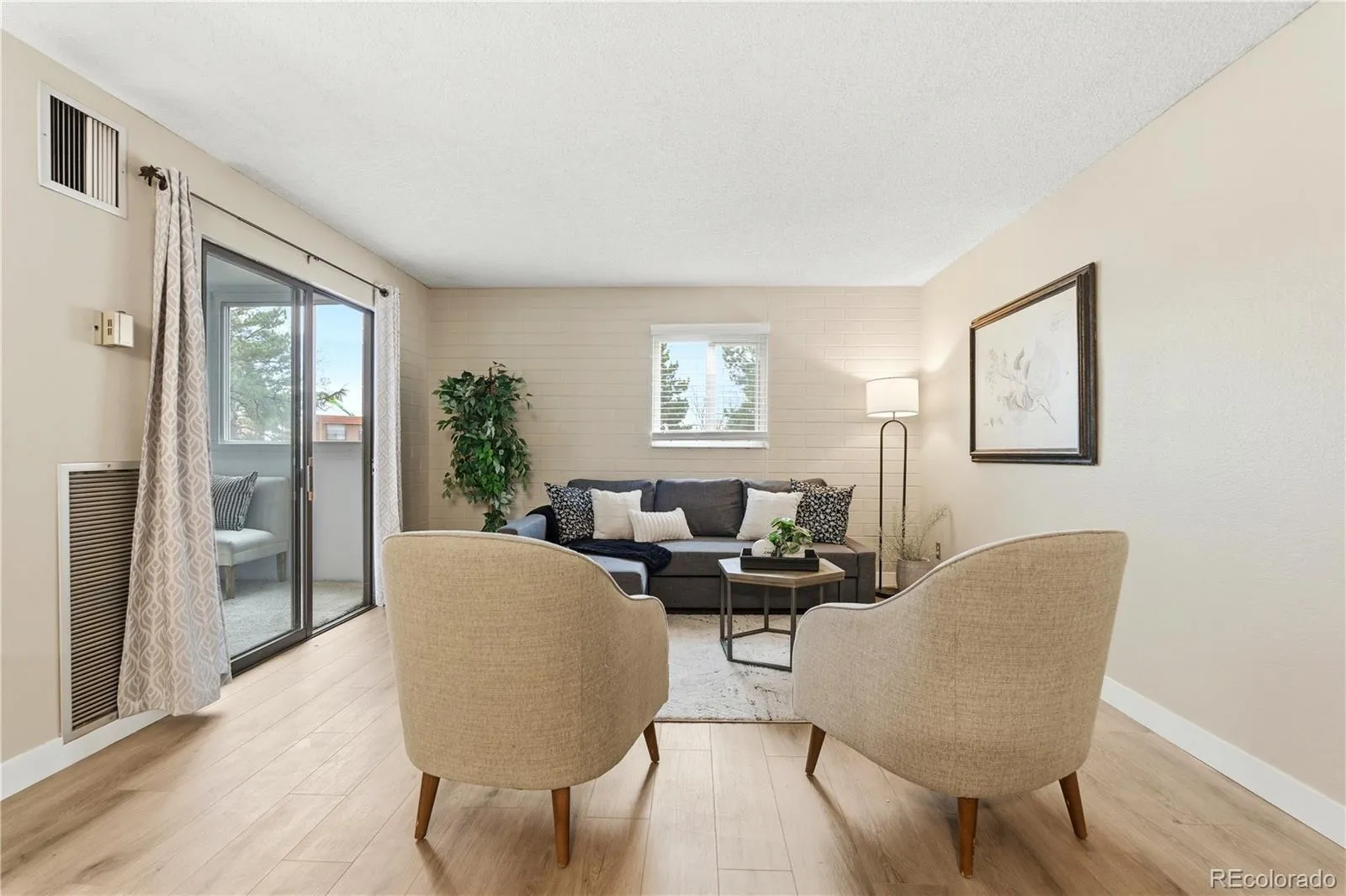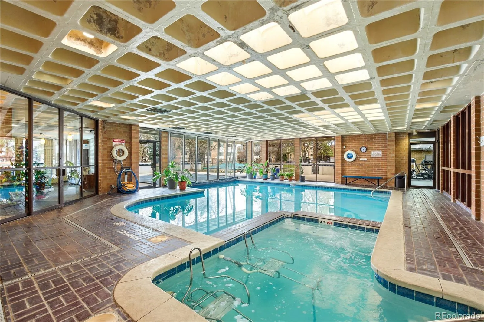 Experience refined, resort-style living in this beautiful modern condo. A rare offering, this home pairs sleek contemporary design with extensive amenities to create the perfect blend of sophistication and low-maintenance comfort. Enjoy new luxury vinyl plank floors throughout and new paint that keep the interior peaceful. The expansive, light-filled living area features a stunning brick wall that leads out to the unique balcony that has been enclosed so it’s enjoyable all year around! A defined dining space flows seamlessly into the adjacent kitchen, where aspiring chefs will appreciate a large pantry area, newer cabinets, a brand new dishwasher and a convenient pass-through to use as countertop seating for seamless entertaining. The primary suite offers a quiet, private retreat with direct access to the bonus space balcony, that can be used as a guest space, an office, a den, etc. The renovated ensuite 3/4 bath includes new shower tile and glass enclosure. A walk-through dressing area with dual closet systems complete the suite, maximizing organization and storage. Bonus note each unit is separated by full concrete walls, so it’s quiet and efficient. Residents enjoy an impressive list of amenities: a dramatic lobby, a newly remodeled workout gym, and a year-round indoor pool and hot tub. As well as a seasonal outdoor pool. The chic recreation lounge offers both a pool table and ping pong, while the lushly landscaped grounds with serene fountains create a park-like atmosphere. Additionally there is elevator access, dedicated parking and exceptional cell and internet speeds, as the roof has cell phone towers attached. The perfect work from home unit or gaming experience, with the fastest internet speeds around. There is laundry on every floor, a dedicated storage closet and a direct walking path to Safeway and restaurants (that requires a key). Discover effortless, stylish Denver living at its finest, close proximity to DTC and public transit just around the corner.
