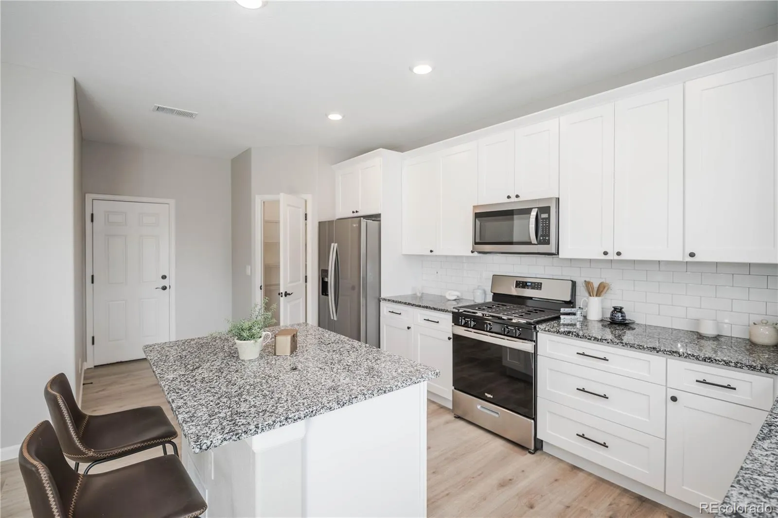 The kitchen is basically auditioning for its own cooking show—complete with all-new cabinets, gleaming stainless steel appliances, a fresh tile backsplash, and a walk-in pantry big enough to hide your Costco hauls.