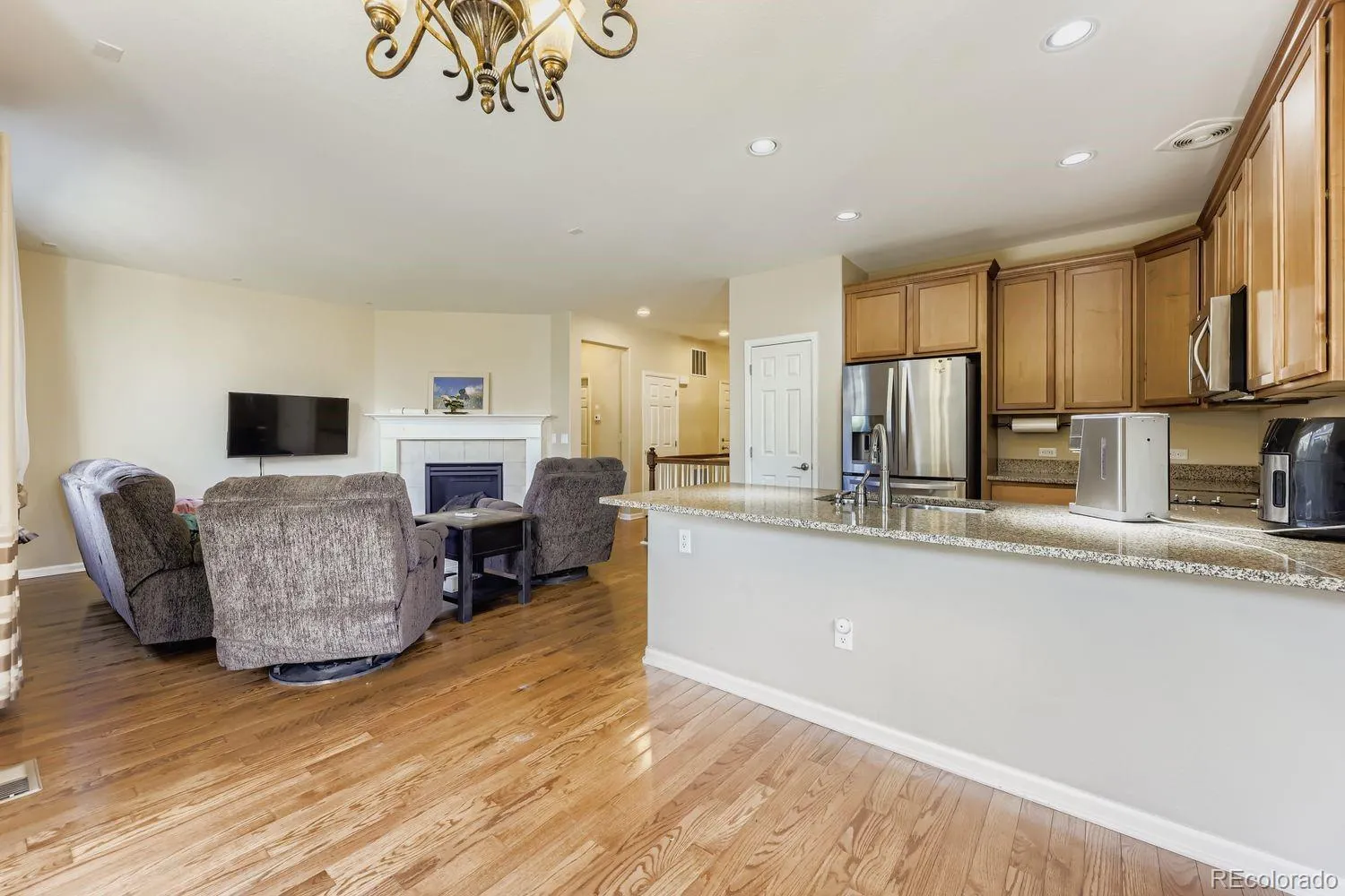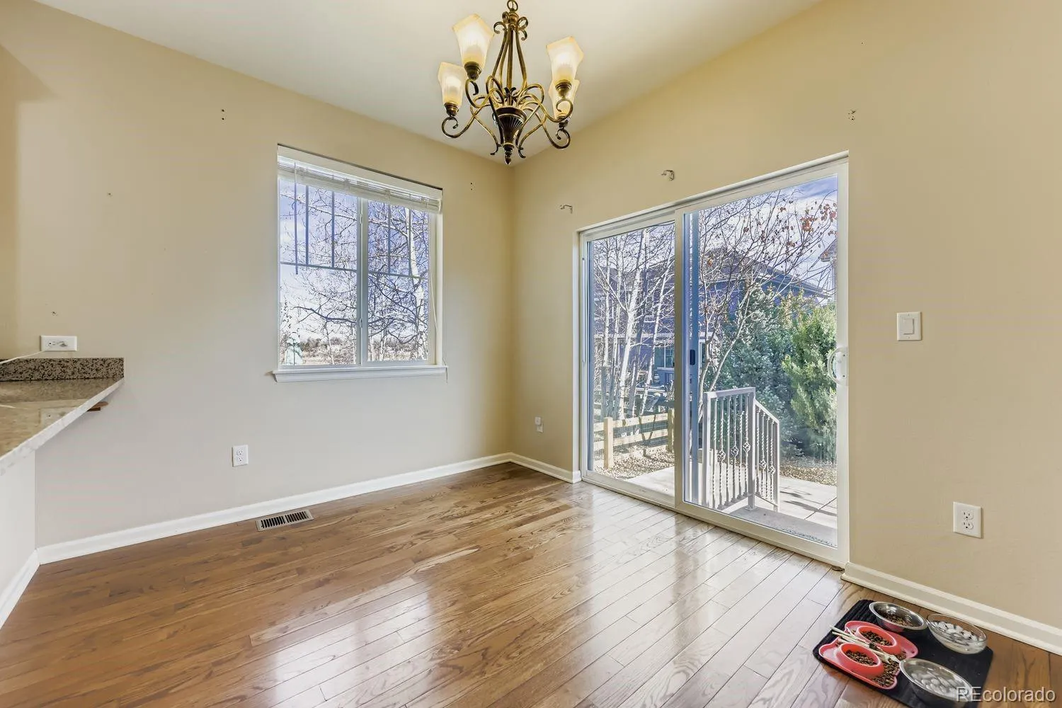 Well-maintained 4-bedroom, 3-bath ranch in Erie Commons, located on a quiet no-through street just steps from Erie Community Park. The main level features an open floor plan with hardwood floors throughout the common areas, plus a kitchen with granite countertops and stainless steel appliances. The primary suite is situated on one end of the home for added privacy, while two additional bedrooms and a full hall bath are located on the opposite wing.
