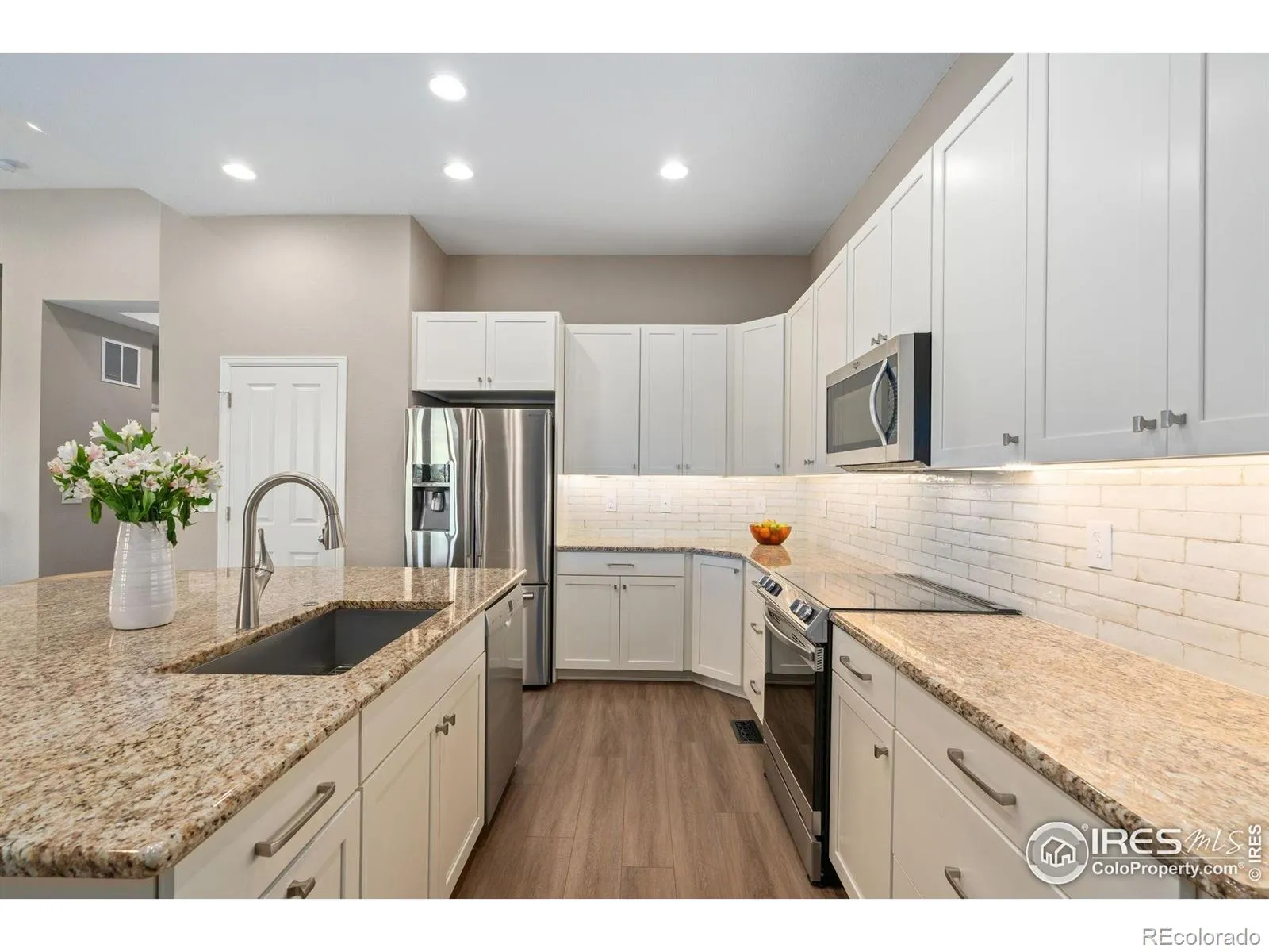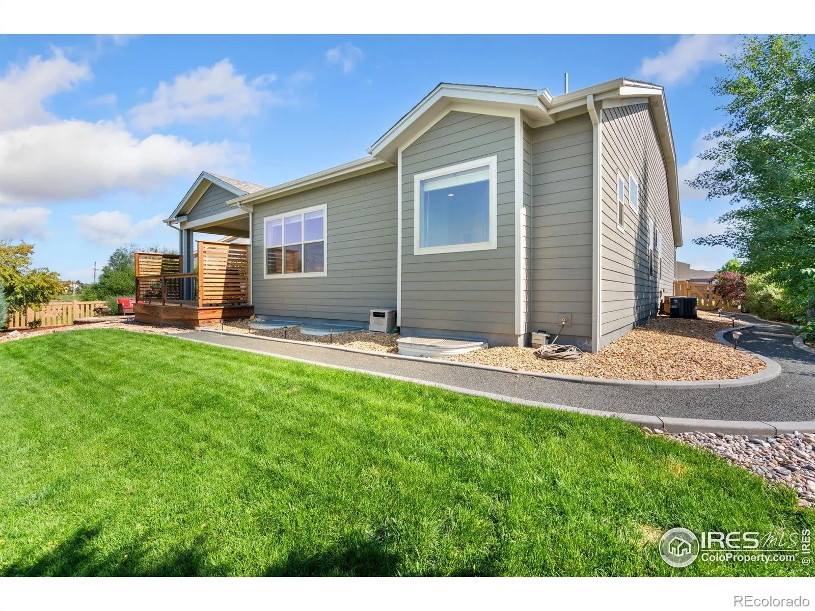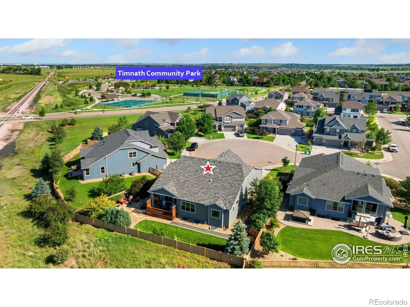 Nestled in a peaceful cul-de-sac and bathed in sunshine with its desirable south-facing orientation, this exquisite residence backs to neighborhood open space, offering both privacy and serene views. As you step inside, you’ll be greeted by an open concept floorplan accentuated by soaring high ceilings and newer luxury vinyl flooring. The heart of the home is the gourmet kitchen, boasting an induction cooktop, convenient pantry, and spacious arched island, ideal for meals and entertainings. Enjoy the convenience of all-main level living that includes a substantial primary suite, complete with a luxurious 5-piece en-suite. Two additional bedrooms are thoughtfully designed with a convenient adjoining bathroom, making it easy for family and guests to share. Venture downstairs to discover even more versatility with a finished flex area that adapts to your lifestyle needs. This level also features two additional bedrooms, a stylish 3/4 bath, and a dedicated workout room equipped with a 20-amp outlet. Plus, a massive unfinished storage space provides plenty of room for all your belongings. The true showstopper is the manicured, private backyard retreat-perfect for summer gatherings or peaceful evenings. The freshly stained hardwood deck and flagstone patio offer ample space for relaxation and outdoor dining, while the drip irrigation system and planter boxes make gardening a breeze. Conveniently located near Timnath Community Park and neighborhood pools, this home invites you to enjoy the best of summer living. To top it off, enjoy the Town of Timnath’s firework display from your back deck. It’s Colorado living at its finest!