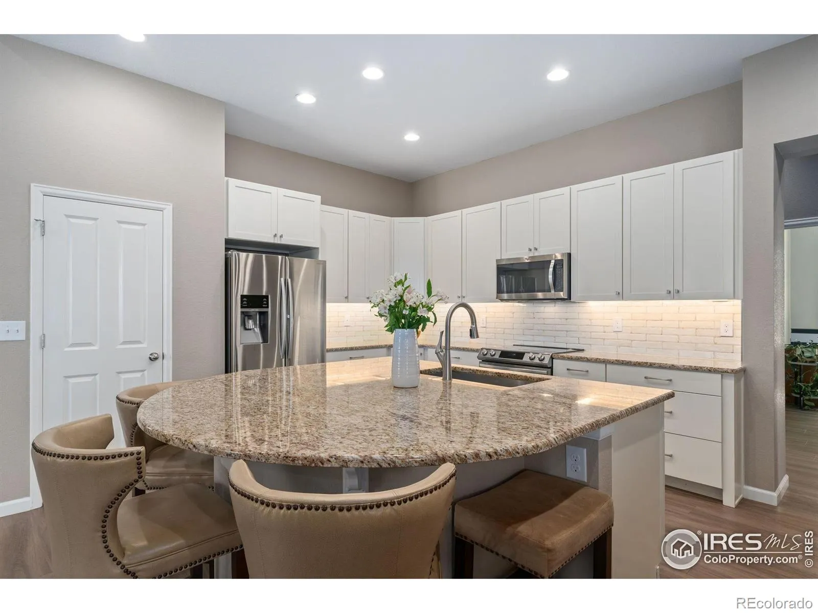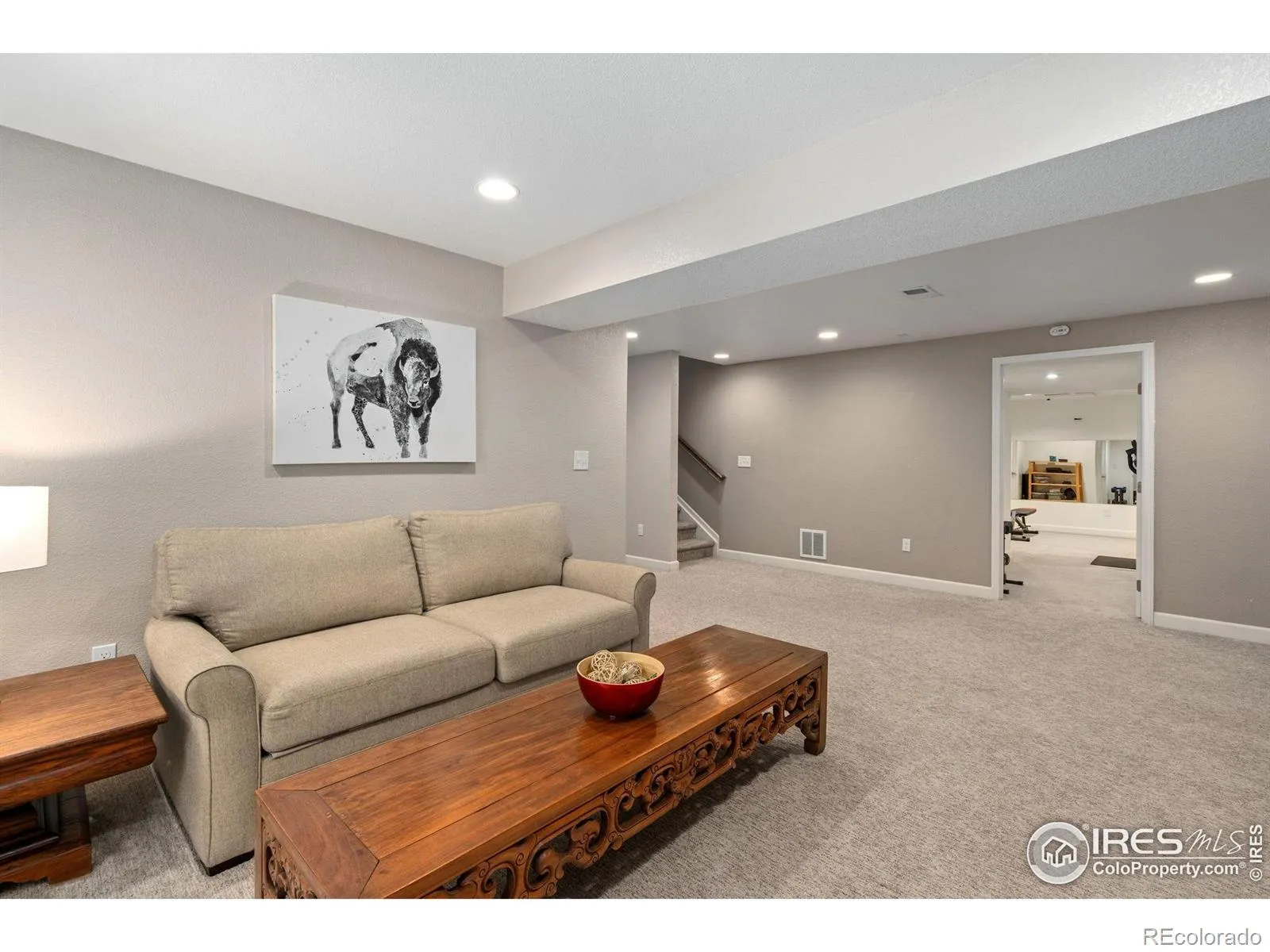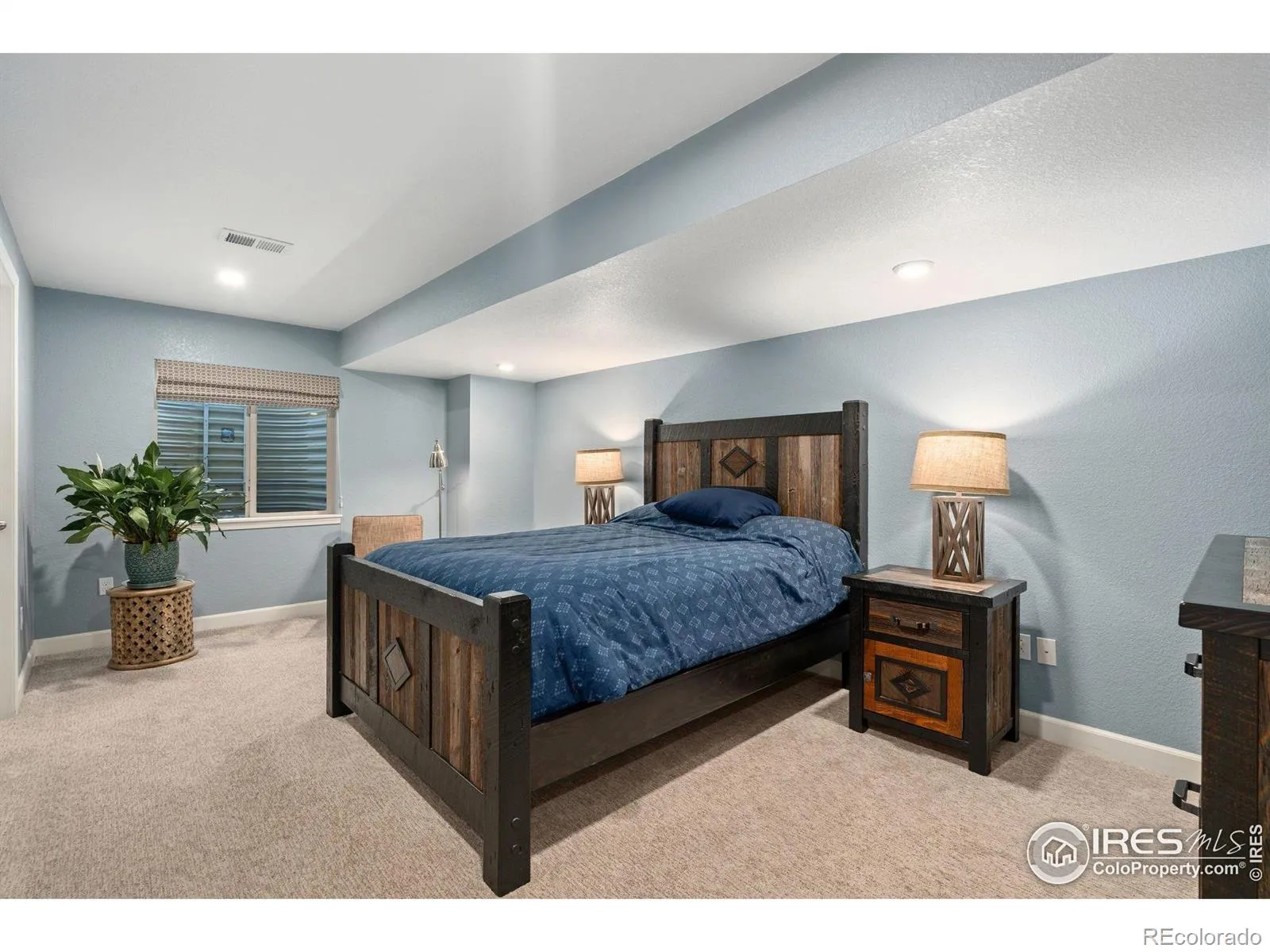 Nestled in a peaceful cul-de-sac and bathed in sunshine with its desirable south-facing orientation, this exquisite residence backs to neighborhood open space, offering both privacy and serene views. As you step inside, you’ll be greeted by an open concept floorplan accentuated by soaring high ceilings and newer luxury vinyl flooring. The heart of the home is the gourmet kitchen, boasting an induction cooktop, convenient pantry, and spacious arched island, ideal for meals and entertainings. Enjoy the convenience of all-main level living that includes a substantial primary suite, complete with a luxurious 5-piece en-suite. Two additional bedrooms are thoughtfully designed with a convenient adjoining bathroom, making it easy for family and guests to share. Venture downstairs to discover even more versatility with a finished flex area that adapts to your lifestyle needs. This level also features two additional bedrooms, a stylish 3/4 bath, and a dedicated workout room equipped with a 20-amp outlet. Plus, a massive unfinished storage space provides plenty of room for all your belongings. The true showstopper is the manicured, private backyard retreat-perfect for summer gatherings or peaceful evenings. The freshly stained hardwood deck and flagstone patio offer ample space for relaxation and outdoor dining, while the drip irrigation system and planter boxes make gardening a breeze. Conveniently located near Timnath Community Park and neighborhood pools, this home invites you to enjoy the best of summer living. To top it off, enjoy the Town of Timnath’s firework display from your back deck. It’s Colorado living at its finest!