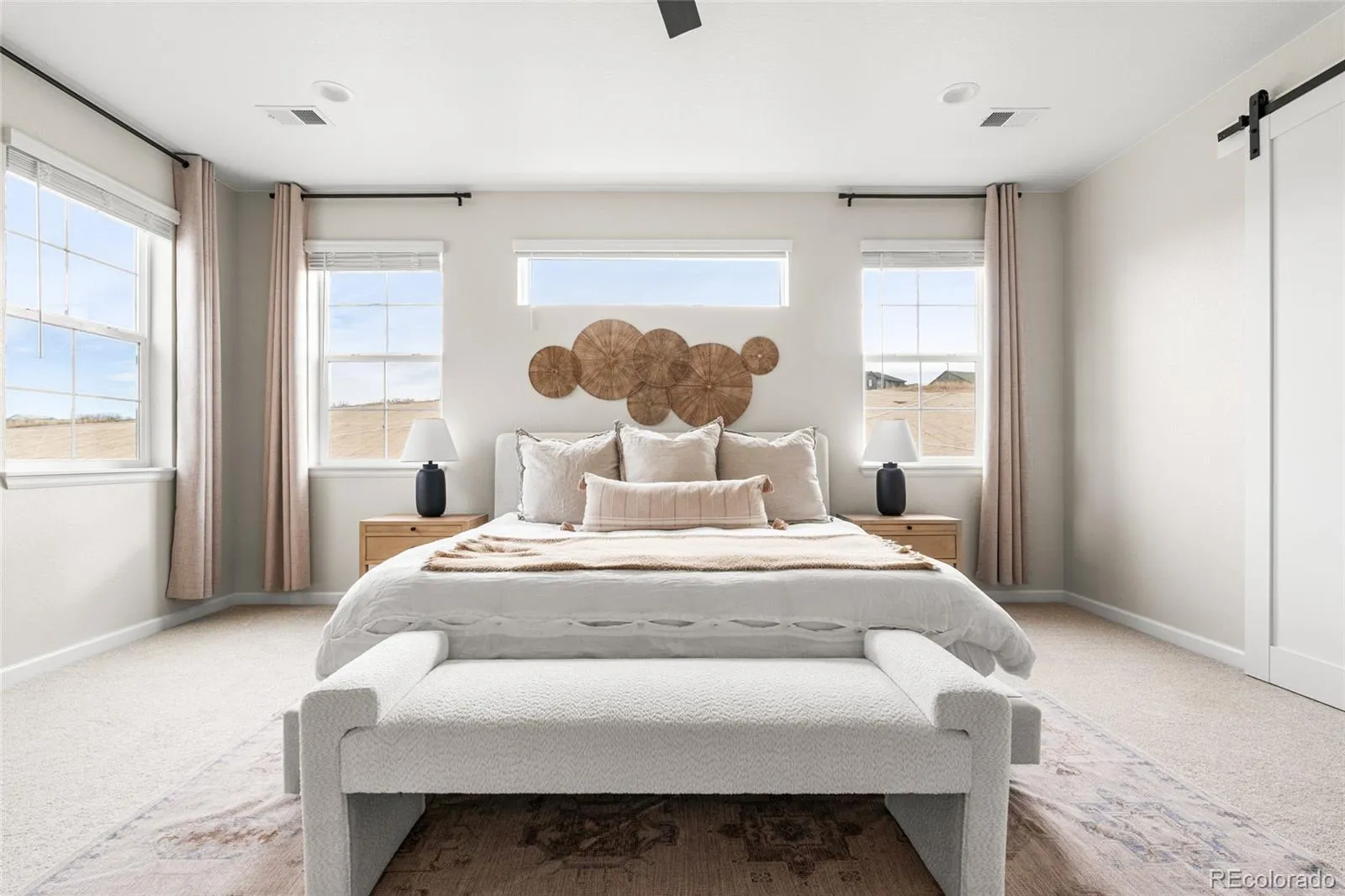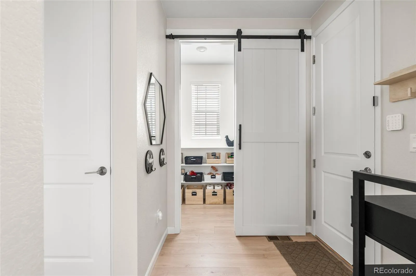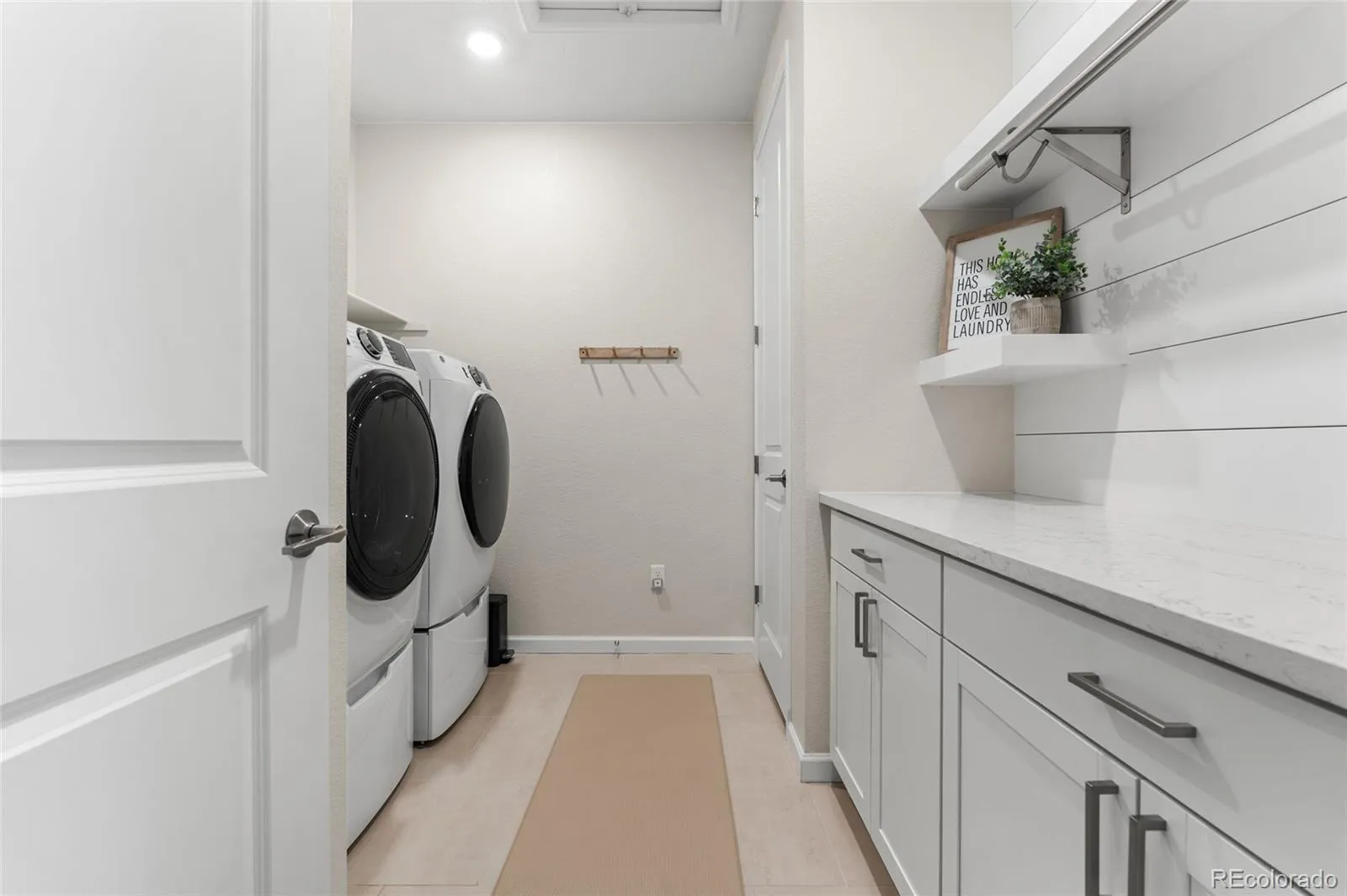 Upstairs includes three additional bedrooms, two full baths, a convenient laundry room, and a luxurious owner’s suite with dual closets, dual sinks, and custom sliding barn doors. The walk-in laundry room is upgraded with new cabinetry, a custom countertop, and shiplap accent wall. The 1,646-sq-ft unfinished basement offers endless potential for future customization. Structural upgrades over similar base models include a fireplace, main-level 5th bedroom with full bath, tub and shower in the primary suite, 8′ upper-level doors, open stair railing, and unfinished basement.