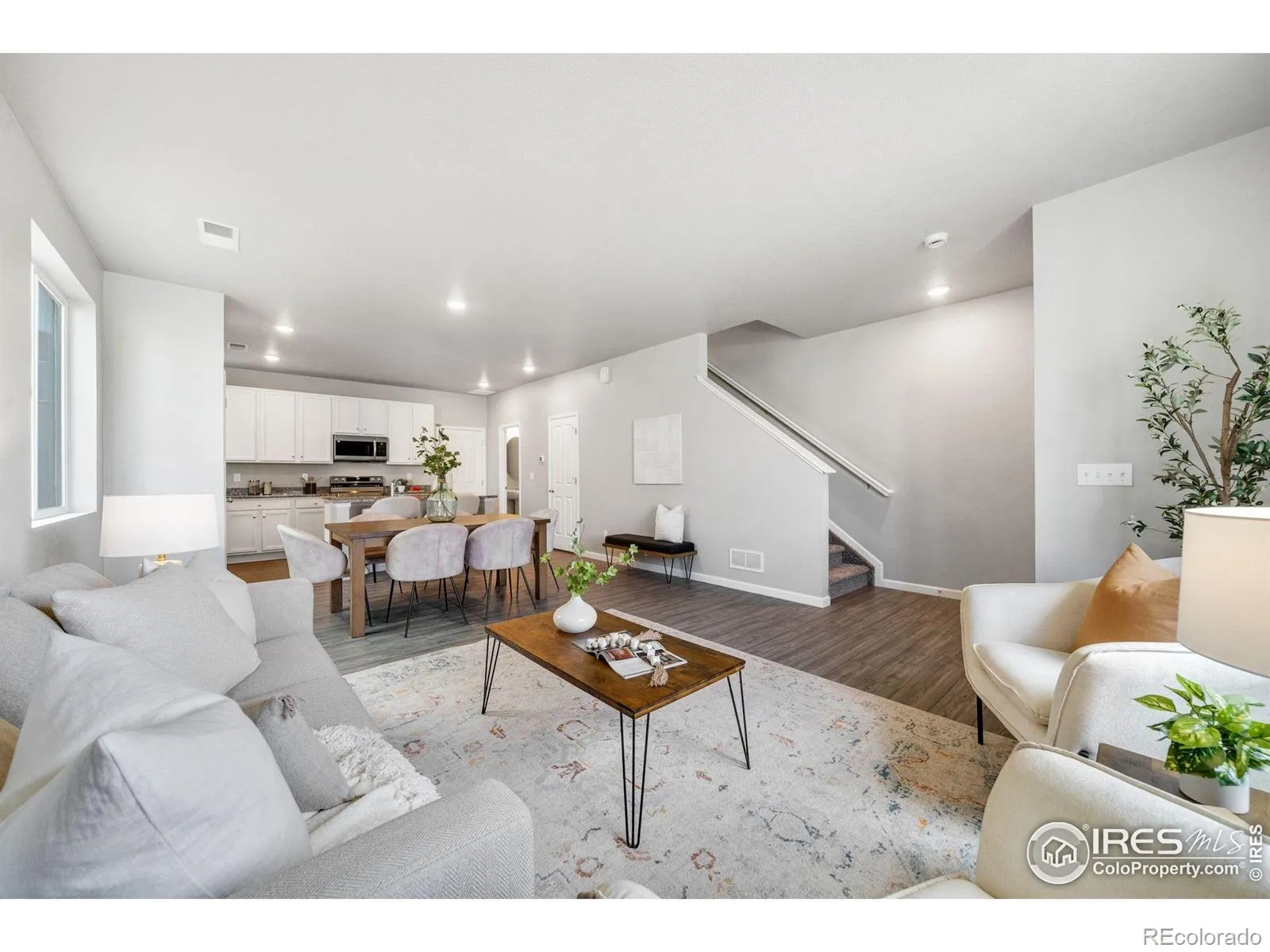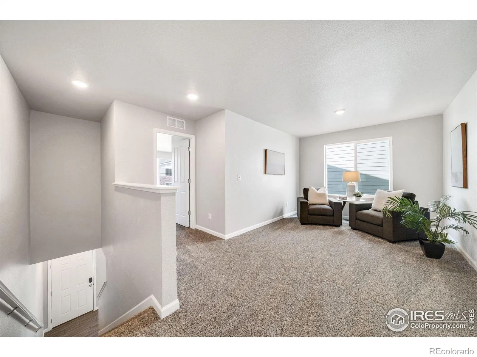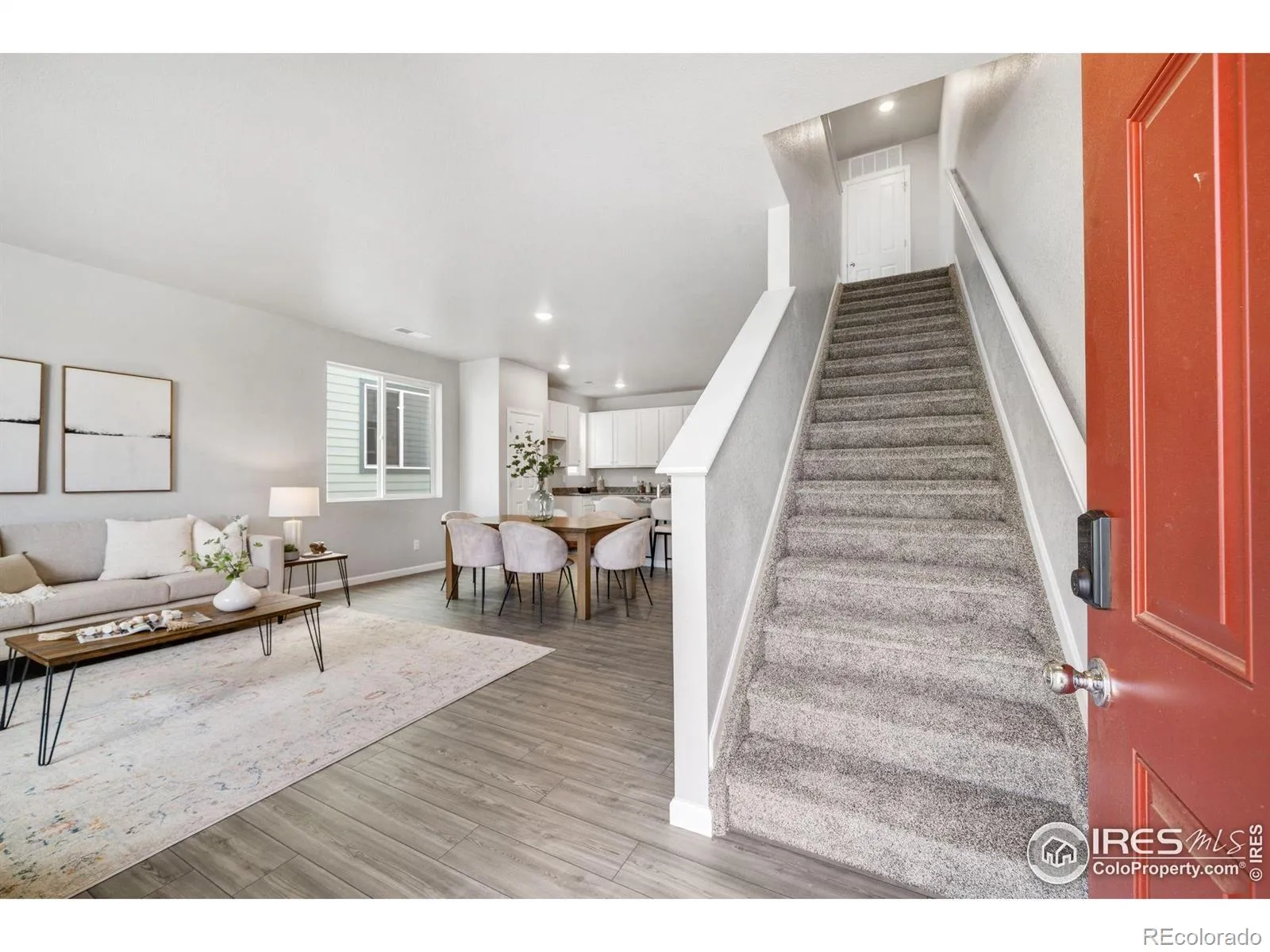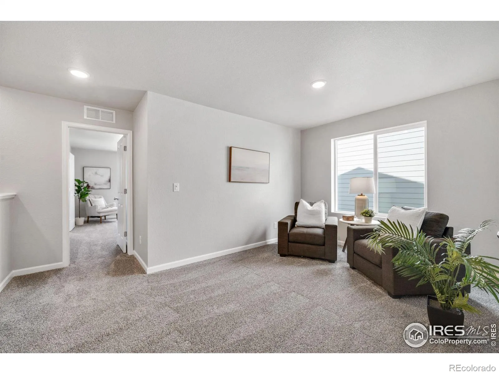 Welcome to the Acadia, a thoughtfully designed two-story paired home offering 1,643 sq. ft., 3 bedrooms, 2.5 bathrooms, an upper-level loft, and a 2-car garage with a crawl space for extra storage. Situated in a charming courtyard setting, enjoy grassy areas for pets or kids, and park benches perfect for relaxing in the sun. Step up to a cozy front porch, ideal for morning coffee or a good book. Inside, the open-concept main level seamlessly connects the great room, dining area, and kitchen-perfect for entertaining. The kitchen features a large center island, pantry, and stylish quartz or granite countertops. A powder room, garage access, and under-stair storage complete the main floor. Upstairs, a versatile loft provides endless possibilities-home office, playroom, studio, or media space. The primary suite includes a walk-in closet and private bath with double vanity. Two additional bedrooms, a full bathroom, and a laundry room complete the upper level. This High-Performance Home is built with energy-efficient features, home automation, and sustainable design for comfort, savings, and a healthier living environment.