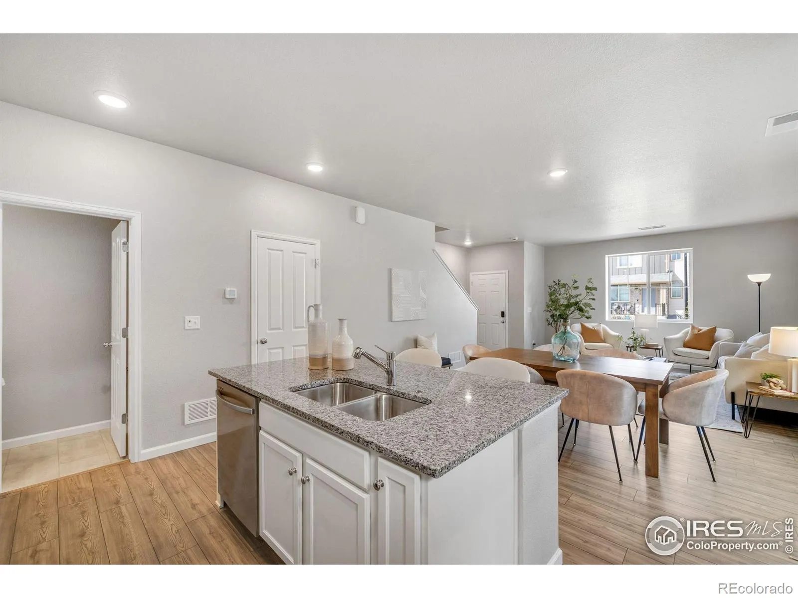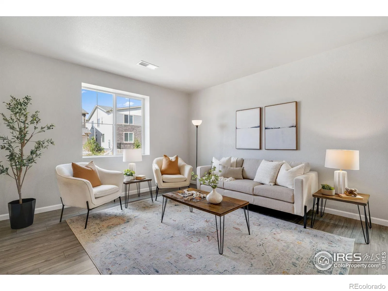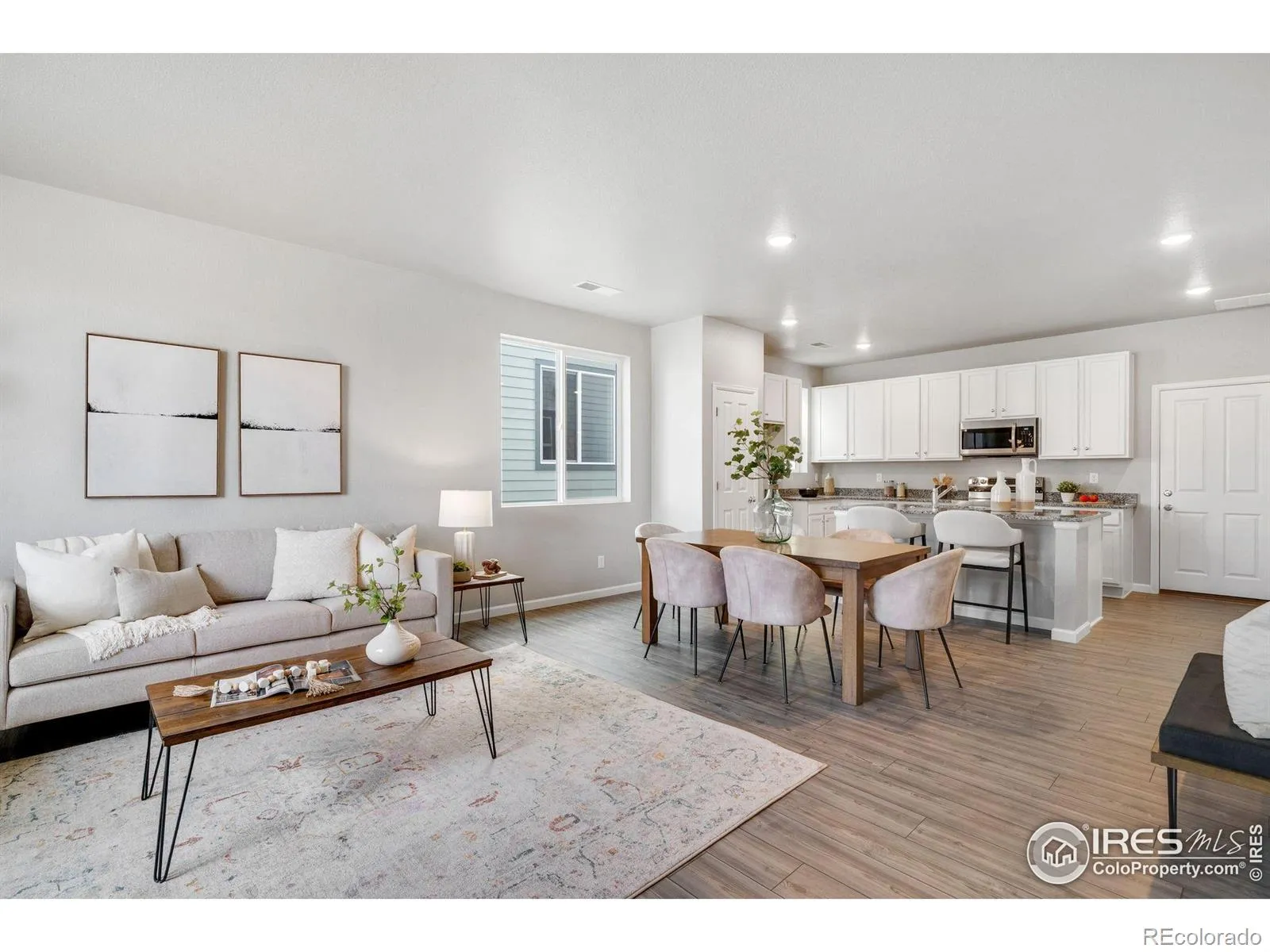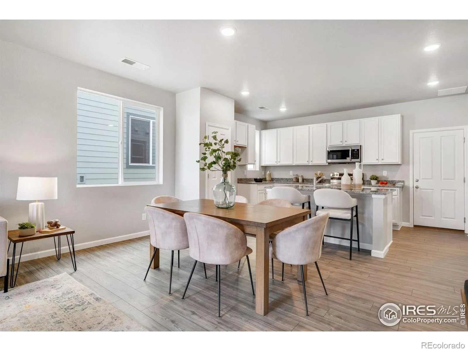 Welcome to the Acadia, a thoughtfully designed two-story paired home offering 1,643 sq. ft., 3 bedrooms, 2.5 bathrooms, an upper-level loft, and a 2-car garage with a crawl space for extra storage. Situated in a charming courtyard setting, enjoy grassy areas for pets or kids, and park benches perfect for relaxing in the sun. Step up to a cozy front porch, ideal for morning coffee or a good book. Inside, the open-concept main level seamlessly connects the great room, dining area, and kitchen-perfect for entertaining. The kitchen features a large center island, pantry, and stylish quartz or granite countertops. A powder room, garage access, and under-stair storage complete the main floor. Upstairs, a versatile loft provides endless possibilities-home office, playroom, studio, or media space. The primary suite includes a walk-in closet and private bath with double vanity. Two additional bedrooms, a full bathroom, and a laundry room complete the upper level. This High-Performance Home is built with energy-efficient features, home automation, and sustainable design for comfort, savings, and a healthier living environment.