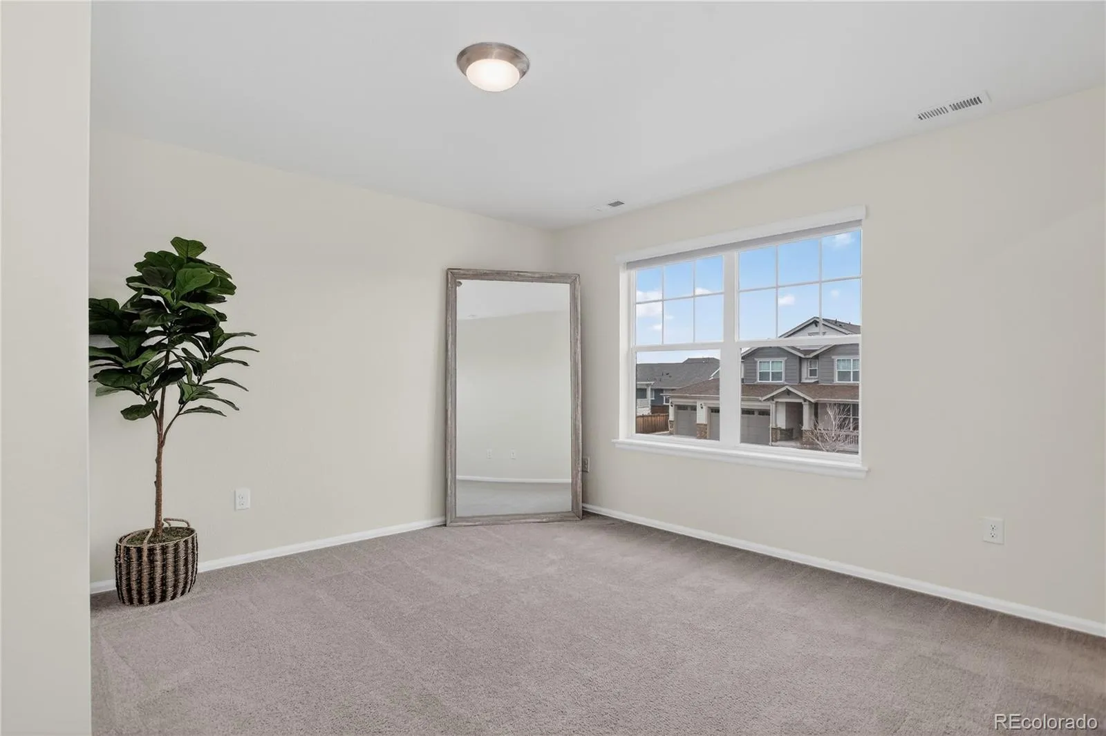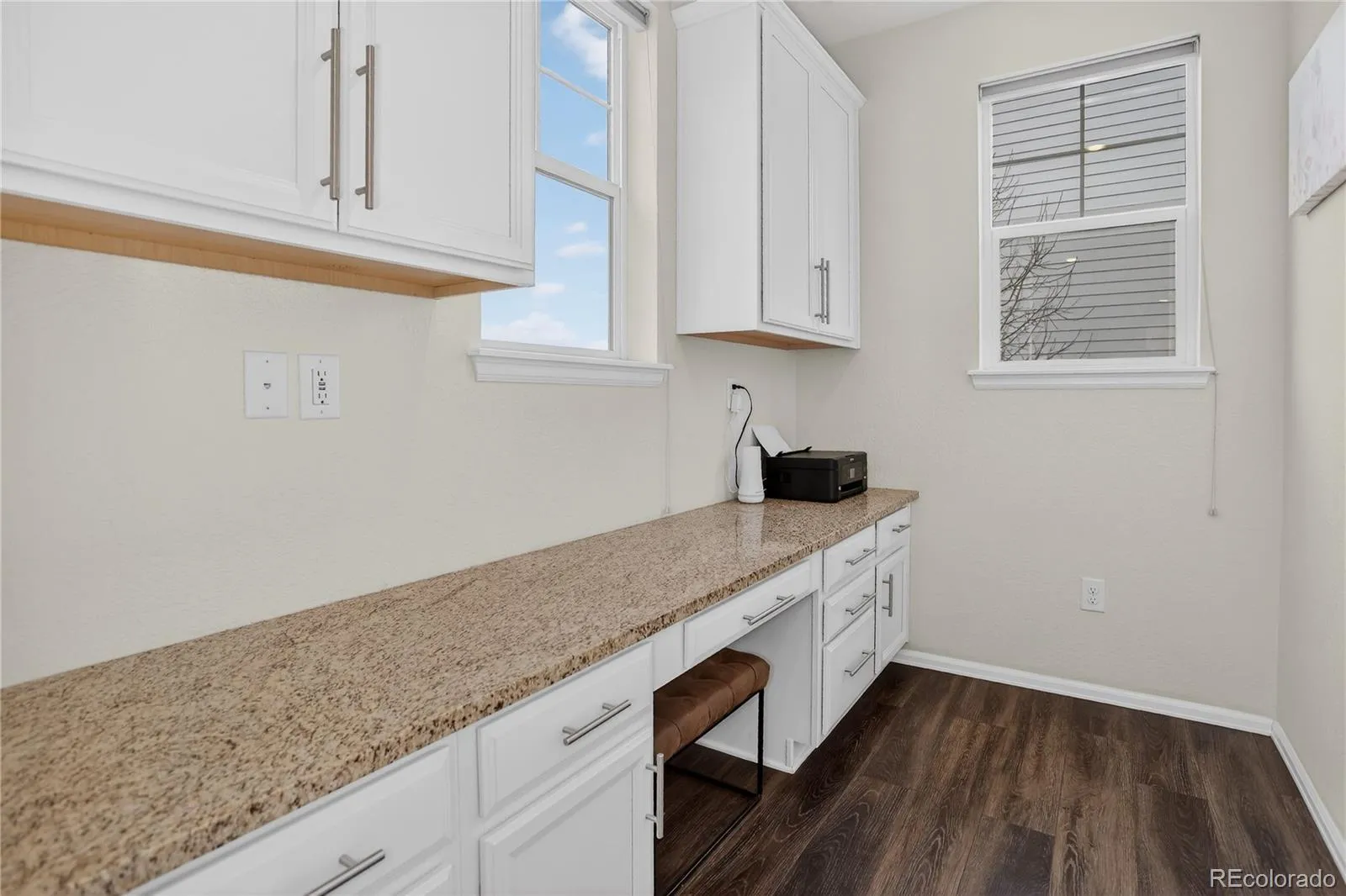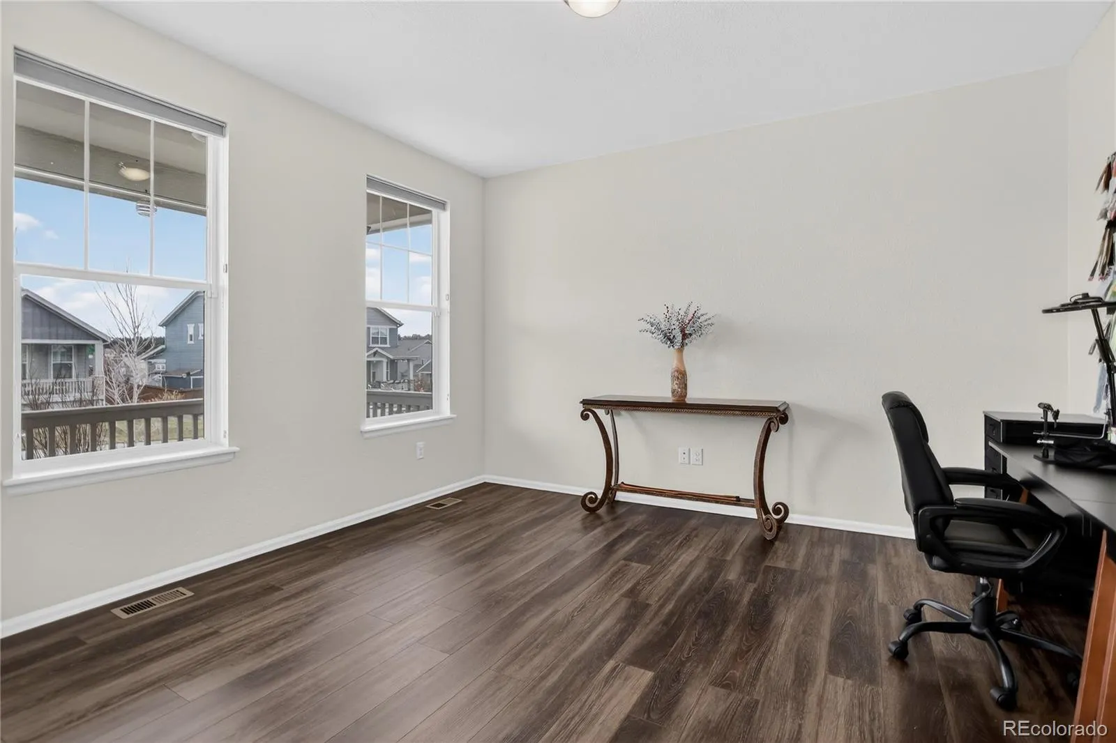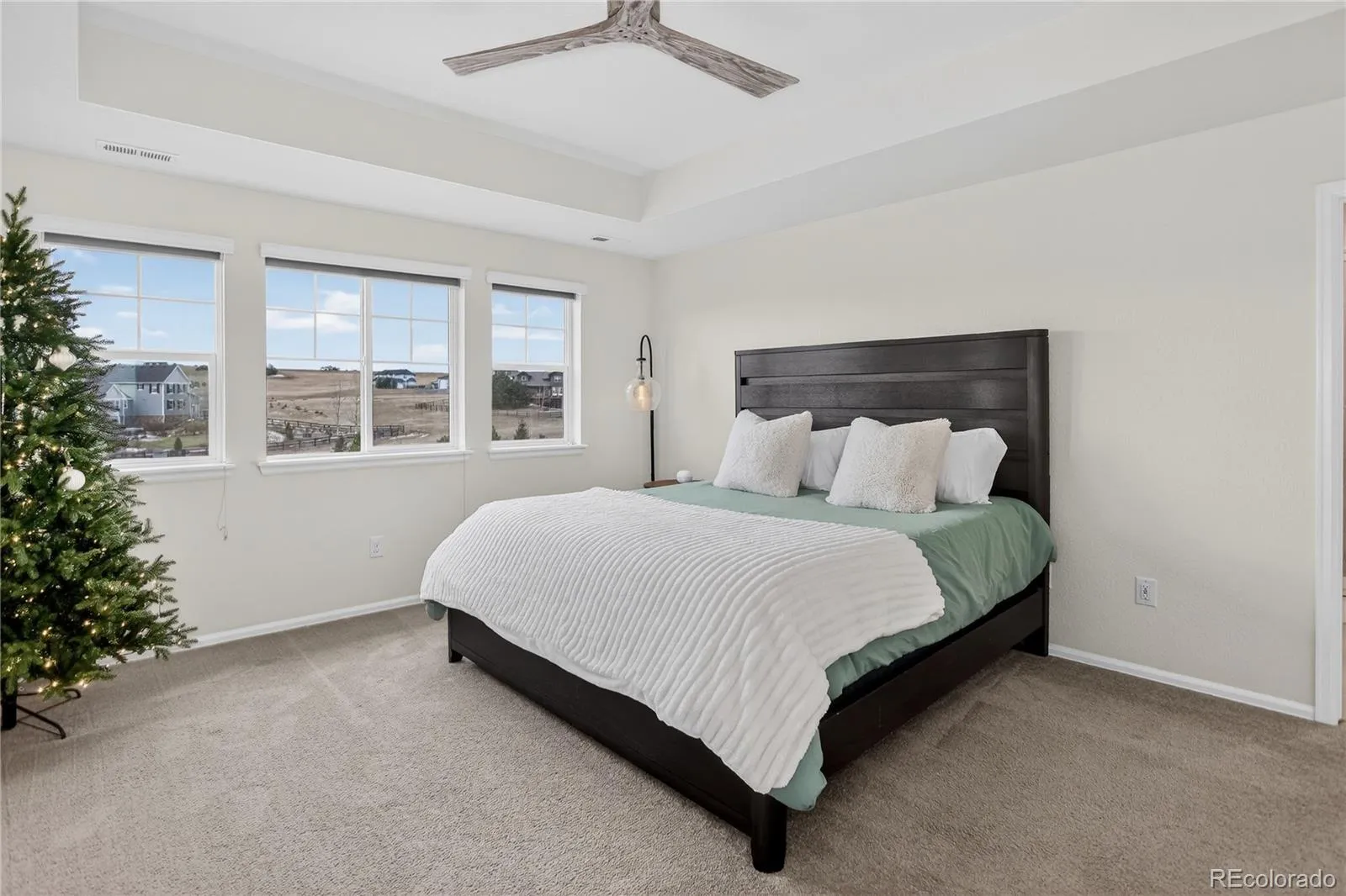 Move-in ready 2-story with rare 4-car garage, that backs to a 5-acre parcel! This home features 9′ ceilings and LVP throughout the main level…expansive views out the wall of windows in the large living and dining rooms…kitchen with 42″ white cabinets with crown molding, granite counters, subway tile backsplash, counter bar island with SS sink and decorator pendant lighting, corner pantry, ample recessed lighting and all SS appliances including gas range and newer touch screen French door fridge… 10’X6′ built-in desk area off the garage…office/flex space overlooking the covered front porch…and convenient powder bath with pedestal sink. Upstairs, you’ll find the 15’X15′ primary suite with window wall and serene views, tray ceiling and ensuite bath with double sinks, lowered makeup vanity, roomy shower and 7’x10′ walk-in closet…3 large additional bedrooms…one with an ensuite full bath, and two with walk-in closets and an expanded connecting Jack & Jill bath…and laundry room. The 1,216sqft unfinished basement offers 9′ ceilings, bath rough in, dual AC systems and so many possibilities for finishing the space. Outside, you’ll enjoy all the amenities of the thoughtfully landscaped backyard…17’X10′ covered deck with custom live edge bar top, sun shades and rolling gate (perfect to help manage small children or pets)…multi-level stamped concrete patio…several water features…dog run…automated landscape lighting…and shaded front porch for those hot summer afternoons. 3 houses down from the playground at Gold Creek Valley Park, .6 miles to Walmart and less than 2 miles to the center of the Town of Elizabeth, too!