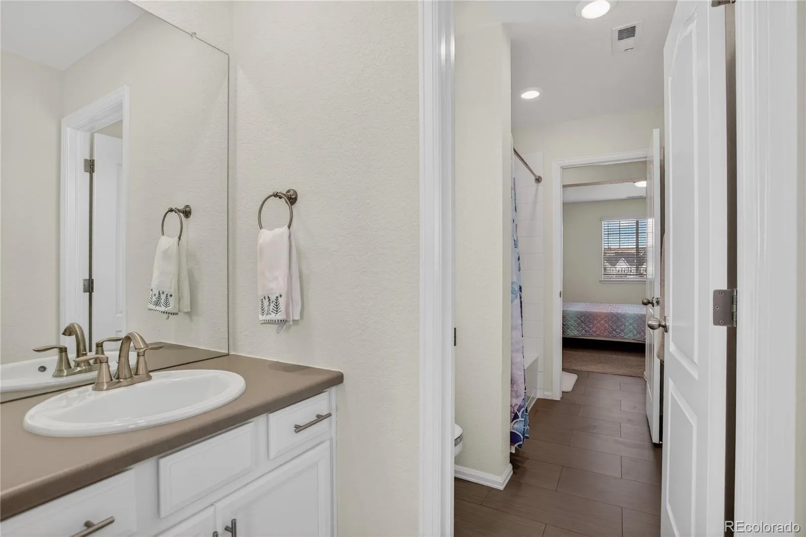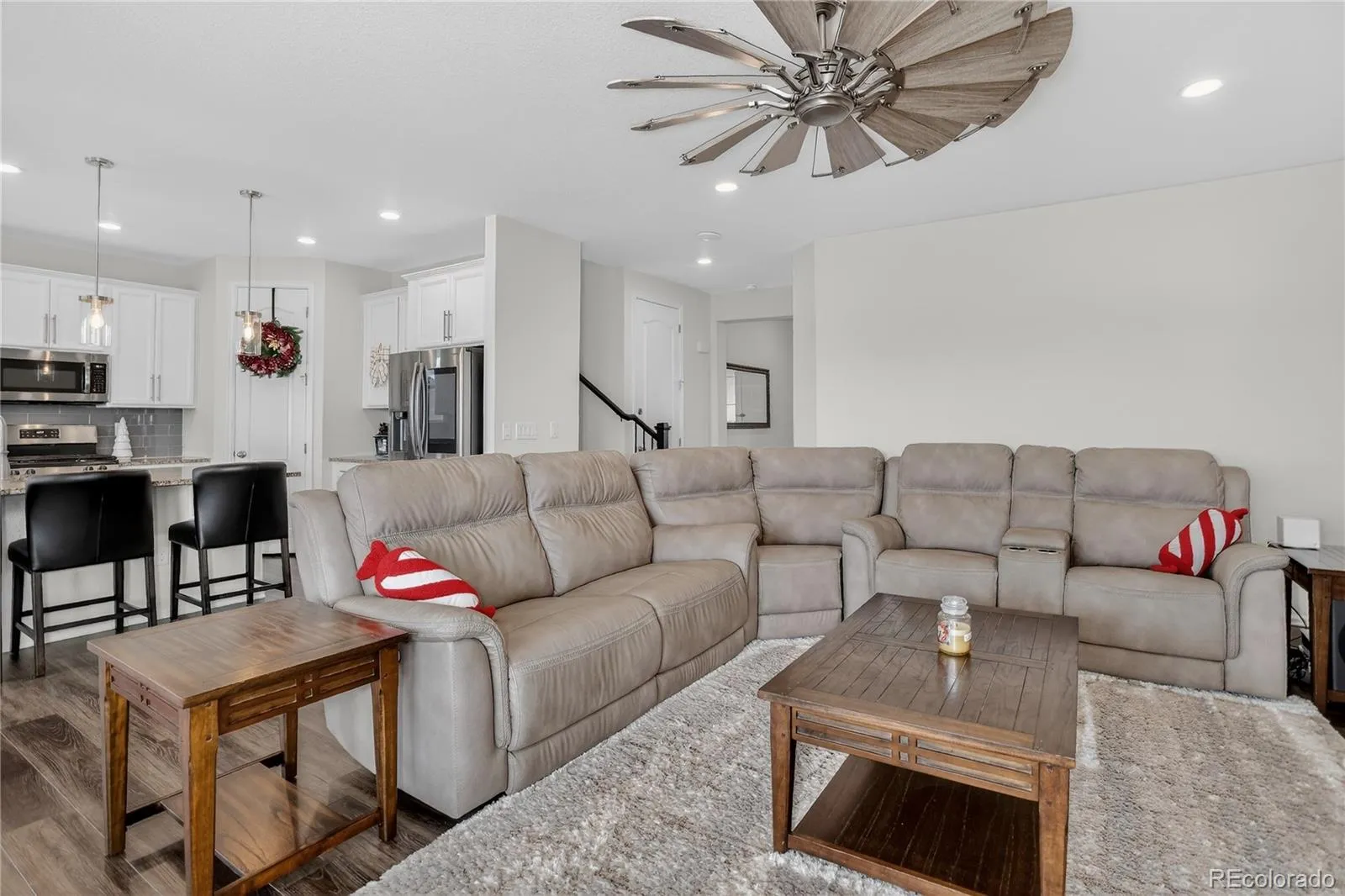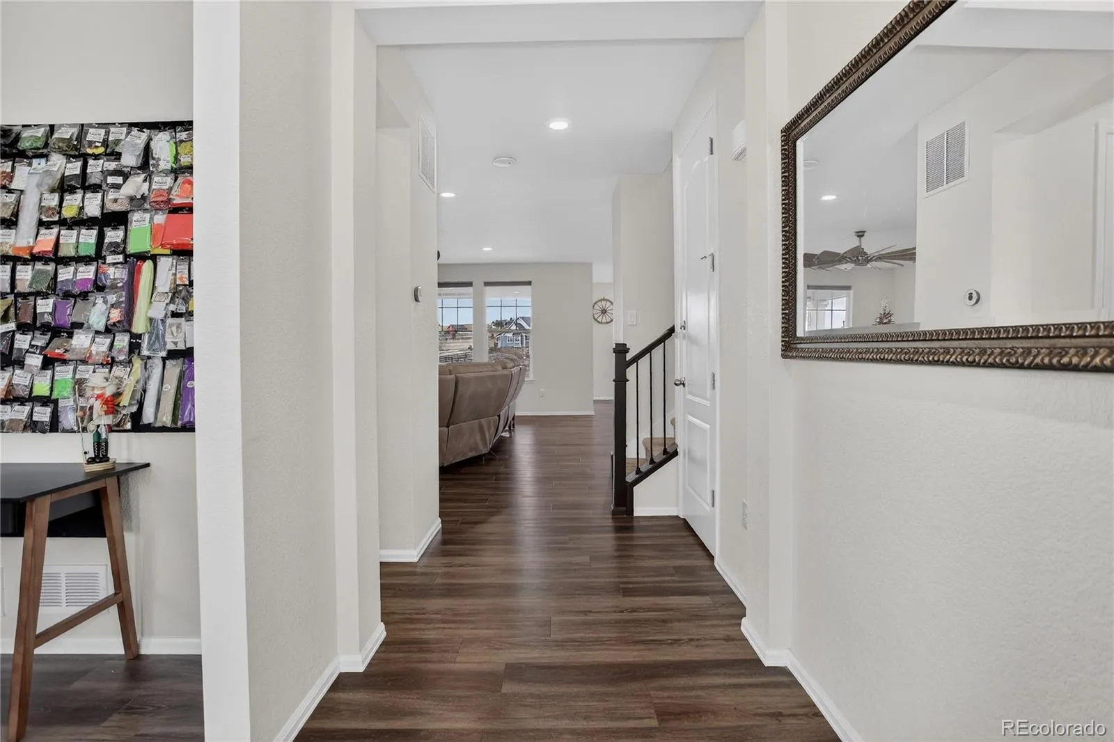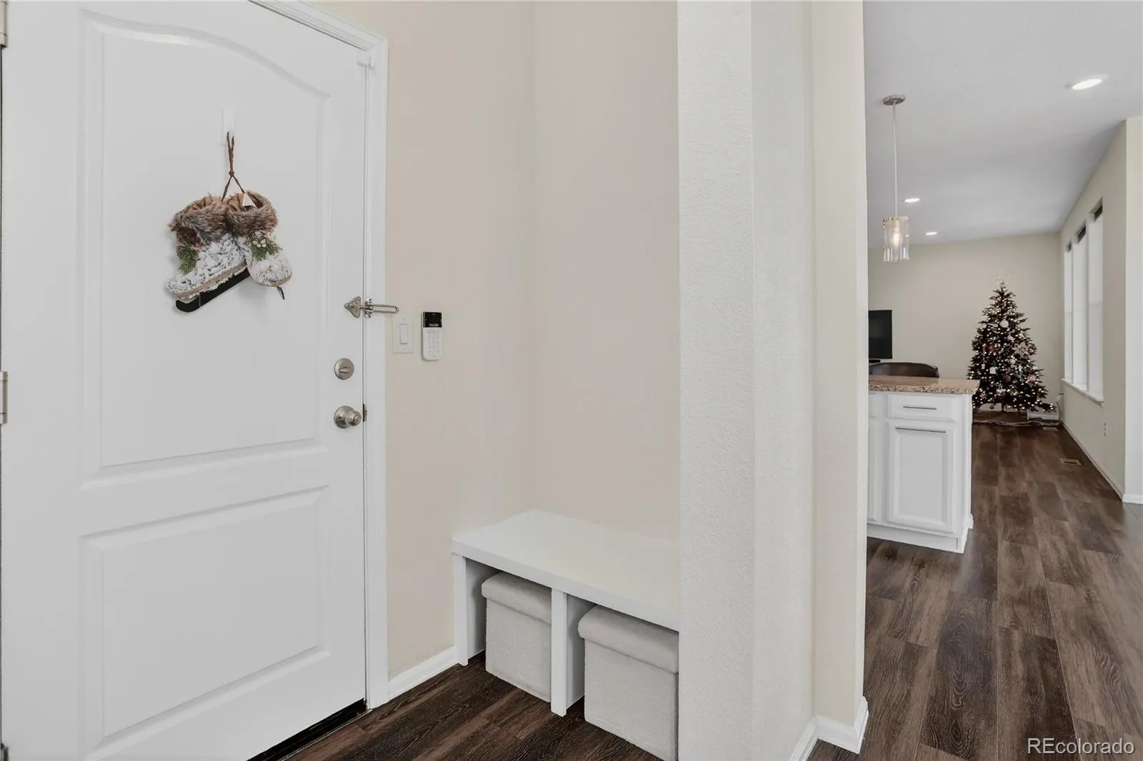 Move-in ready 2-story with rare 4-car garage, that backs to a 5-acre parcel! This home features 9′ ceilings and LVP throughout the main level…expansive views out the wall of windows in the large living and dining rooms…kitchen with 42″ white cabinets with crown molding, granite counters, subway tile backsplash, counter bar island with SS sink and decorator pendant lighting, corner pantry, ample recessed lighting and all SS appliances including gas range and newer touch screen French door fridge… 10’X6′ built-in desk area off the garage…office/flex space overlooking the covered front porch…and convenient powder bath with pedestal sink. Upstairs, you’ll find the 15’X15′ primary suite with window wall and serene views, tray ceiling and ensuite bath with double sinks, lowered makeup vanity, roomy shower and 7’x10′ walk-in closet…3 large additional bedrooms…one with an ensuite full bath, and two with walk-in closets and an expanded connecting Jack & Jill bath…and laundry room. The 1,216sqft unfinished basement offers 9′ ceilings, bath rough in, dual AC systems and so many possibilities for finishing the space. Outside, you’ll enjoy all the amenities of the thoughtfully landscaped backyard…17’X10′ covered deck with custom live edge bar top, sun shades and rolling gate (perfect to help manage small children or pets)…multi-level stamped concrete patio…several water features…dog run…automated landscape lighting…and shaded front porch for those hot summer afternoons. 3 houses down from the playground at Gold Creek Valley Park, .6 miles to Walmart and less than 2 miles to the center of the Town of Elizabeth, too!