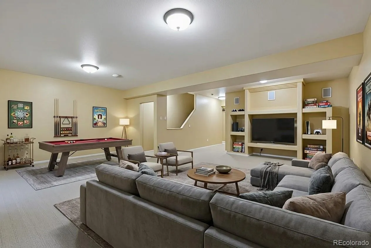 Golf course views, main-floor living, and an entertainer’s backyard oasis await in this beautifully appointed 5-bedroom, 4-bath ranch on a generous 17,000 sq ft lot. Vaulted ceilings span the main level, while the basement offers 9-foot ceilings for an airy, open feel throughout. The chef-inspired kitchen features Corian counters, engineered wood floors, upgraded appliances, and a double oven 5-burner gas range—perfect for everyday cooking and hosting. Relax in the welcoming living room by the gas fireplace, or retreat to the serene primary suite with a luxurious 5-piece bath. From the primary bath, step directly onto the stamped-and-stained concrete patio and unwind beside the private, landscaped water feature—a tranquil pond with relaxing waterfalls, encircled by trees and shrubs for exceptional privacy. Car enthusiasts and hobbyists will love the oversized, 892 sq ft heated and insulated garage—ample room for vehicles, storage, and projects. Thoughtful upgrades include exterior landscape lighting, JellyFish permanent exterior lighting, a whole-house water filtration system with leak sensor, and a reverse osmosis drinking water system. Out front, enjoy peaceful golf course views; out back, savor your own private sanctuary. Community amenities elevate the lifestyle with a pool, recreation center, workout facilities, and more. This is the perfect blend of comfort, style, and convenience.