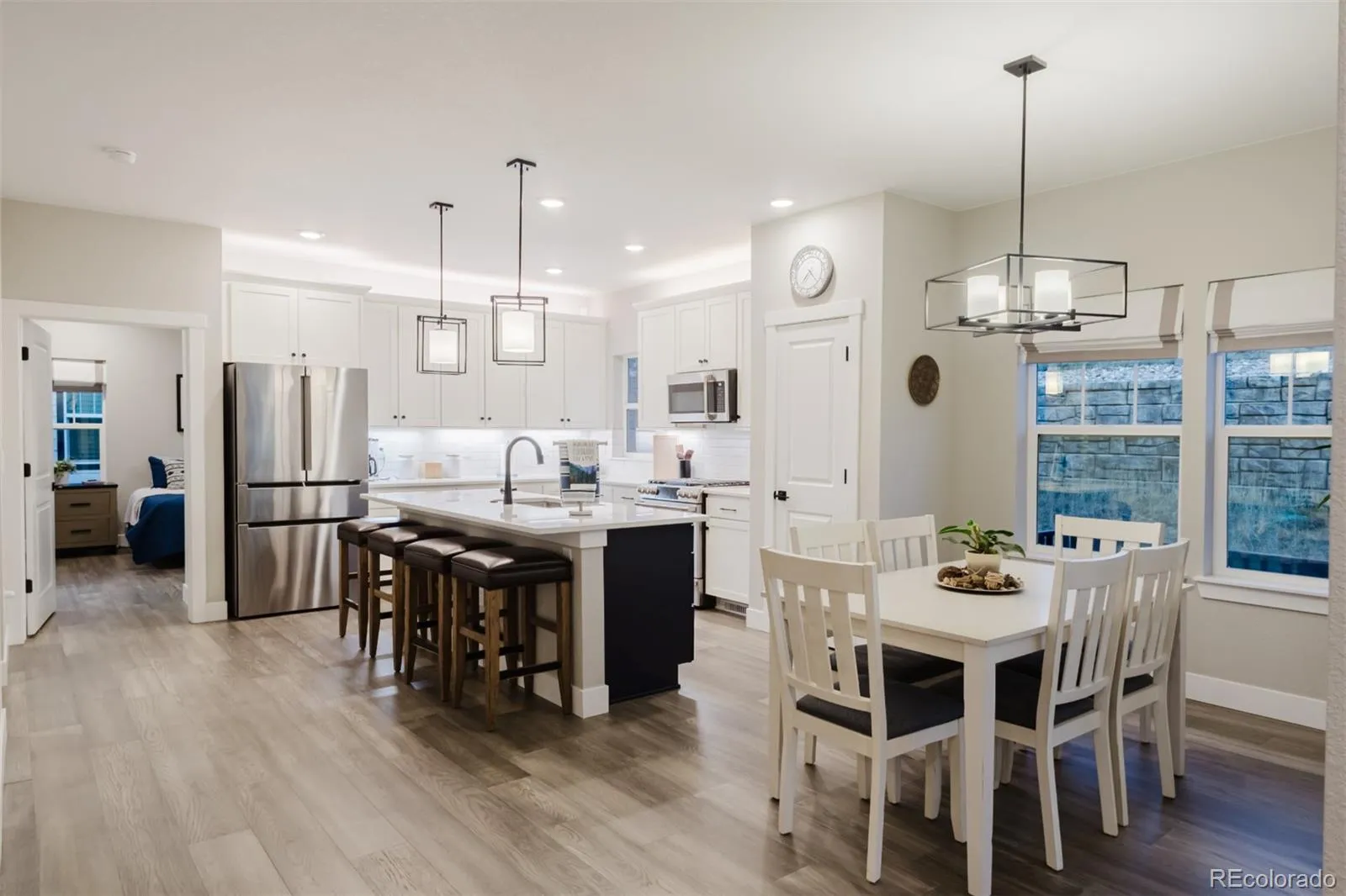 Come home to the very best of Monument living in this good-as-new four bedroom ranch plan with a freshly finished basement! This Craftsman-style cutie has a fantastic floor plan, with an office in the front overlooking Pikes Peak and unbeatable location just steps from the Home Place Ranch Community Center with its’ pickle ball courts and amazing views, and it is also just a short walk to community parks and playgrounds. This home is part of the low-maintenance Villa Series at Home Place Ranch, so all of your exterior landscaping, trash and snow removal are included! Inside, this home is as easy to love and care for as the outside. There are engineered wood floors throughout, two bedrooms and two bathrooms on the main floor, plus two more bedrooms and another bath on the basement level. The kitchen has upgraded cabinetry with dovetailed drawers, a pantry and an adjacent dining area, plus quartz countertops and stainless steel appliances including a six-burner gas range and a French-door refrigerator. There’s a black undermount sink and coordinating black plumbing fixtures and door hardware throughout. The basement level has a gorgeous wet bar with a beverage refrigerator and open shelving, a large family room with separate areas for different activities and tons of storage. Elegant light fixtures and custom window treatments mean this home is truly move-in ready and a better value than buying new! Other upgrades you’ll appreciate include a radon system, air conditioning, fenced dog run area off the back patio, covered front porch, irrigation system and more. Home Place Ranch is one of Monument’s newest communities, with easy access to I-25 and Hwy 83 for easy commutes to Denver and Colorado Springs, plus conveniently close to grocery stores, shopping, great restaurants, major employers and more. Easy access to Fox Run Regional Park as well – one of the most beautiful parks in the area with playgrounds, dog parks, and miles and miles of hiking and biking trails.