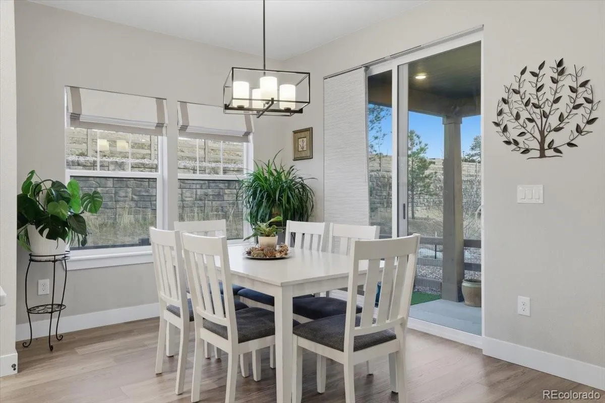 Come home to the very best of Monument living in this good-as-new four bedroom ranch plan with a freshly finished basement! This Craftsman-style cutie has a fantastic floor plan, with an office in the front overlooking Pikes Peak and unbeatable location just steps from the Home Place Ranch Community Center with its’ pickle ball courts and amazing views, and it is also just a short walk to community parks and playgrounds. This home is part of the low-maintenance Villa Series at Home Place Ranch, so all of your exterior landscaping, trash and snow removal are included! Inside, this home is as easy to love and care for as the outside. There are engineered wood floors throughout, two bedrooms and two bathrooms on the main floor, plus two more bedrooms and another bath on the basement level. The kitchen has upgraded cabinetry with dovetailed drawers, a pantry and an adjacent dining area, plus quartz countertops and stainless steel appliances including a six-burner gas range and a French-door refrigerator. There’s an under-mount sink and coordinating black plumbing fixtures and door hardware throughout. The basement level has a gorgeous wet bar with a beverage refrigerator and open shelving, a large family room with separate areas for different activities and tons of storage. Elegant light fixtures and custom window treatments mean this home is truly move-in ready and a better value than buying new! Other upgrades you’ll appreciate include a radon system, air conditioning, fenced dog run area off the back patio, covered front porch, irrigation system and more. Home Place Ranch is one of Monument’s newest communities, with easy access to I-25 and Hwy 83 for easy commutes to Denver and Colorado Springs, plus conveniently close to grocery stores, shopping, great restaurants, major employers and more. Easy access to Fox Run Regional Park as well – one of the most beautiful parks in the area with playgrounds, dog parks, and miles and miles of hiking and biking trails. D-38.