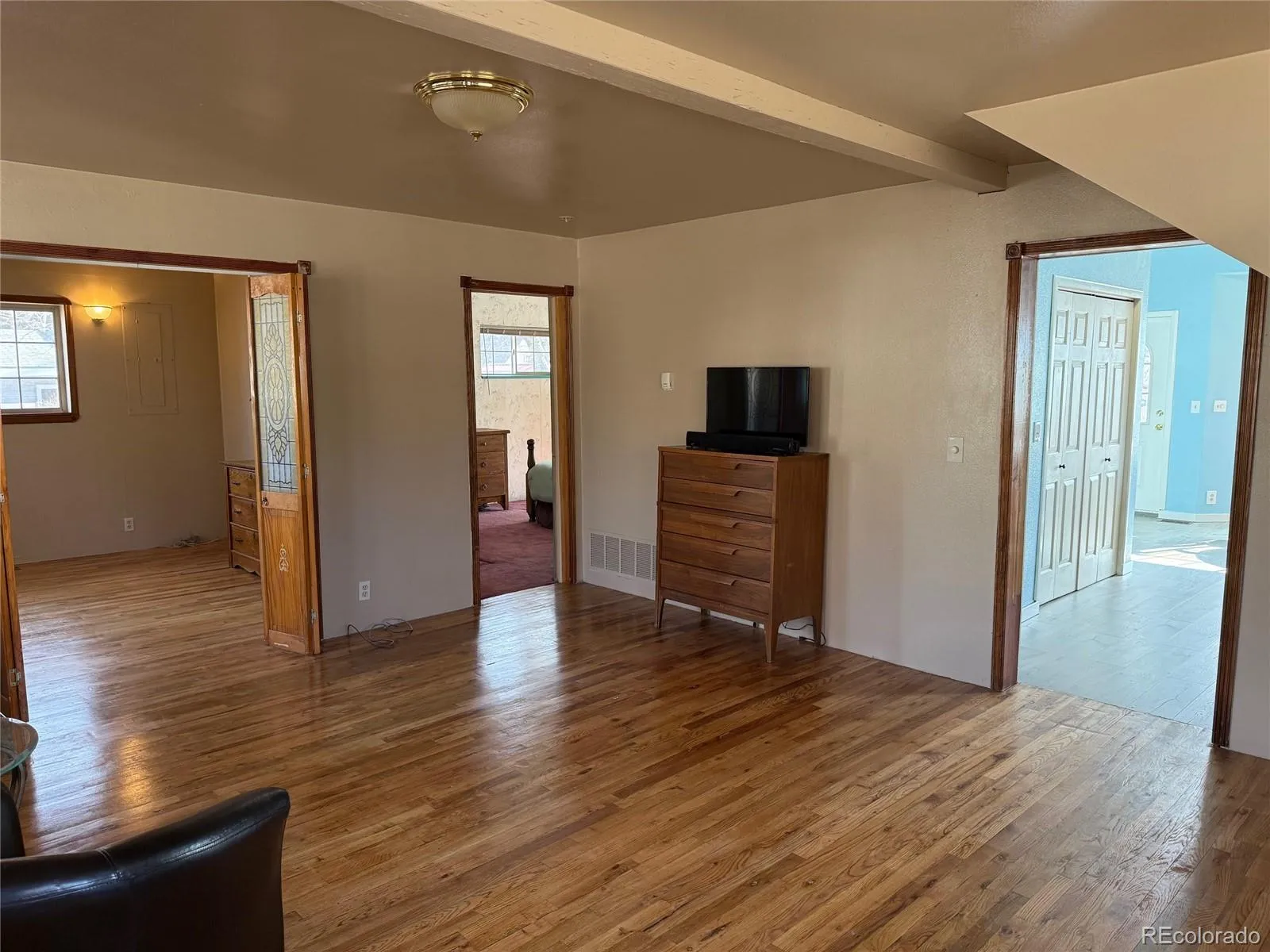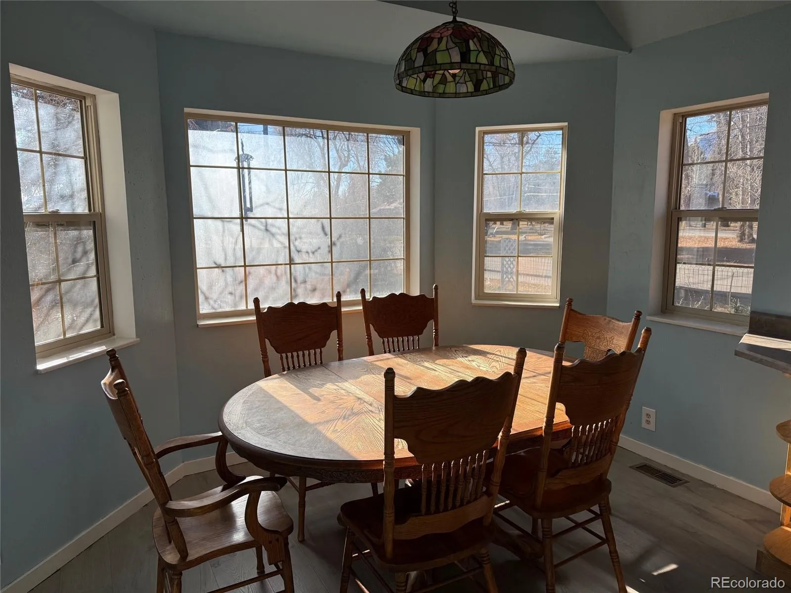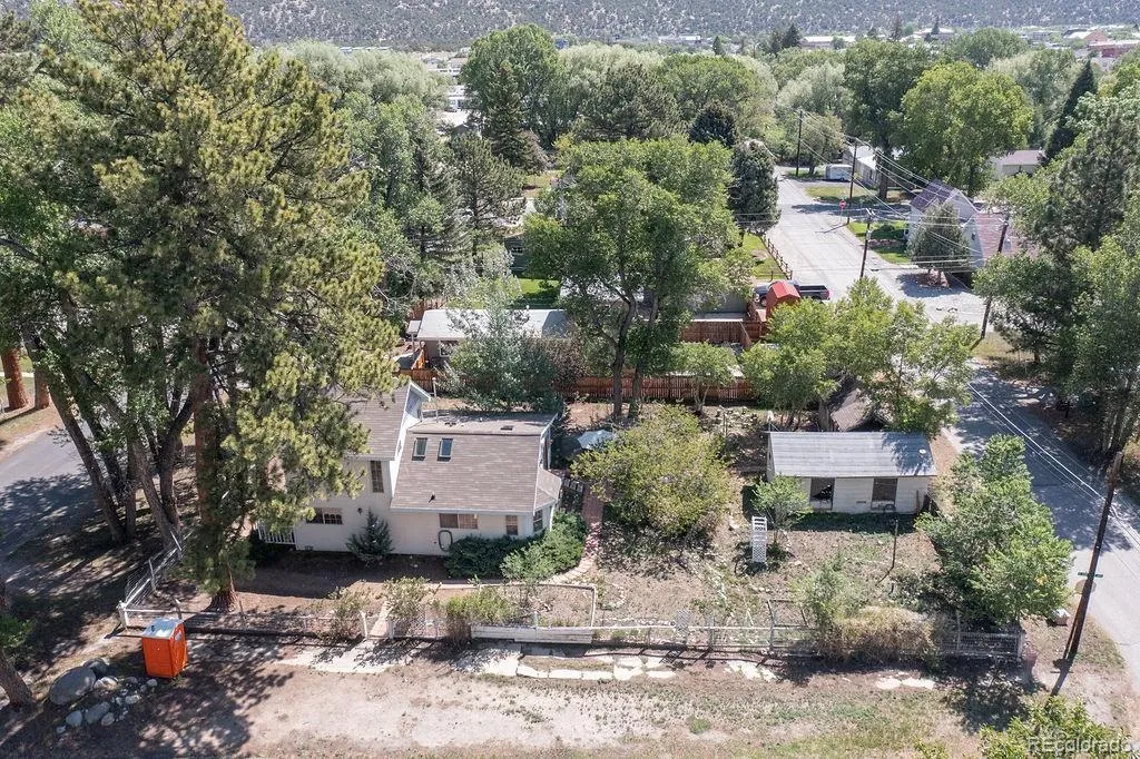 This charming Victorian Style home was lovingly recreated from the original house that was on this property. It is located on an oversized, corner lot with a fenced in yard. Situated in a historic neighborhood, there is easy walking/biking access to the Post Office, shopping, river, park, library and downtown BV. Walk up the steps through the beautiful front door into a space filled with natural light – from custom windows and skylights throughout the home. There is a bay window in the living room, and the gorgeous hardwood floors have recently been refinished. There is new flooring in the sunny kitchen, and the main floor full bathroom was remodeled in 2024; some painting has been done as well. The room off the living room also has hardwood floors, and has been used as a bedroom and a library/office. The large main bedroom has French doors that open out unto the back yard/patio area. The kitchen is spacious and filled with light and has many cupboards and an island; there is a bay alcove for the dining room table and the washer/dryer is tucked into an accessible closet. Upstairs is another bedroom and full bath. With a little TLC, this home will become the perfect place for living and entertaining for family and friends! The property itself is on 3+ city lots for a total of .21 acres. There are 2 additional structures; the “Cabi” and a storage shed. The “Cabi” is a converted garage that has been used for flexible space; with possibilities for an art studio, workshop, home office or craft space. The historic shed is perfect to stow all your outdoor toys and garden supplies. The property is completely fenced with a brick-paver walkways around the backyard and garden areas. Much effort and care was taken by the Seller in planning and planting a lovely backyard getaway. Nestled in a quiet residential area, this is the perfect place for you to create your own dream home with access to all that Buena Vista and Chaffee County have to offer!