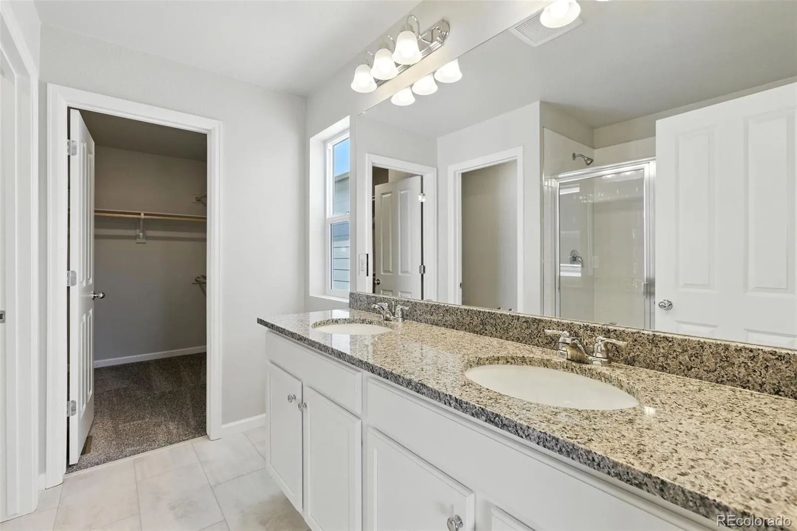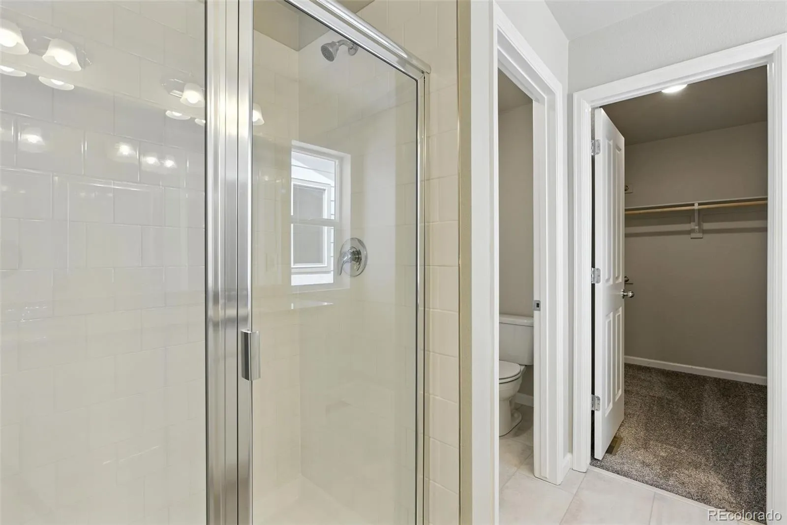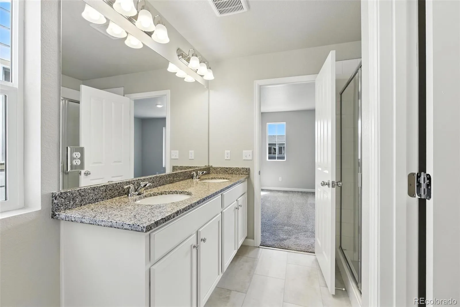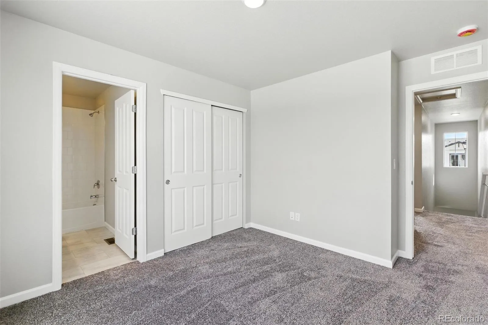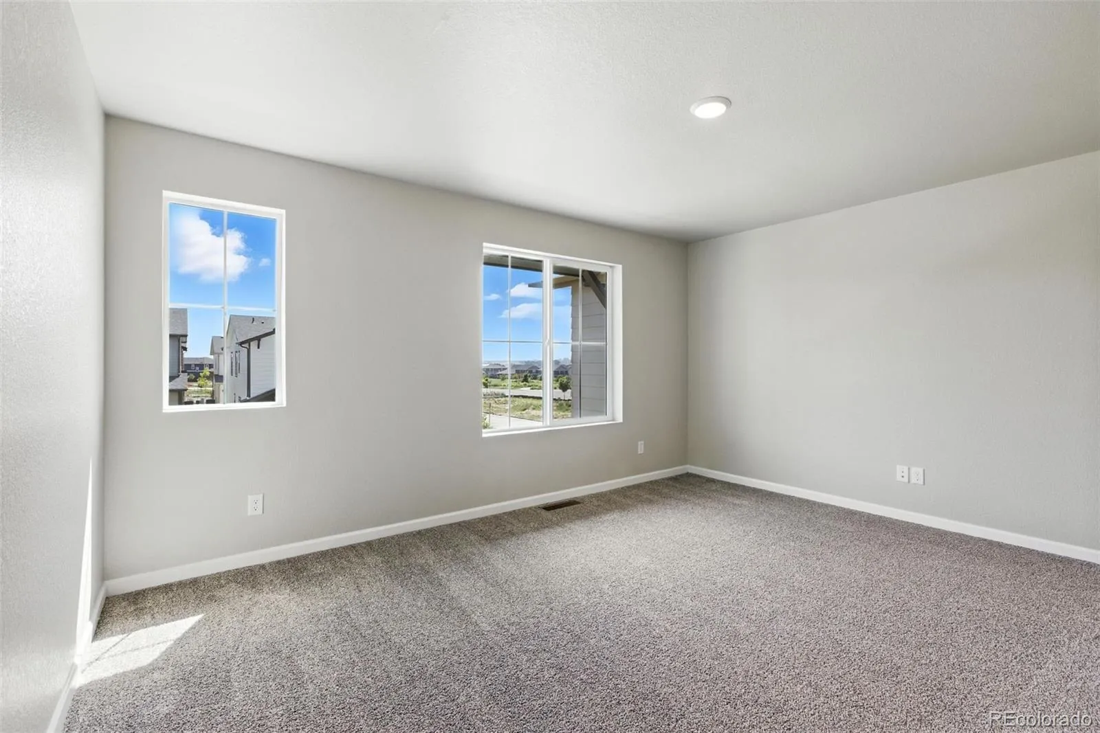 Upstairs, a central laundry room adds everyday convenience. The primary suite at the front includes a private bath with a double vanity, water closet, and large walk-in closet. A second bedroom with its own private full bathroom is located at the back of the home—ideal for guests, roommates, or flex use. Built as a High-Performance Home, it includes energy-saving features, home automation, and sustainable innovations—designed for comfort, health, and efficiency.