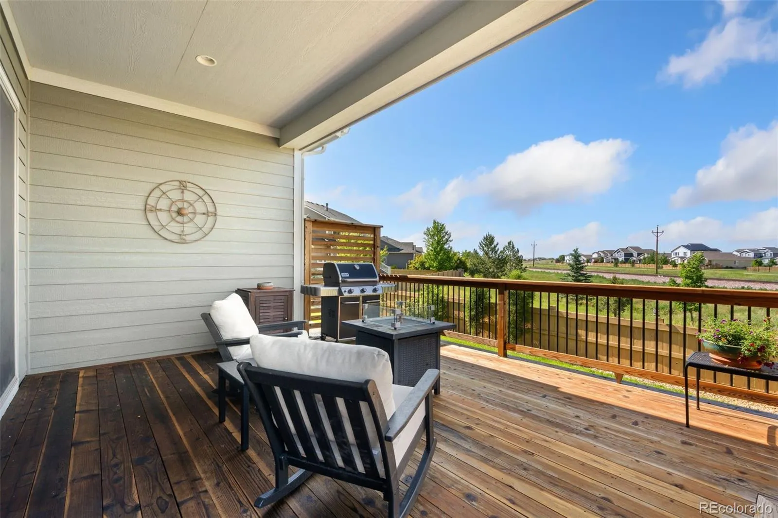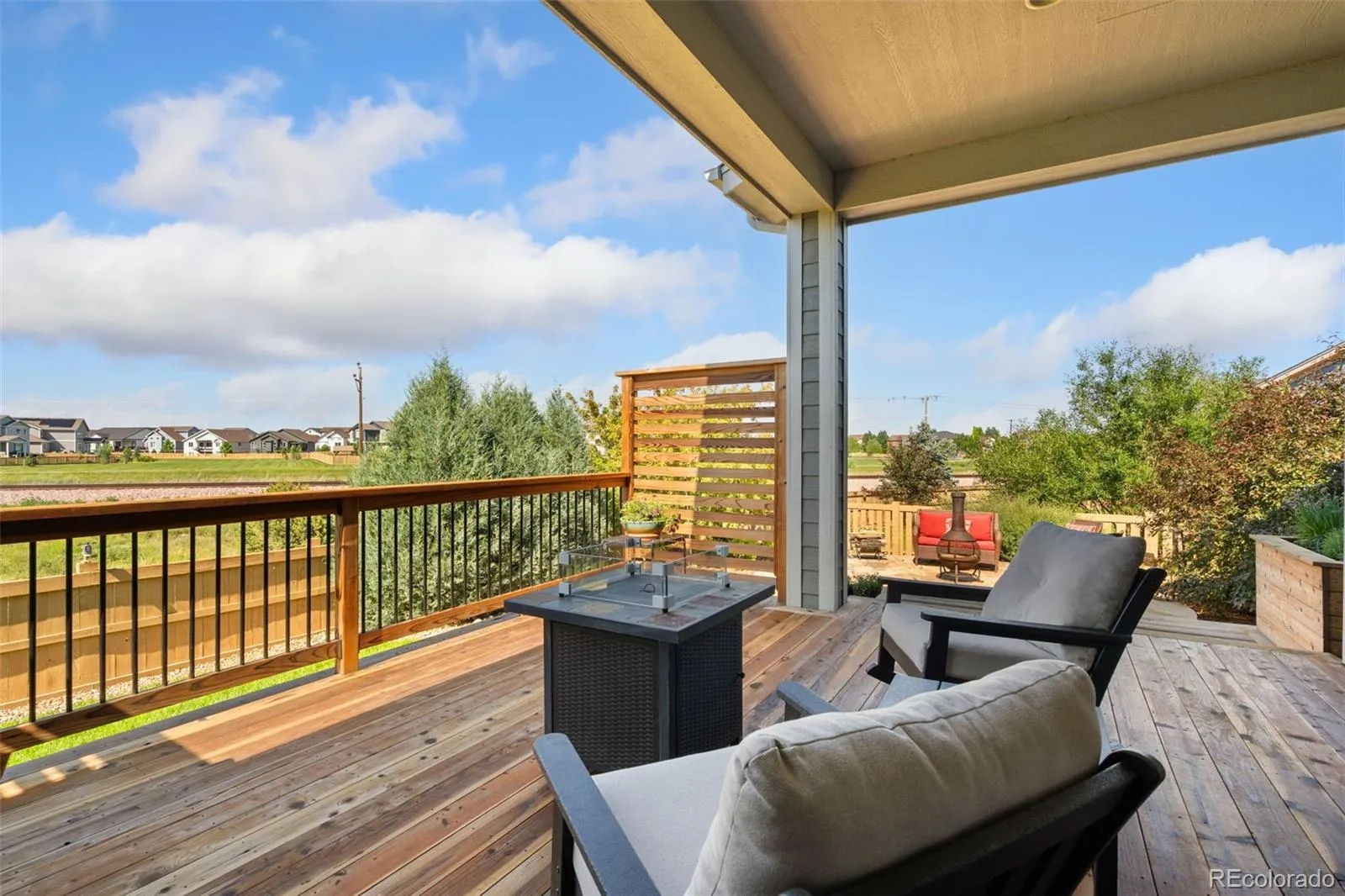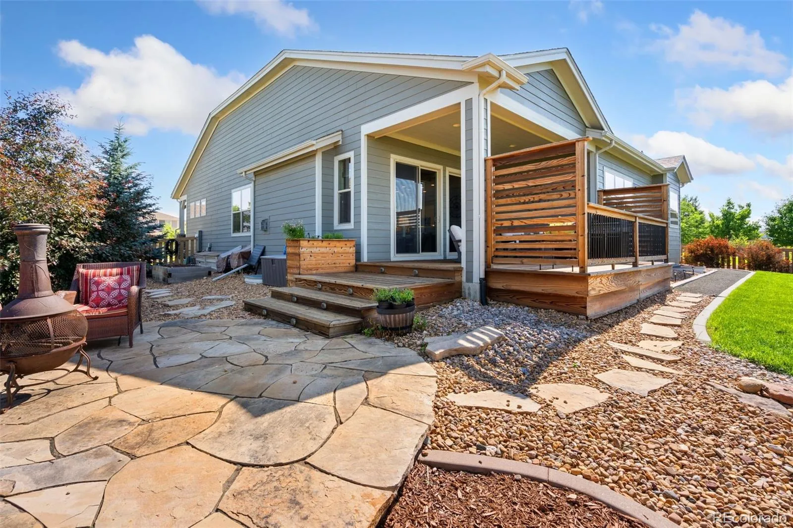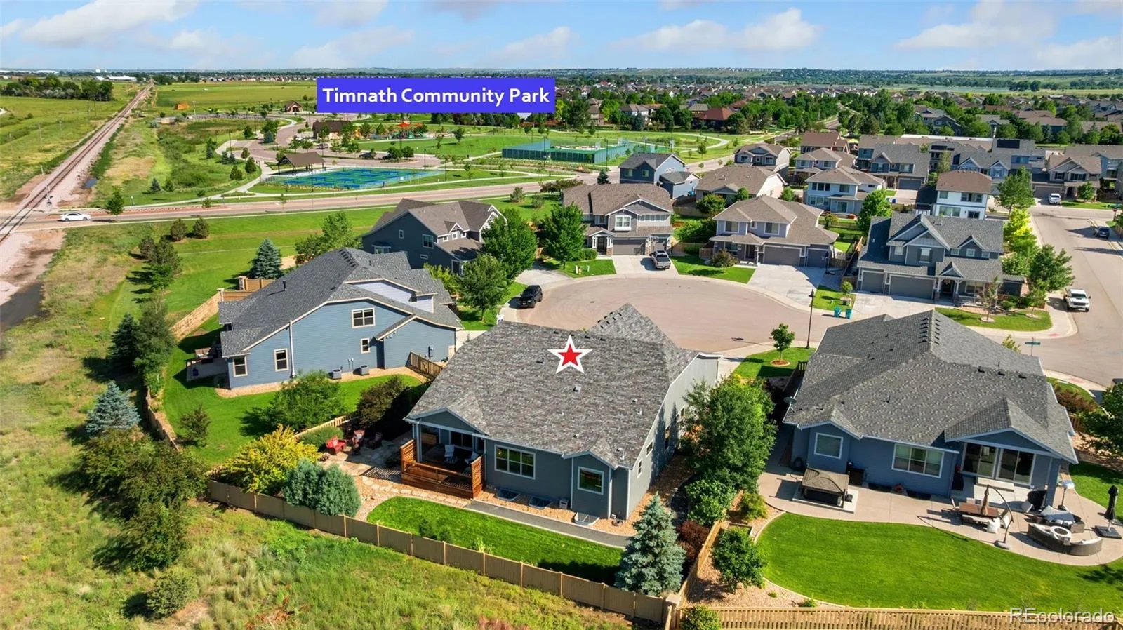 Nestled in a peaceful cul-de-sac and bathed in sunshine with its desirable south-facing orientation, this exquisite residence backs to neighborhood open space, offering both privacy and serene views. As you step inside, you’ll be greeted by an open concept floorplan accentuated by soaring high ceilings and newer luxury vinyl flooring. The heart of the home is the gourmet kitchen, boasting an induction cooktop, convenient pantry, and spacious arched island, ideal for meals and entertainings. Enjoy the convenience of all-main level living that includes a substantial primary suite, complete with a luxurious 5-piece en-suite. Two additional bedrooms are thoughtfully designed with a convenient adjoining bathroom, making it easy for family and guests to share. Venture downstairs to discover even more versatility with a finished flex area that adapts to your lifestyle needs. This level also features two additional bedrooms, a stylish 3/4 bath, and a dedicated workout room equipped with a 20-amp outlet. Plus, a massive unfinished storage space provides plenty of room for all your belongings. The true showstopper is the manicured, private backyard retreat-perfect for summer gatherings or peaceful evenings. The freshly stained hardwood deck and flagstone patio offer ample space for relaxation and outdoor dining, while the drip irrigation system and planter boxes make gardening a breeze. Conveniently located near Timnath Community Park and neighborhood pools, this home invites you to enjoy the best of summer living. To top it off, enjoy the Town of Timnath’s firework display from your back deck. It’s Colorado living at its finest!