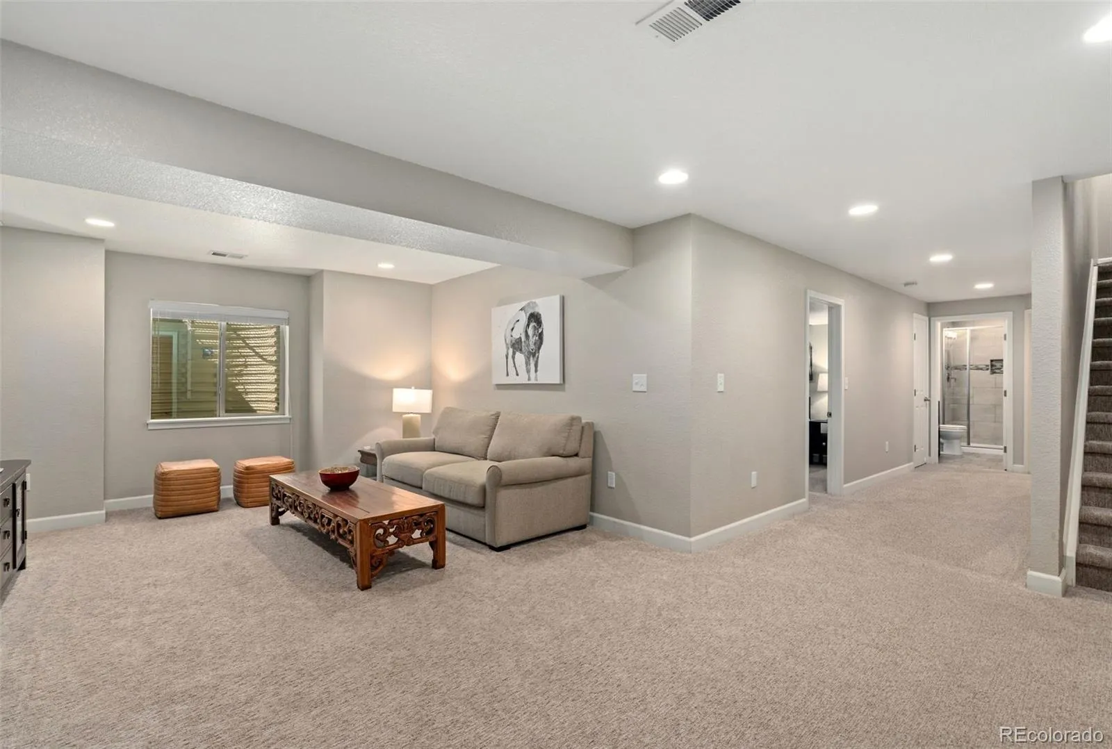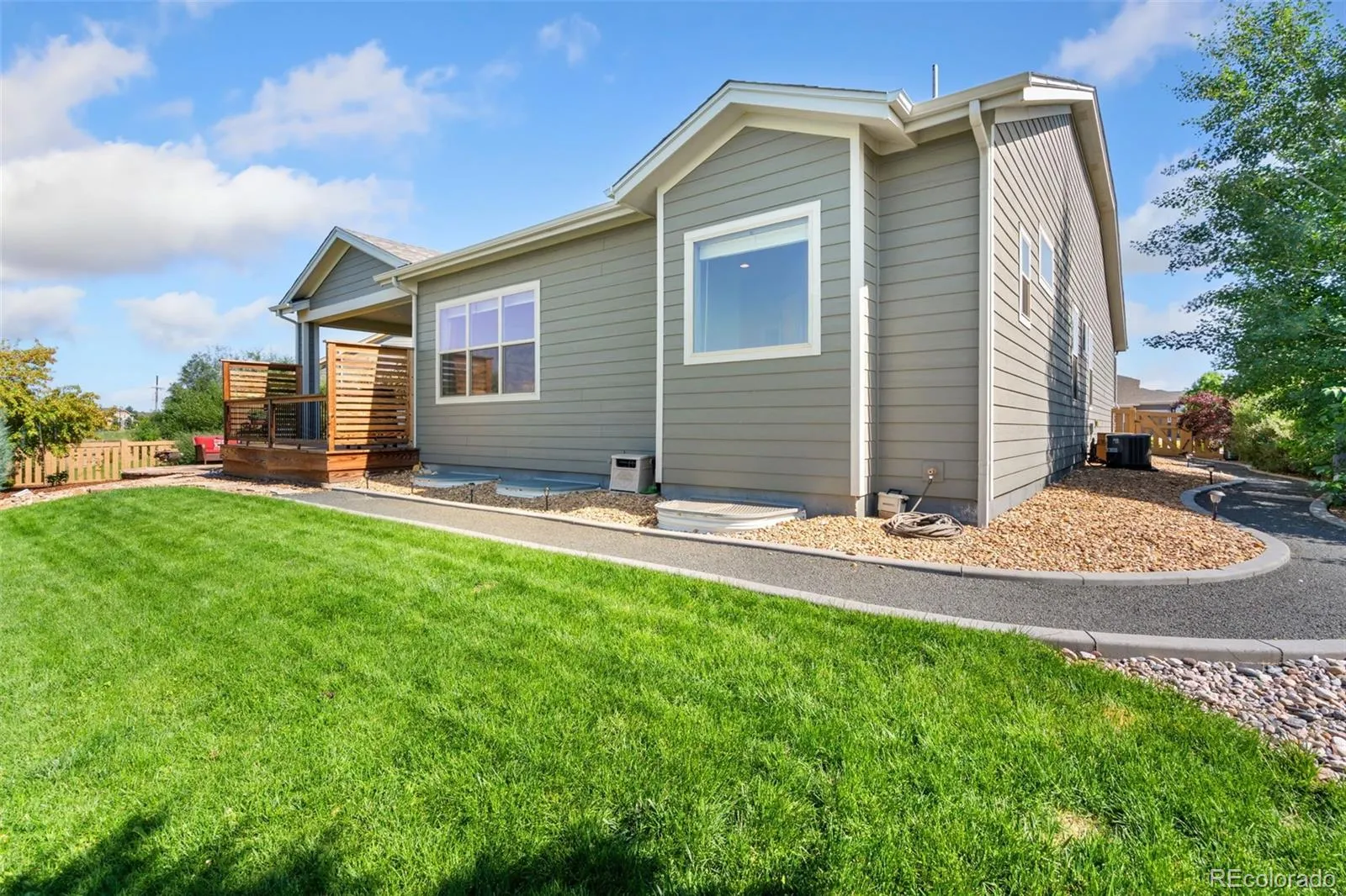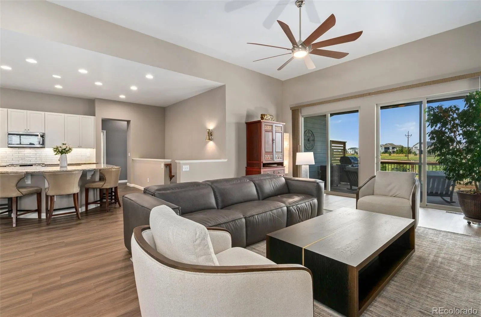Nestled in a peaceful cul-de-sac and bathed in sunshine with its desirable south-facing orientation, this exquisite residence backs to neighborhood open space, offering both privacy and serene views. As you step inside, you’ll be greeted by an open concept floorplan accentuated by soaring high ceilings and newer luxury vinyl flooring. The heart of the home is the gourmet kitchen, boasting an induction cooktop, convenient pantry, and spacious arched island, ideal for meals and entertainings. Enjoy the convenience of all-main level living that includes a substantial primary suite, complete with a luxurious 5-piece en-suite. Two additional bedrooms are thoughtfully designed with a convenient adjoining bathroom, making it easy for family and guests to share. Venture downstairs to discover even more versatility with a finished flex area that adapts to your lifestyle needs. This level also features two additional bedrooms, a stylish 3/4 bath, and a dedicated workout room equipped with a 20-amp outlet. Plus, a massive unfinished storage space provides plenty of room for all your belongings. The true showstopper is the manicured, private backyard retreat-perfect for summer gatherings or peaceful evenings. The freshly stained hardwood deck and flagstone patio offer ample space for relaxation and outdoor dining, while the drip irrigation system and planter boxes make gardening a breeze. Conveniently located near Timnath Community Park and neighborhood pools, this home invites you to enjoy the best of summer living. To top it off, enjoy the Town of Timnath’s firework display from your back deck. It’s Colorado living at its finest!