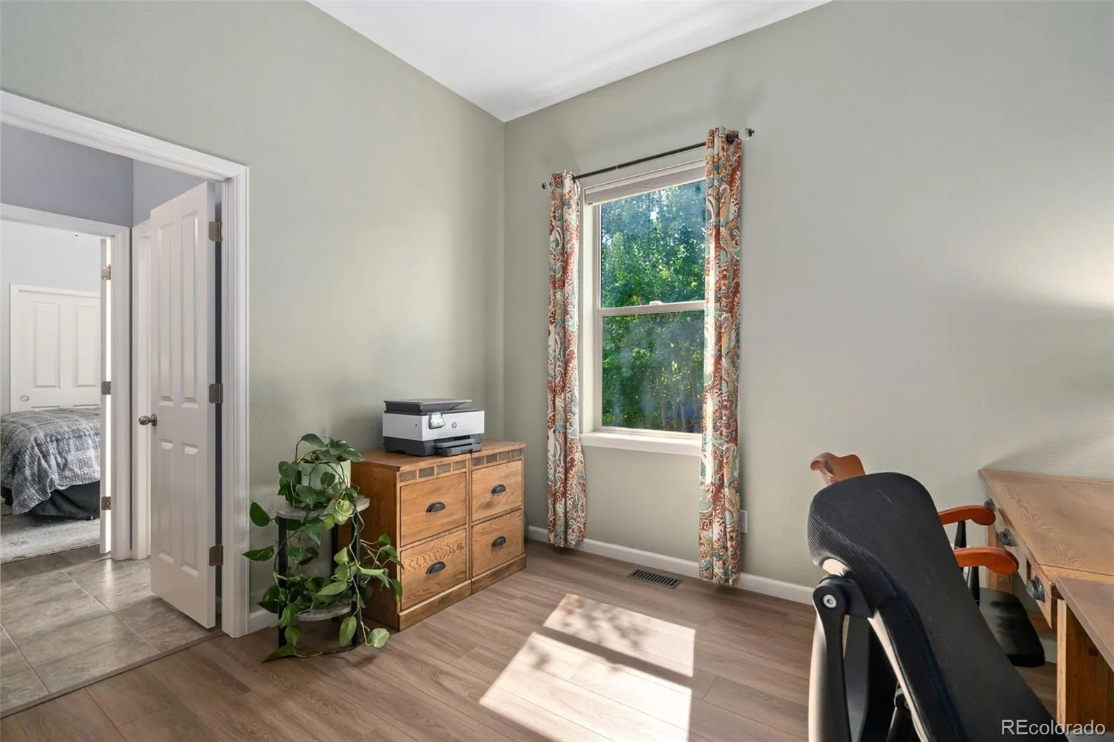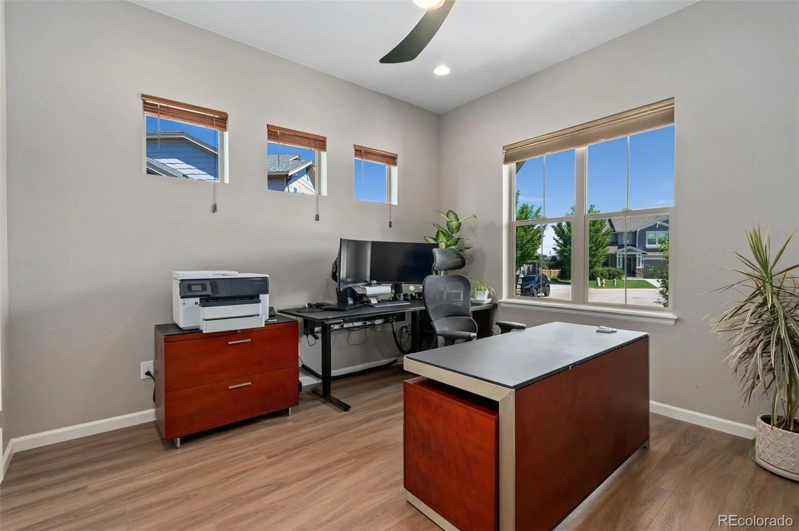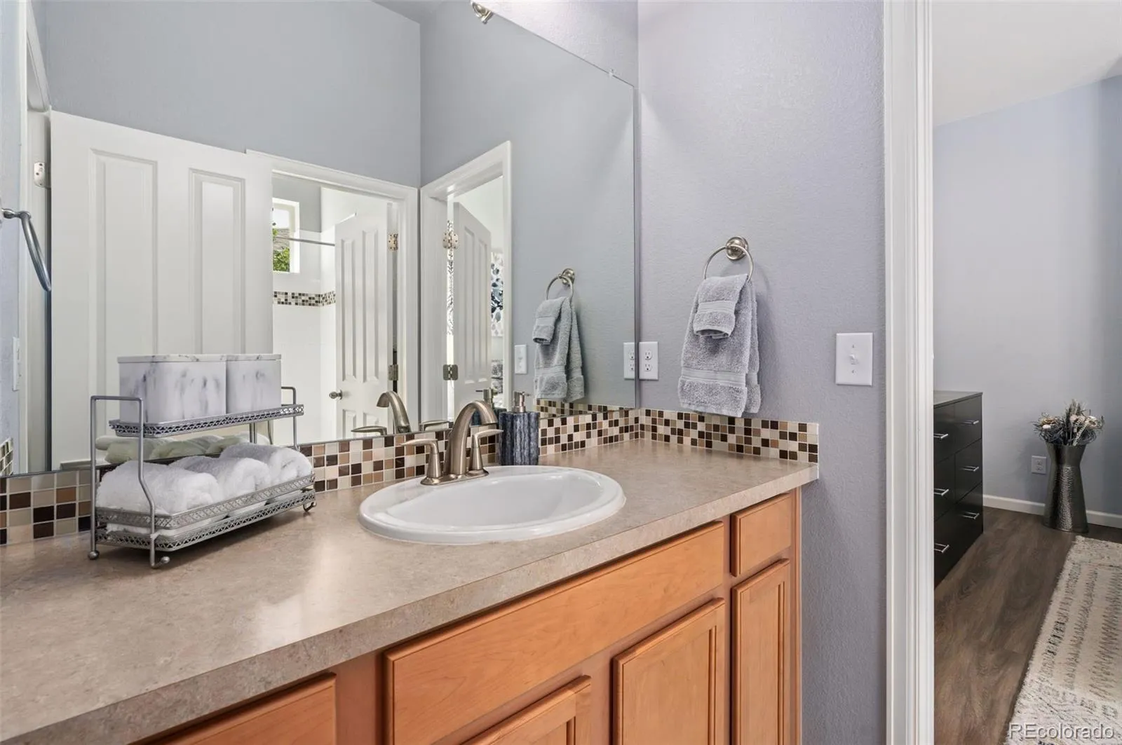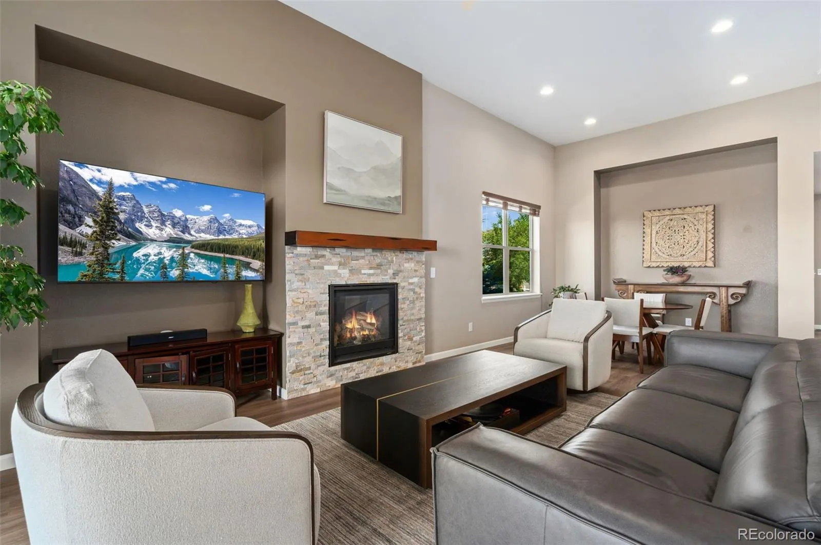 Nestled in a peaceful cul-de-sac and bathed in sunshine with its desirable south-facing orientation, this exquisite residence backs to neighborhood open space, offering both privacy and serene views. As you step inside, you’ll be greeted by an open concept floorplan accentuated by soaring high ceilings and newer luxury vinyl flooring. The heart of the home is the gourmet kitchen, boasting an induction cooktop, convenient pantry, and spacious arched island, ideal for meals and entertainings. Enjoy the convenience of all-main level living that includes a substantial primary suite, complete with a luxurious 5-piece en-suite. Two additional bedrooms are thoughtfully designed with a convenient adjoining bathroom, making it easy for family and guests to share. Venture downstairs to discover even more versatility with a finished flex area that adapts to your lifestyle needs. This level also features two additional bedrooms, a stylish 3/4 bath, and a dedicated workout room equipped with a 20-amp outlet. Plus, a massive unfinished storage space provides plenty of room for all your belongings. The true showstopper is the manicured, private backyard retreat-perfect for summer gatherings or peaceful evenings. The freshly stained hardwood deck and flagstone patio offer ample space for relaxation and outdoor dining, while the drip irrigation system and planter boxes make gardening a breeze. Conveniently located near Timnath Community Park and neighborhood pools, this home invites you to enjoy the best of summer living. To top it off, enjoy the Town of Timnath’s firework display from your back deck. It’s Colorado living at its finest!