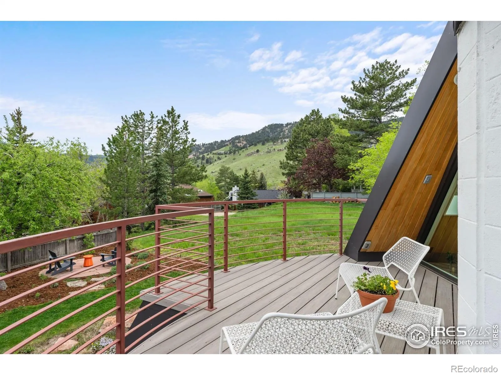 Welcome to 630 Northstar Court, just featured in Dwell Magazine, where architecture becomes sculpture and living becomes an artistic experience. Designed by Charles Haertling, Colorado’s most celebrated modernist architect, this is not just a home – it’s a rare, livable work of art. Virtually no other Haertling home has undergone a renovation of this caliber, with such a deep reverence for the original design while also maintaining a remarkably livable, open and functional floor plan that is also artful yet practical, supporting comfort, flow, and purpose. Originally built in 1976, this sculptural residence, shaped like twin cones, resembling a cassette tape in plan and a double teepee in elevation, is one of Haertling’s most iconic creations. Each tower is anchored by a sculptural, wood-burning fireplace, defining elements that ground the soaring geometry with drama and purpose. Set against the backdrop of the foothills, the home offers remarkable Flatiron views, sitting like a sculpture in the landscape and blending geometry, nature, and light. Framed by walls of glass and grounded in organic materials, the home flows into a serene meditation room, a tranquil water feature, and a secluded private hot tub. Outdoor living is elevated with over 1,600 sq ft of decks and patios. Perhaps one of Boulder’s best-kept secret enclaves with its coveted location directly across from the private community pool, pickleball/tennis and volleyball courts, and a mere 300-foot walk to access trails with the most jaw-dropping panoramic views of the Flatirons and Foothills, and only 1 mile to Lucky’s Supermarket, beloved restaurants, and cafes, easily accessible from scenic bike paths. With downtown Pearl St Mall only 2.5 miles, you will enjoy an unmatched blend of peace, artistry, and convenience. Sustainable upgrades include a 4.5kW solar PV system, EV charger, in-floor radiant heat & 2 mini-splits for cooling & additional heating.