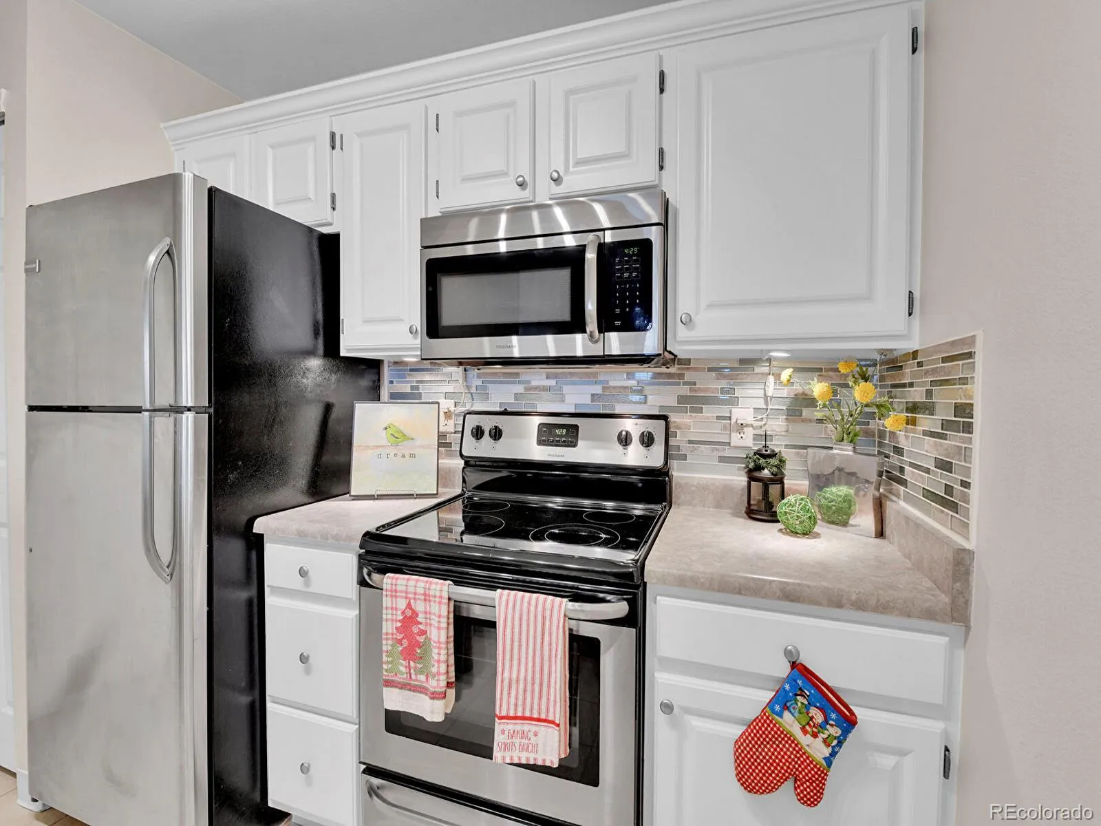 This charming condo offers cozy living in a sought-after location. Situated close to an easy access in and out! Sundrenched with tons of natural light. Brand new quality carpet, freshly painted! The kitchen has stainless steel appliances and bright white cabinetry, providing a fresh and clean look. Step outside onto your private, covered patio, where you can relax and enjoy peaceful views of the surrounding greenbelt and fabulous sunsets! The spacious bedroom comes with a generous walk-in closet! Additional highlights include a full bath with a tub and shower, updated fixtures too! There is a convenient laundry room with full size washer and dryer included in your unit. For extra storage, there’s a nearby storage unit just steps from the front door. Take advantage of the HOA amenities, including a clubhouse, pool, and exercise facilities. All of this is just minutes away from grocery stores, restaurants, and scenic trails. Owner has loved this home and maintained it very well! Neighbors are friendly and community mined! Make this lovely home yours! Excellent LOCATION!