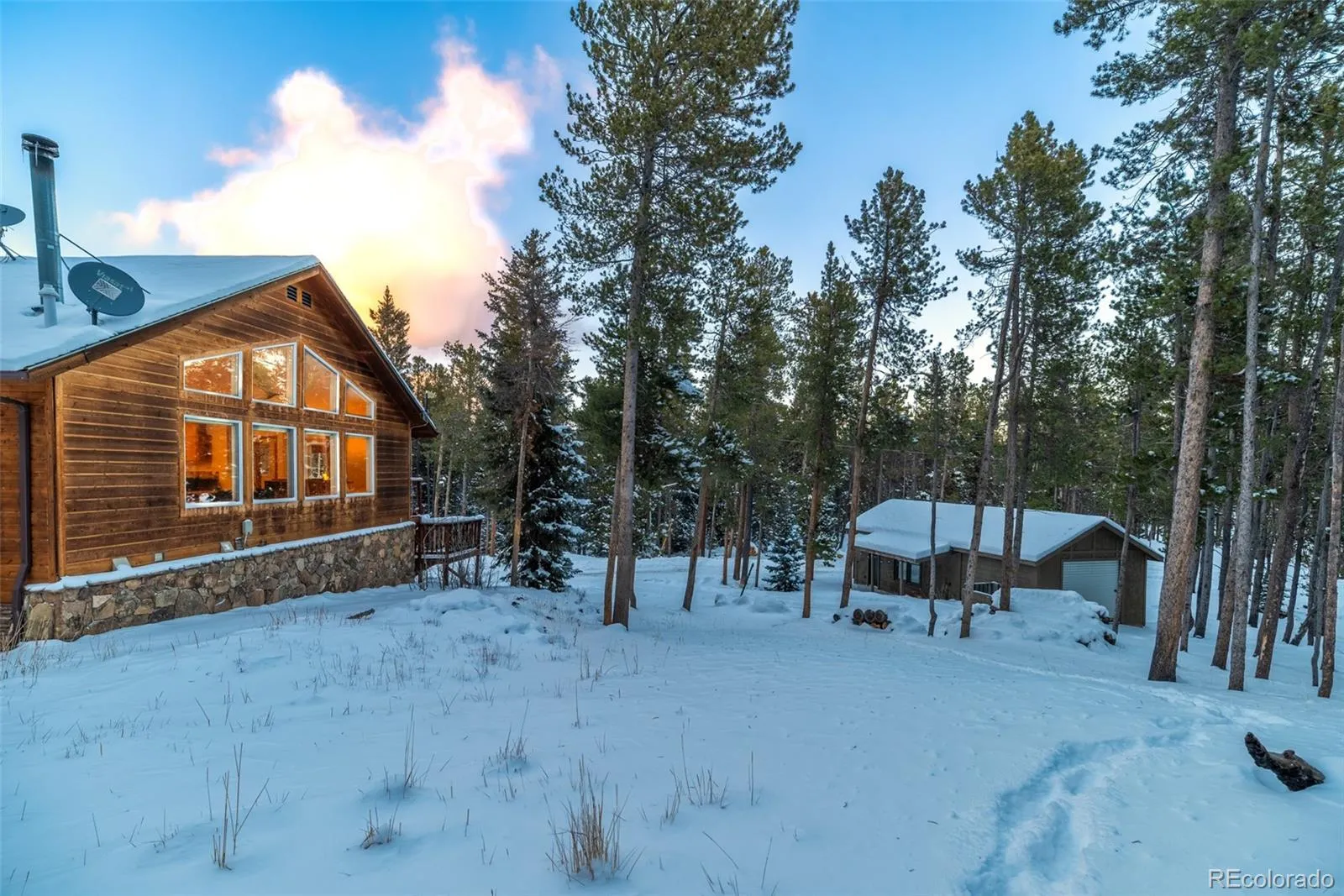 Spacious, immaculately maintained home is one of the most desirable locations in Park County. Nestled amongst the Pines on over two acres of gently rolling land, this cabin would be ideal as a vacation getaway, full time home, or short term rental prospect. A wall of windows lets the year round Colorado sunshine warm the inviting, open great room. The living area is roomy yet cozy and functional. A wood stove will warm you in the winter. A nook with built in shelving would be a nice office space. The well laid out kitchen has a gas cooktop, wall oven, pantry, bar with extra seating, and so much cabinet space. The dining area looks right out onto the stunning landscape. All of this opens up to a covered front entry and a deck that spans the length of the cabin. What a great place to entertain, watch the sunrise, catch a glimpse of the native wildlife. The roomy primary suite on the main level is complete with a 3/4 bath and leads out to a sun porch with a private hot tub. An additional bedroom and full bath are also located on the main level. The lower level opens up to a mud room, laundry room and extra living space, a third bedroom and 3/4 bath. A 2 car garage with a bar area offers parking, storage, and potential entertaining space. An additional detached, one car garage provides even more parking and storage. The location of this cabin is so perfect. Just minutes from Fairplay for shopping, schools, and essentials. Only 30 minutes from Breckenridge for world class skiing and year round dining and entertainment. All of the perks of mountain living without the resort price tag.