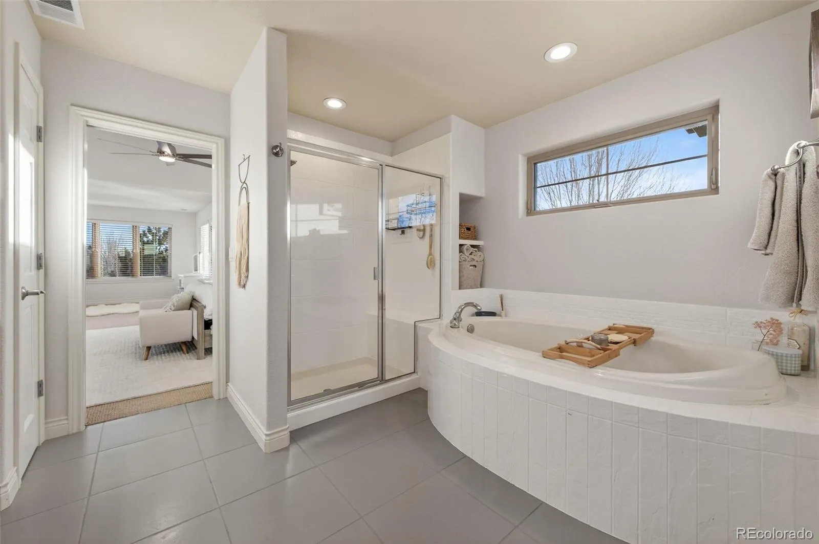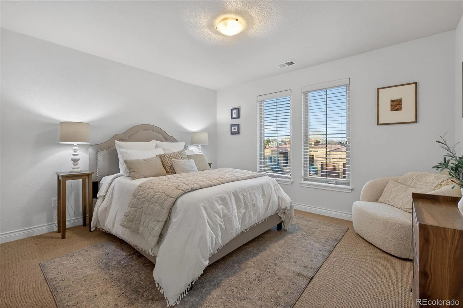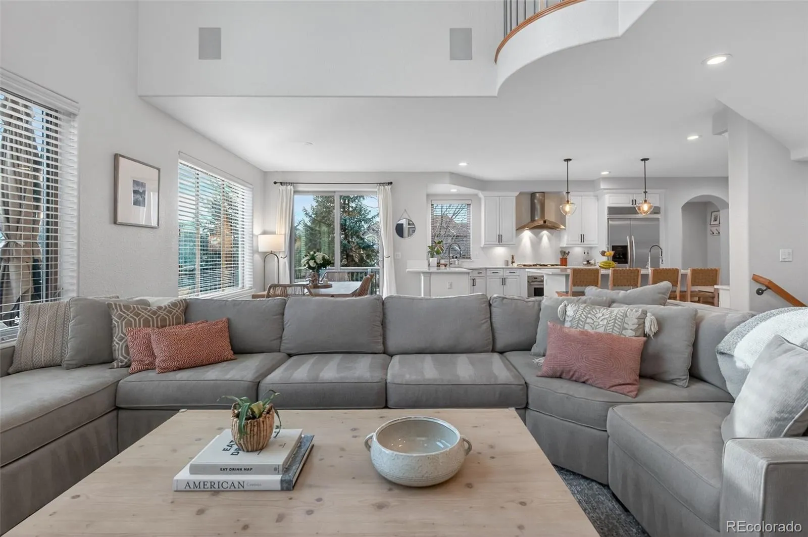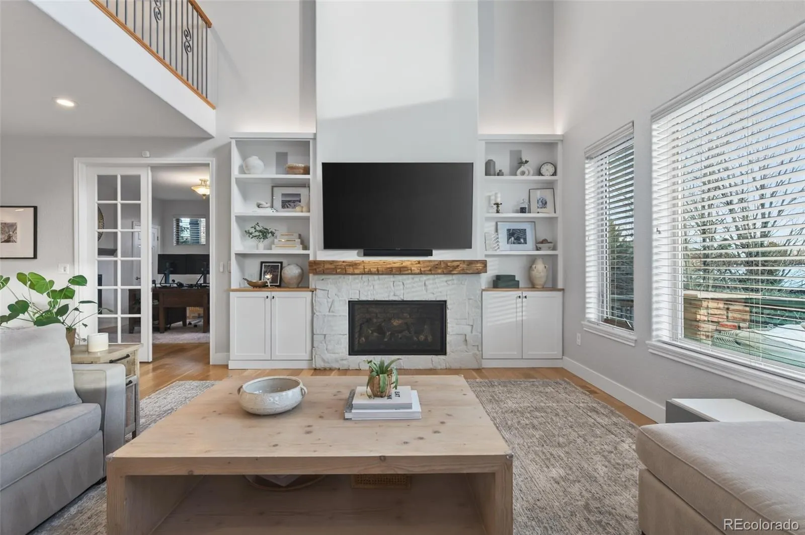 Welcome to “The Fairway House”, a refined 6-bedroom, 5-bath oasis on a lovely corner lot, ideally located in Broomfield’s highly desirable Broadlands Island neighborhood. With 5,570 sq ft of light-filled living, the home pairs high-end finishes with thoughtful design for an atmosphere that has everyone who steps inside exhaling and enjoying the space’s specialness. Stepping inside, you will first notice the wide-plank white oak floors, abundant windows, custom lighting, and designer window treatments. The main living room centers on a floor-to-ceiling Venetian plaster fireplace with tailored built-ins. The chef’s kitchen features a high-output gas range, double ovens, luxury built-ins, prep sink, walk-in pantry, and a butler’s pantry with custom wine storage. Two main-level offices—one with a private deck & pass-through fireplace—offer flexible workspaces. The vaulted primary suite captures mountain views & includes a private deck, jetted tub, dual sinks, and a generous walk-in closet; every bedroom has ample closet space & abundant storage throughout. The walkout basement offers 9-foot ceilings, a half kitchen, a large bonus room, and a dedicated gym space. Practical upgrades include whole-home water filtration, wired audio, remote-access security and garage doors, and an oversized three-car garage with built-ins. The list of desirable finishes and characteristics goes on, but you must visit this home to appreciate its indoor/outdoor flow, which is ideal for entertaining. Beautiful inside and out, with tranquil, low-maintenance water features, a new perimeter fence, a wrap-around deck, a covered porch, outdoor lighting, and fully irrigated, professional landscaping. The location rivals the home itself, situated near Boulder Valley schools, parks, trails, a private community pool and clubhouse, Omni Interlocken Golf Club, and Flatiron Crossing. Don’t wait, set your showing today and experience this luxurious yet comfortable and inviting home for yourself!